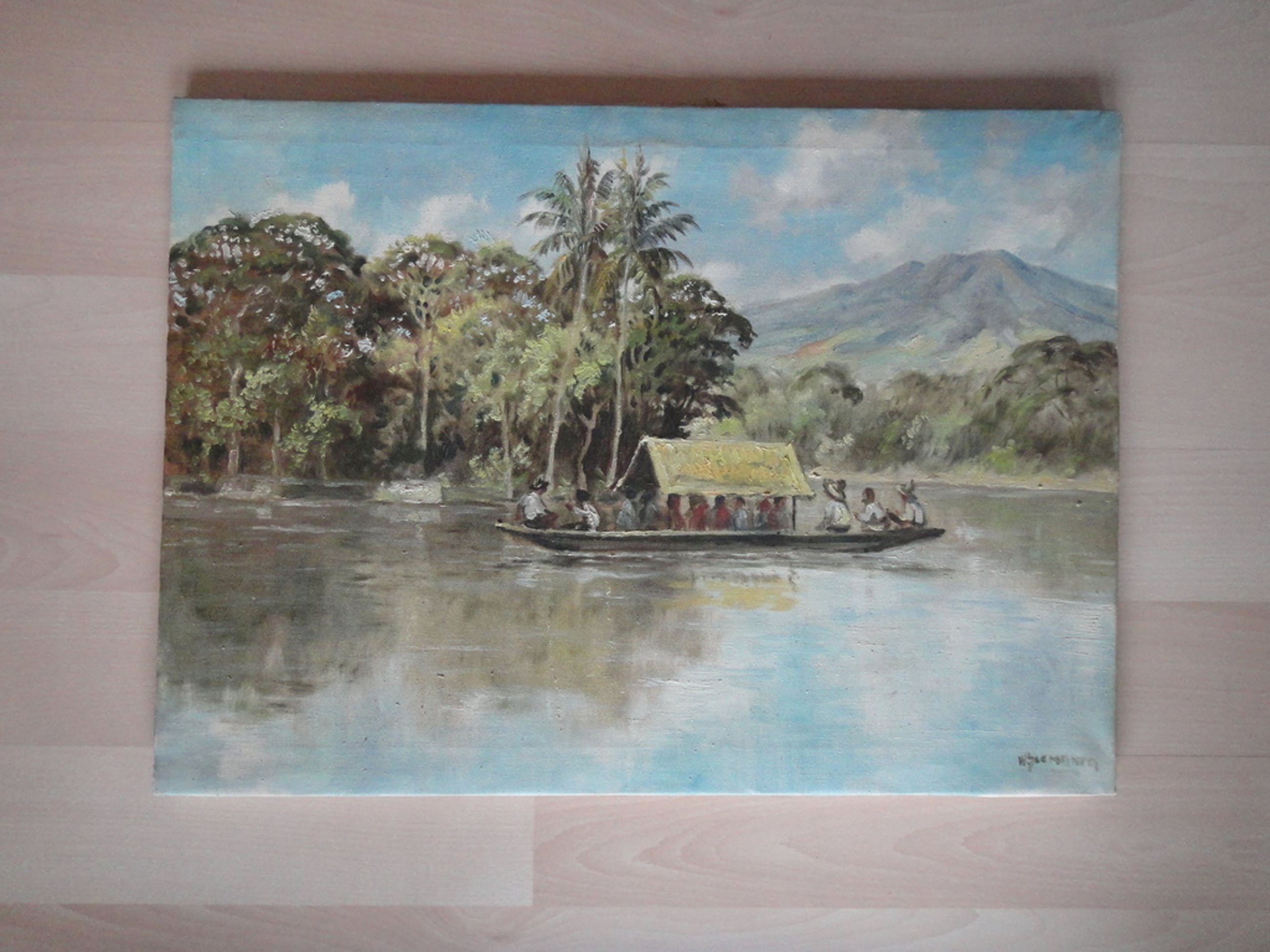 Olieverf-schilderij uit de 50-er jaren met Indonesische voorstelling.