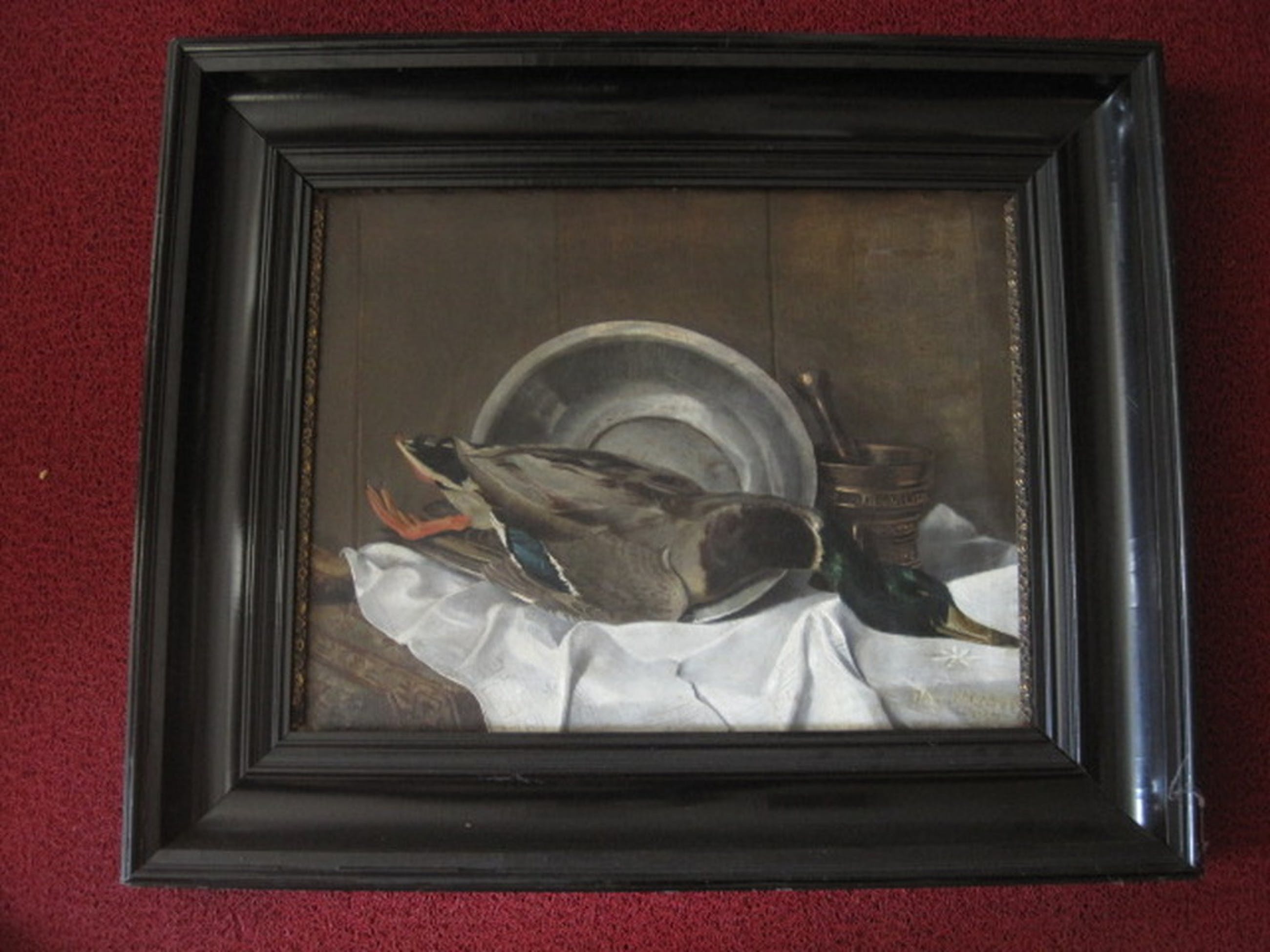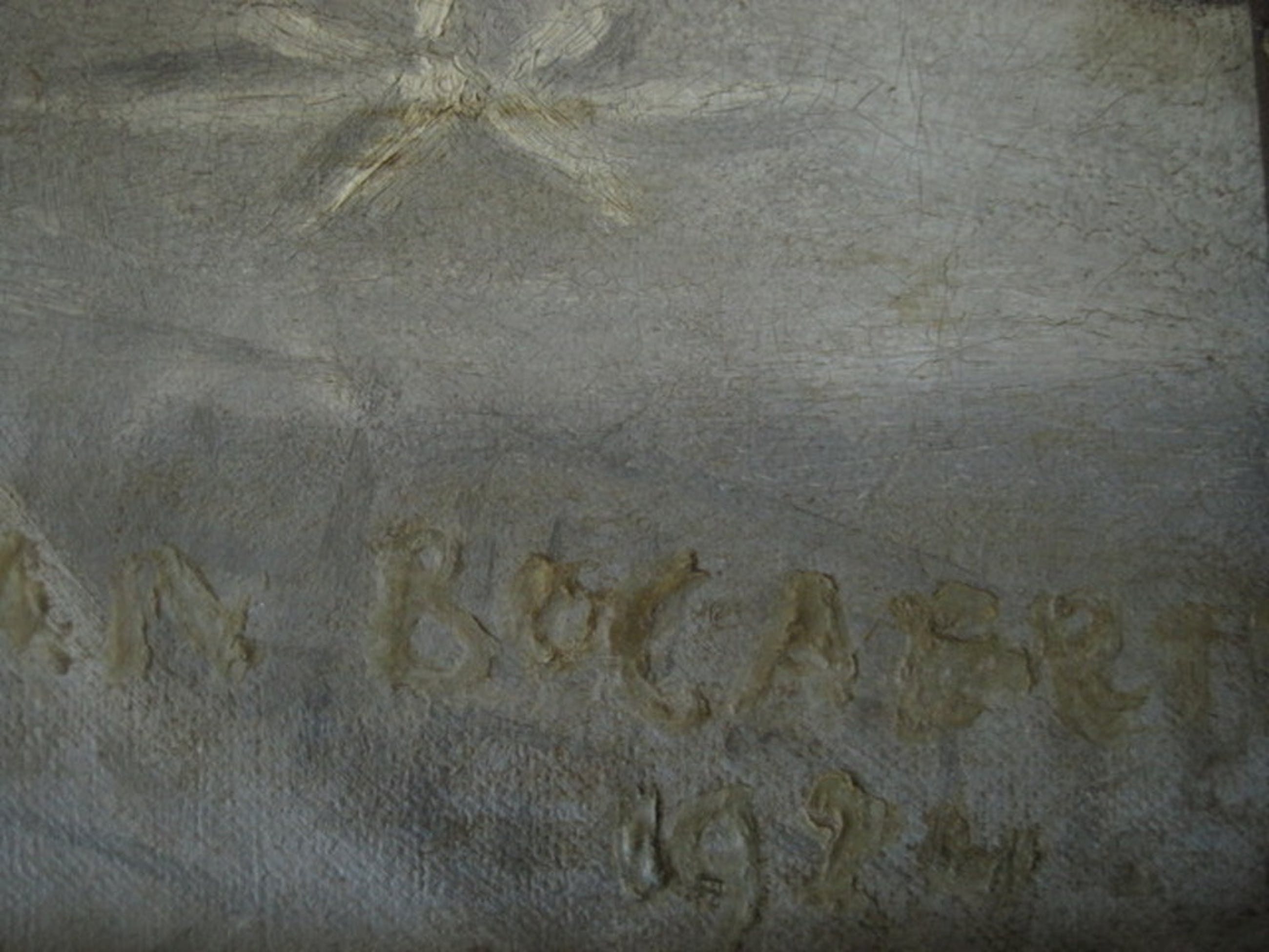 Maten : 61 x 47 cm (doekmaat) en 83 x 69 cm (in beschadigde art deco lijst)