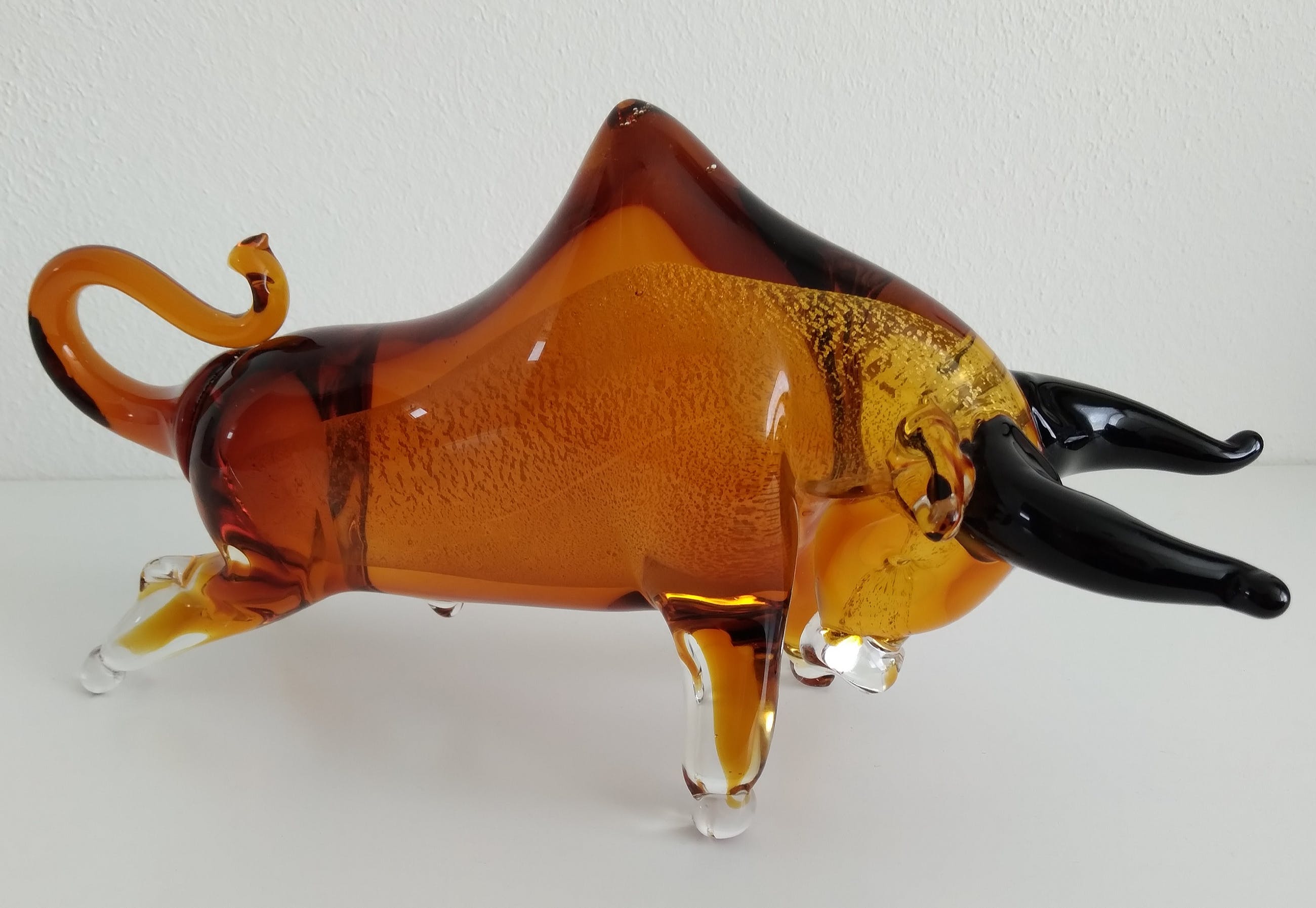 Prachtige, fors uitgevallen glassculptuur van een stier.