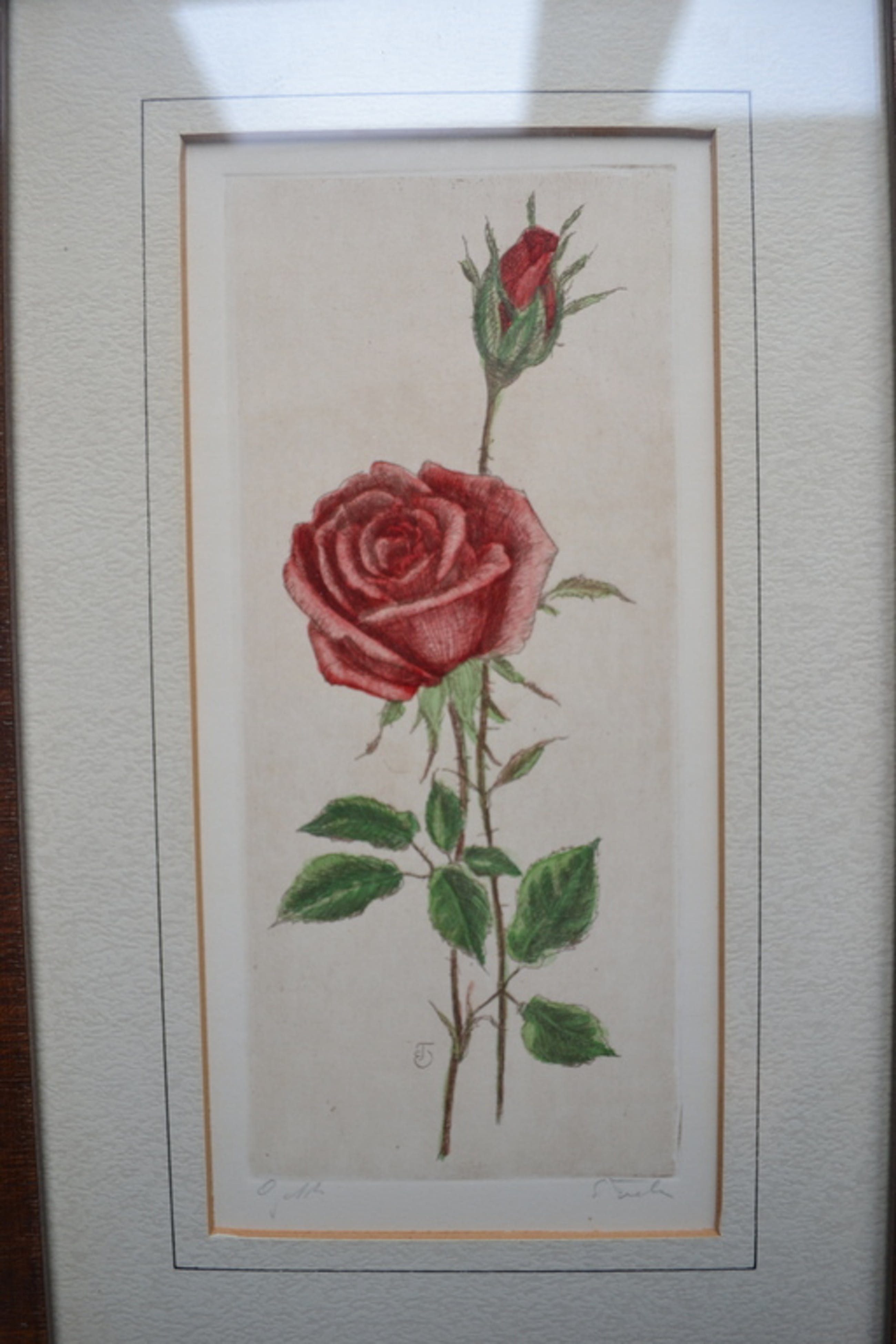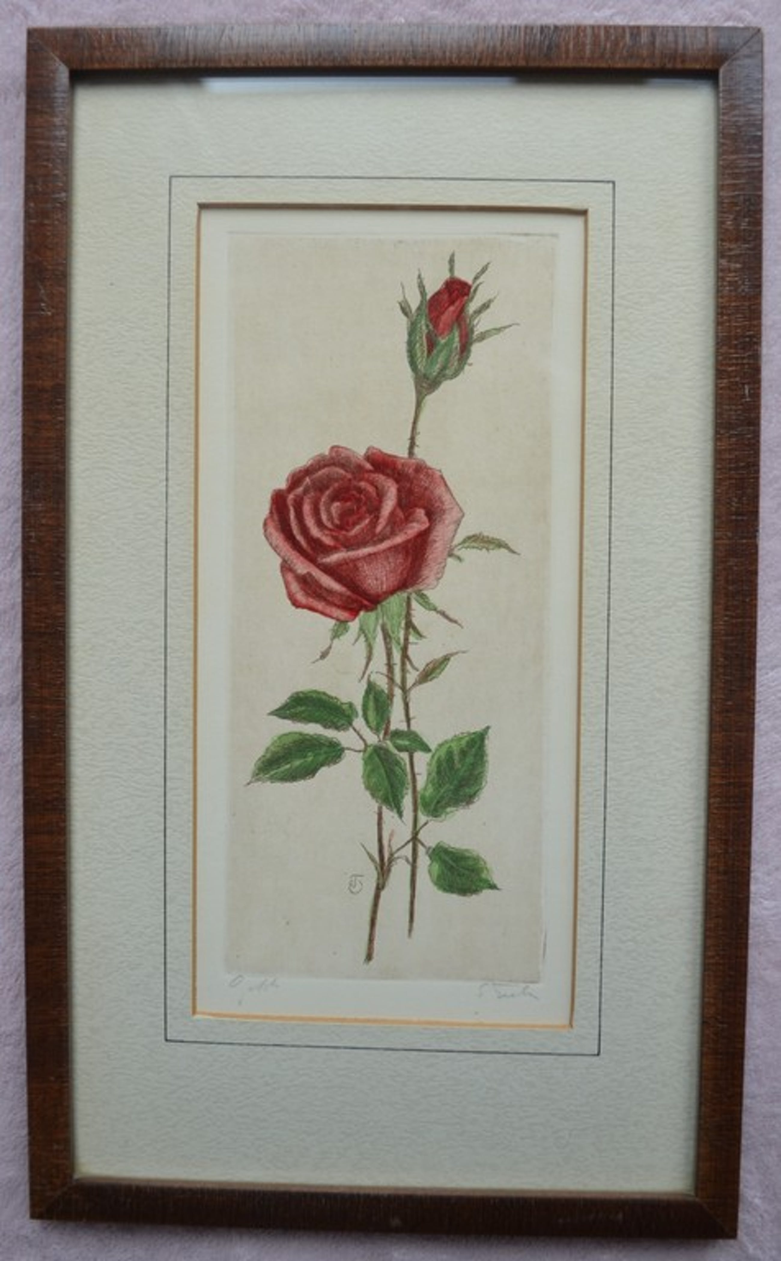 Ingekleurde ets van een roos, gesigneerd. kopen? Bied vanaf 1!