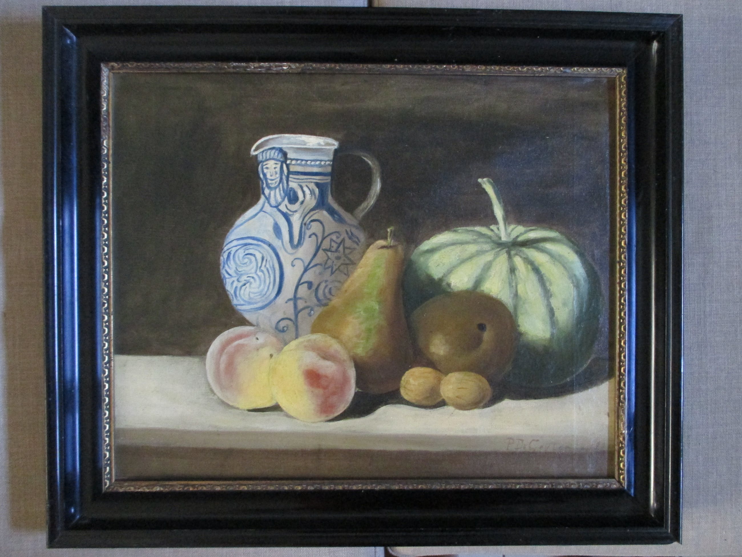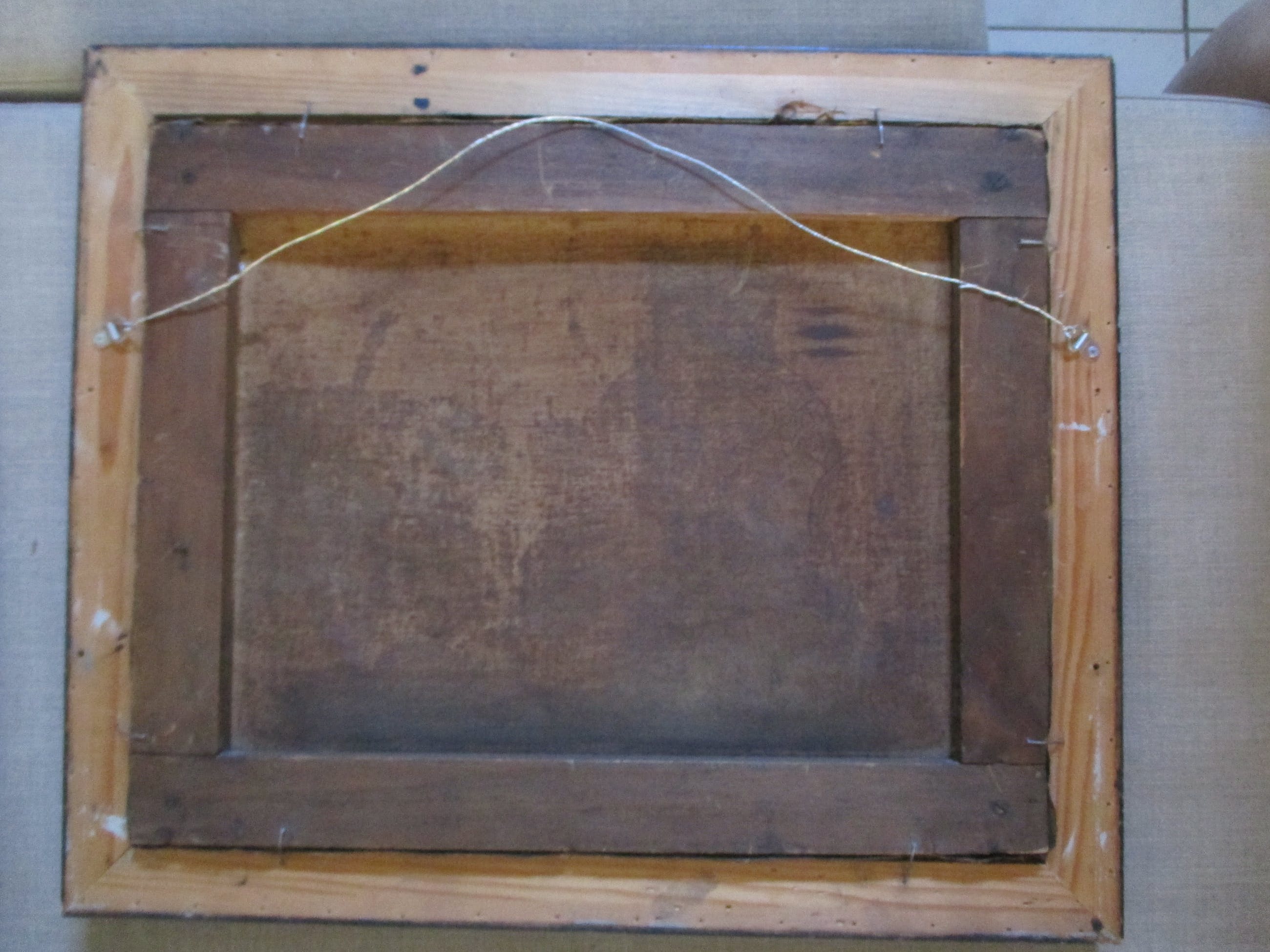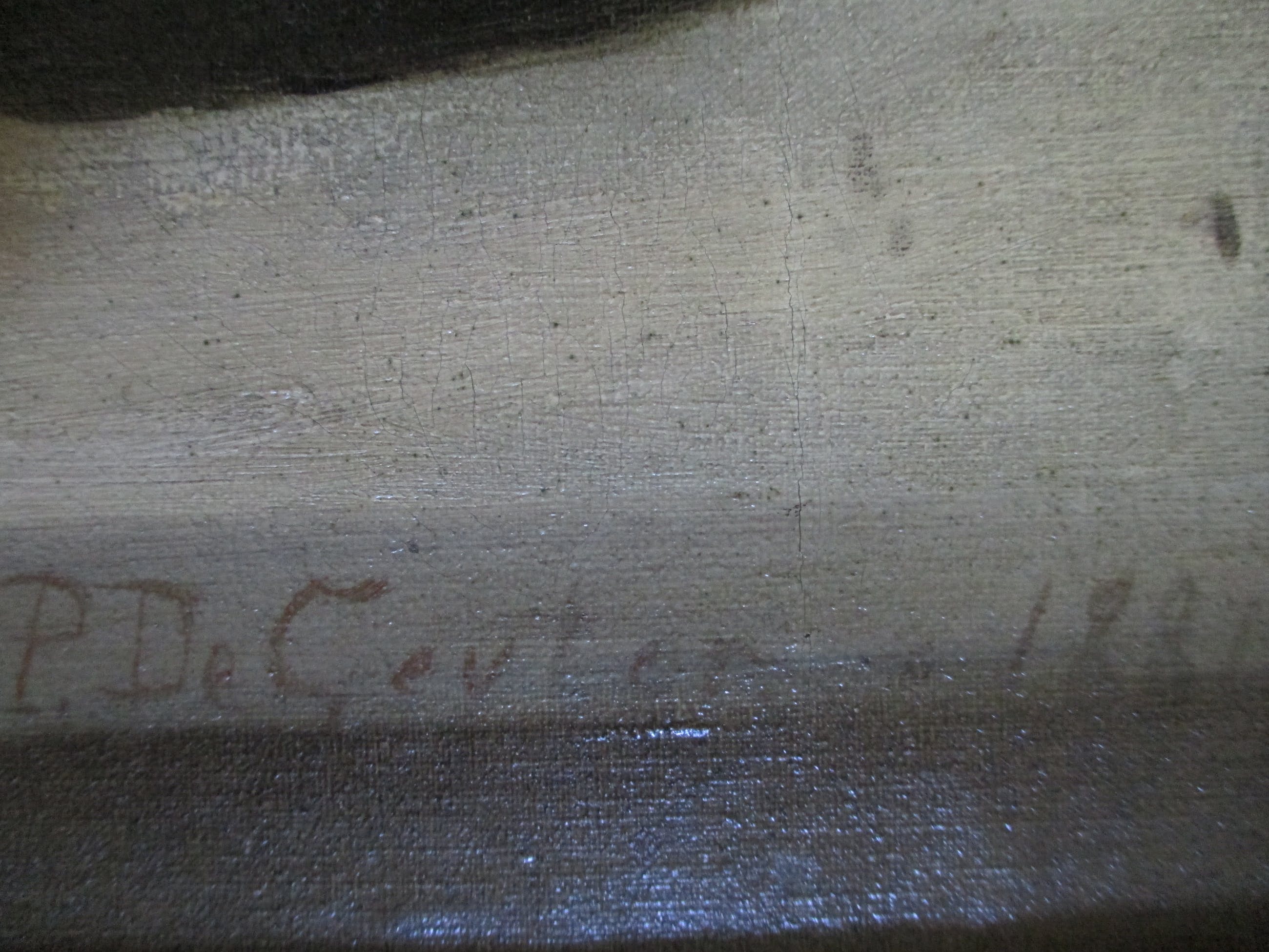 Schilderij, gesigneerd en gedateerd 1887 r.o, ingelijst in een zwartgelakte houten lijst. Verzending 8,50, aangetekend 10,15