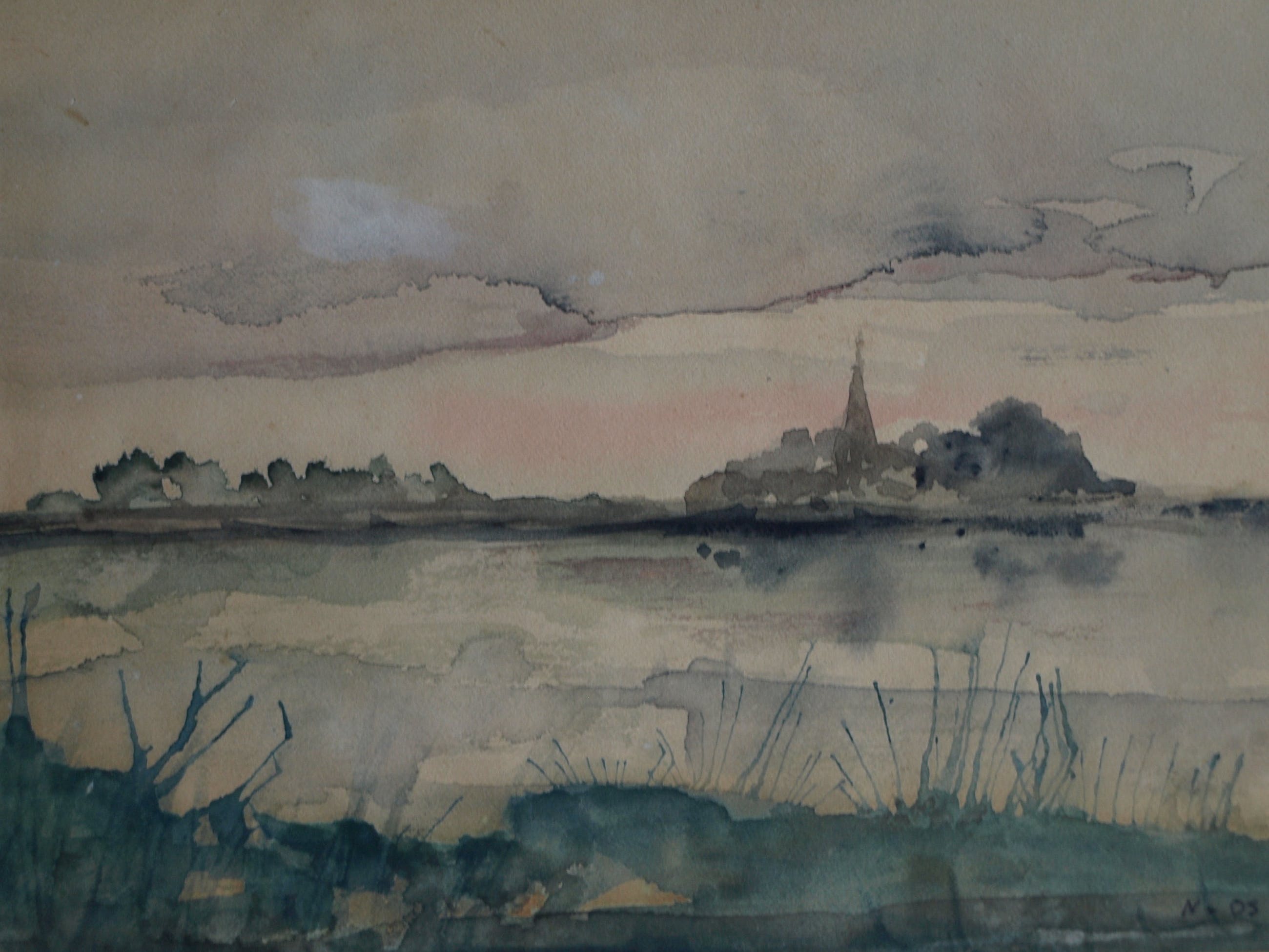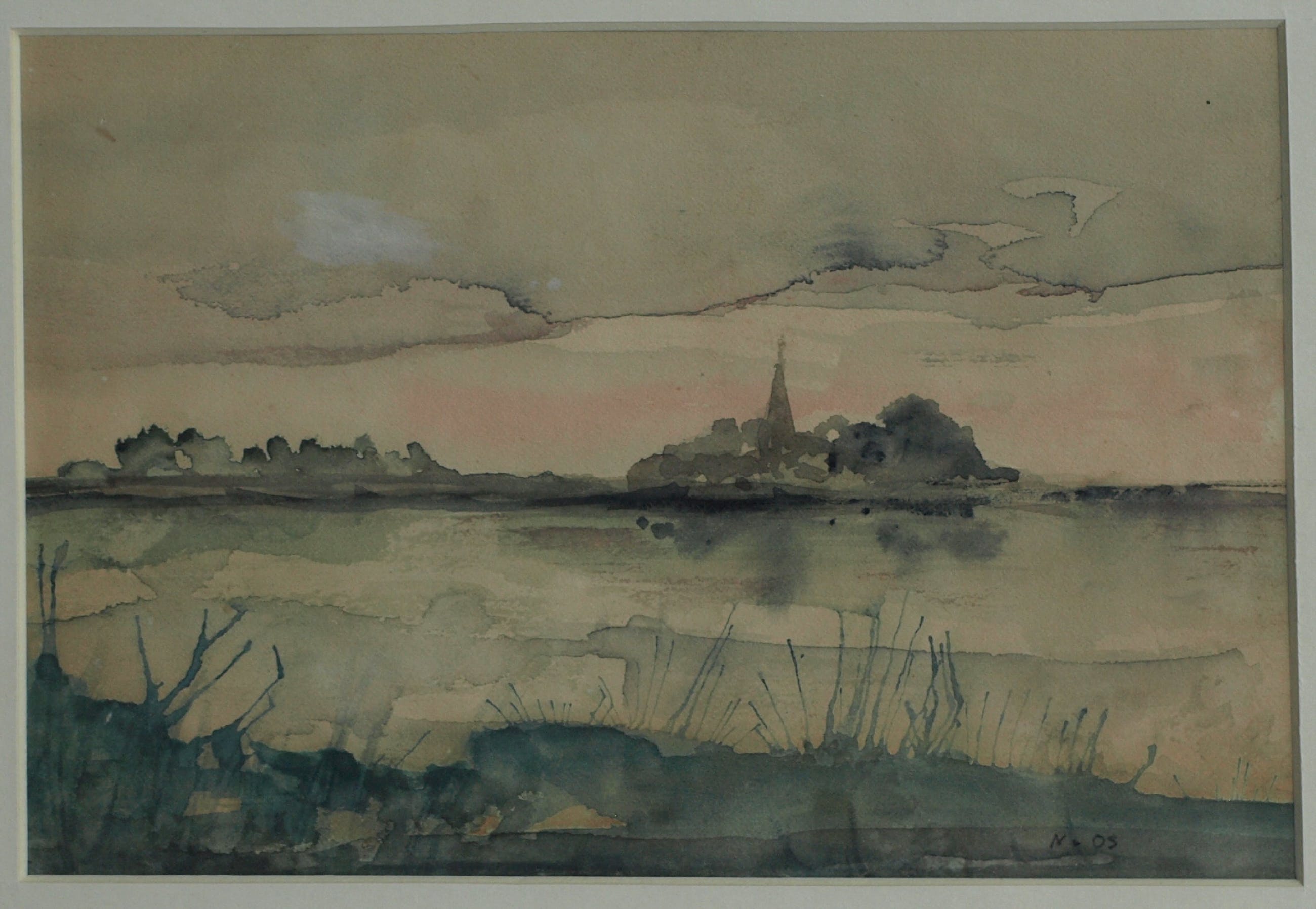 Een kleine ingelijste aquarel van een ons onbekende kunstenaar.