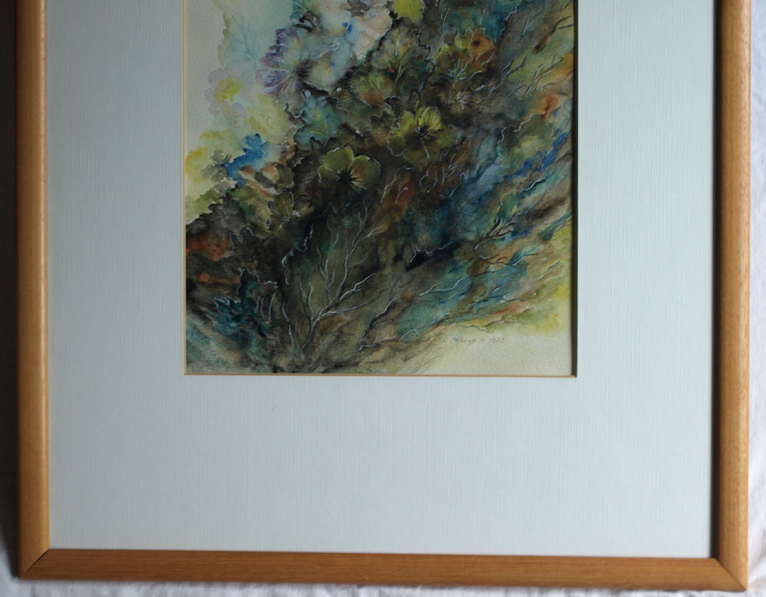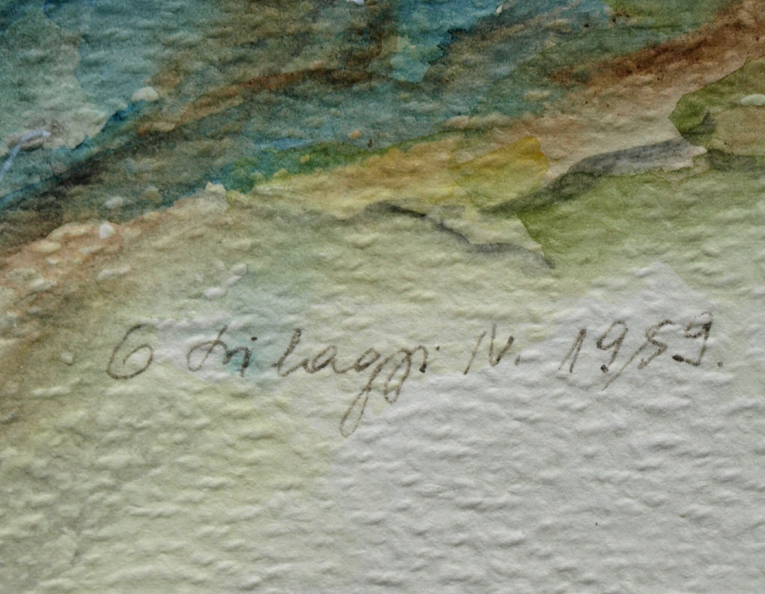 Een grote ingelijste aquarel uit 1959 van een ons onbekende kunstenaar.