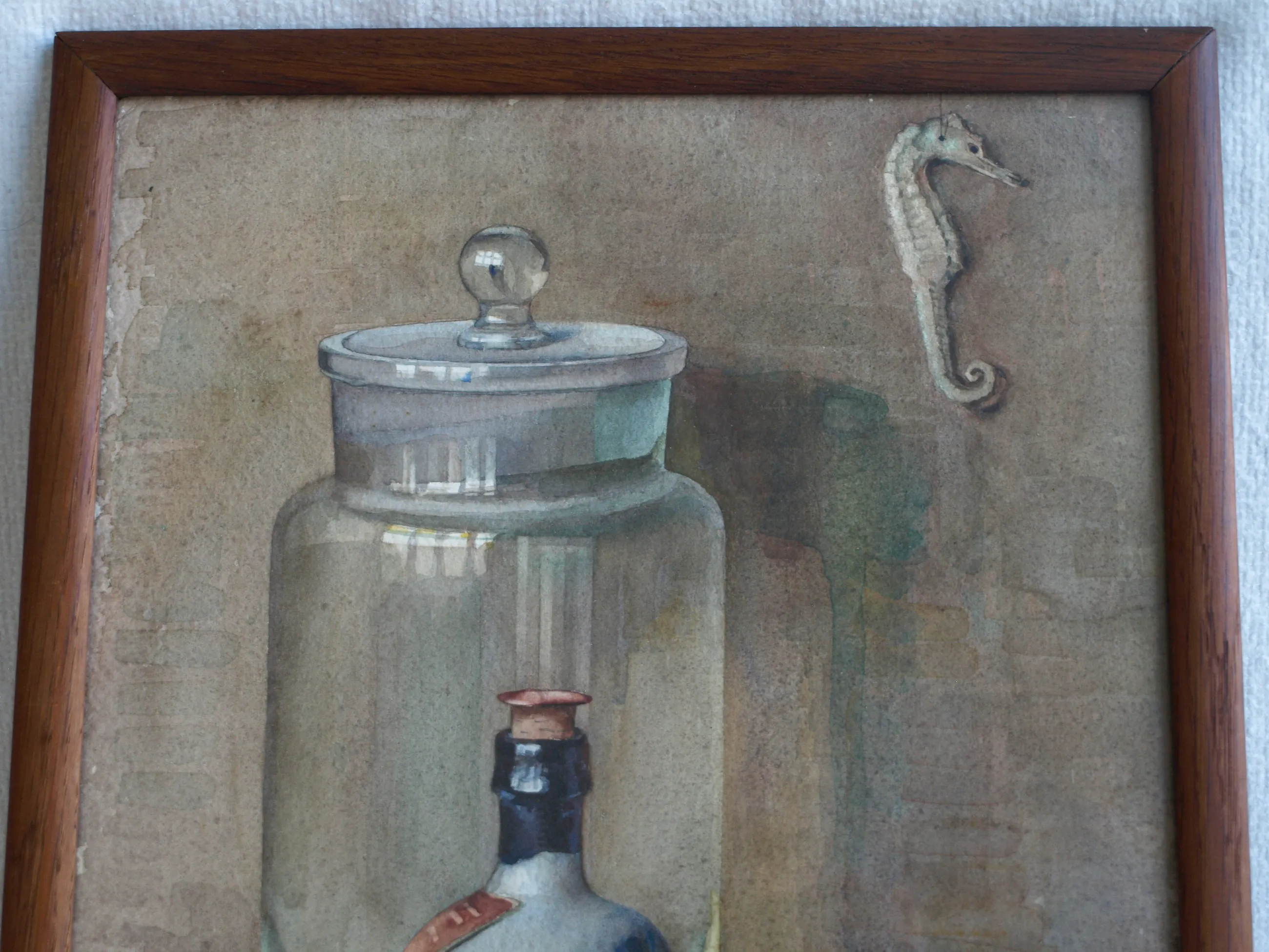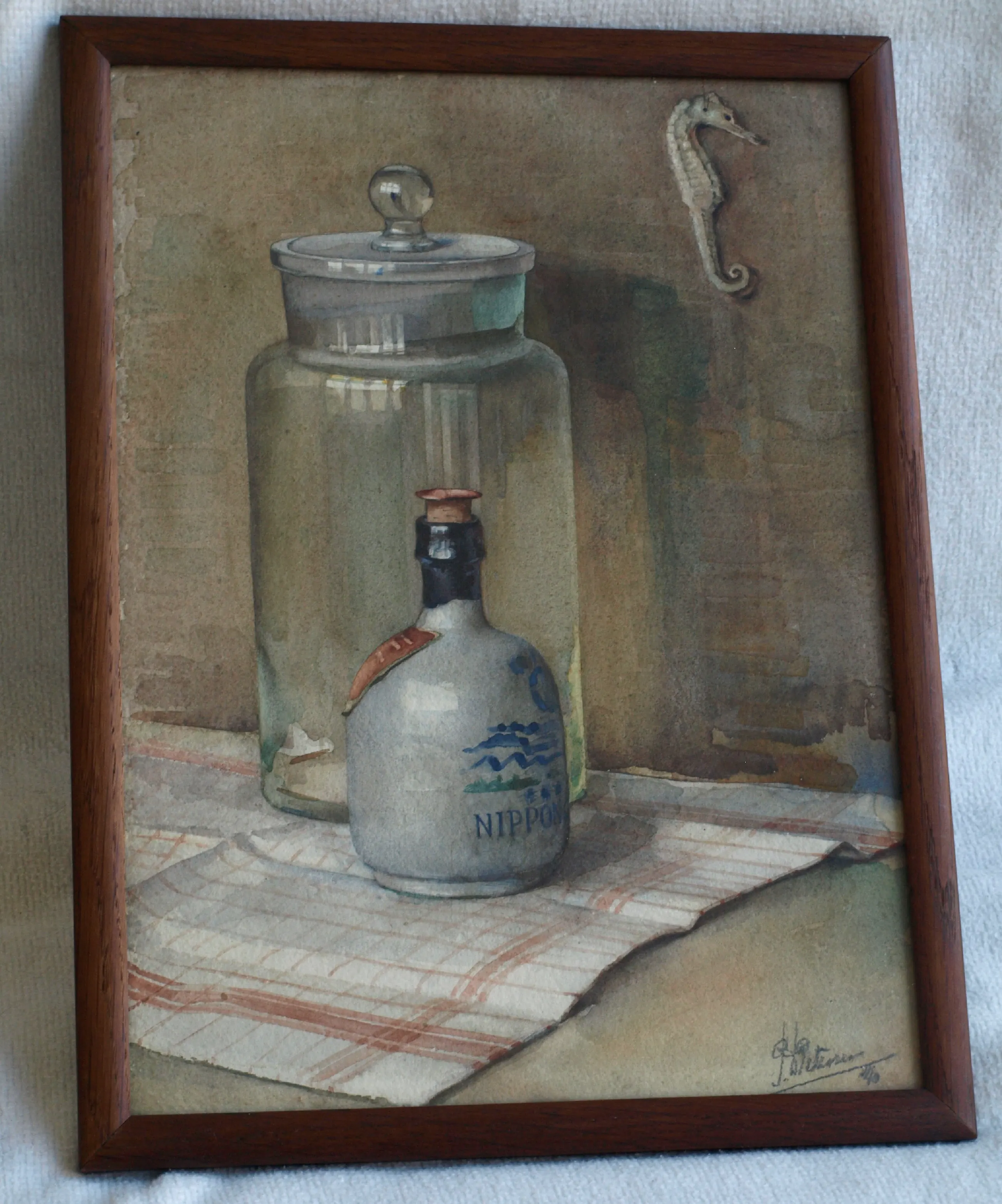 Een ingelijste aquarel uit 1940 van een ons onbekende kunstenaar. -Gesigneerd en gedateerd (’40) rechtsonder. -Ingelijst in de originele houten lijst met glasplaat. -Afmetingen: Lijst, 42 x 32 cm. Beeld, 38 x 28 cm. -Herkomst: Uit een inboedel. -Conditie: In goede staat. De lijst heeft slijtplekjes. Zie ook de foto’s voor een eigen indruk. Kan zo aan de muur.