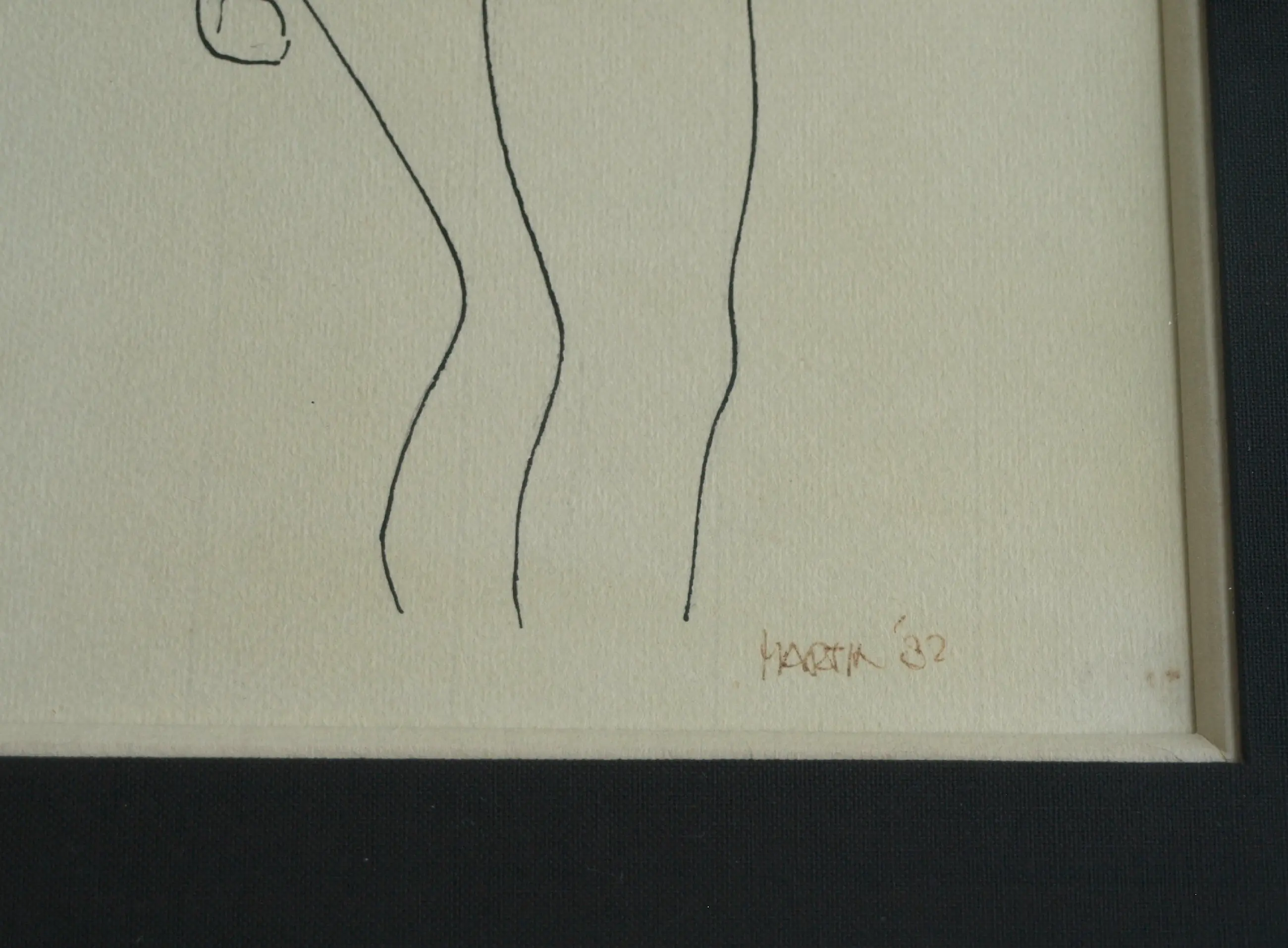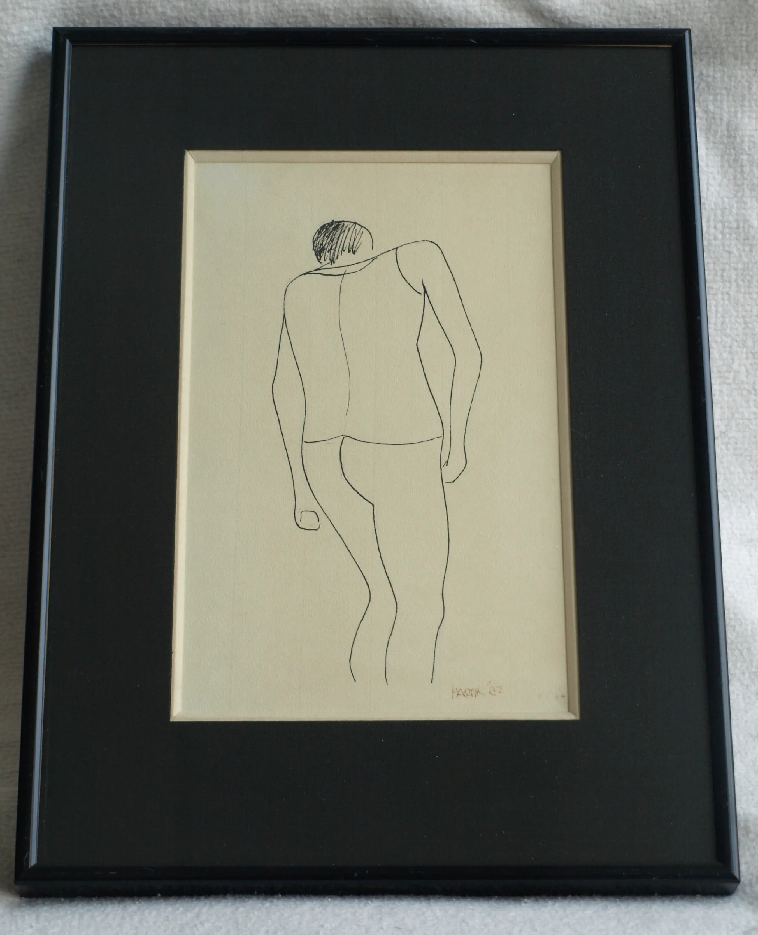 De tekening is in goede staat. De lijst heeft slijtplekjes. Zie ook de foto’s voor een eigen indruk. Kan zo aan de muur.