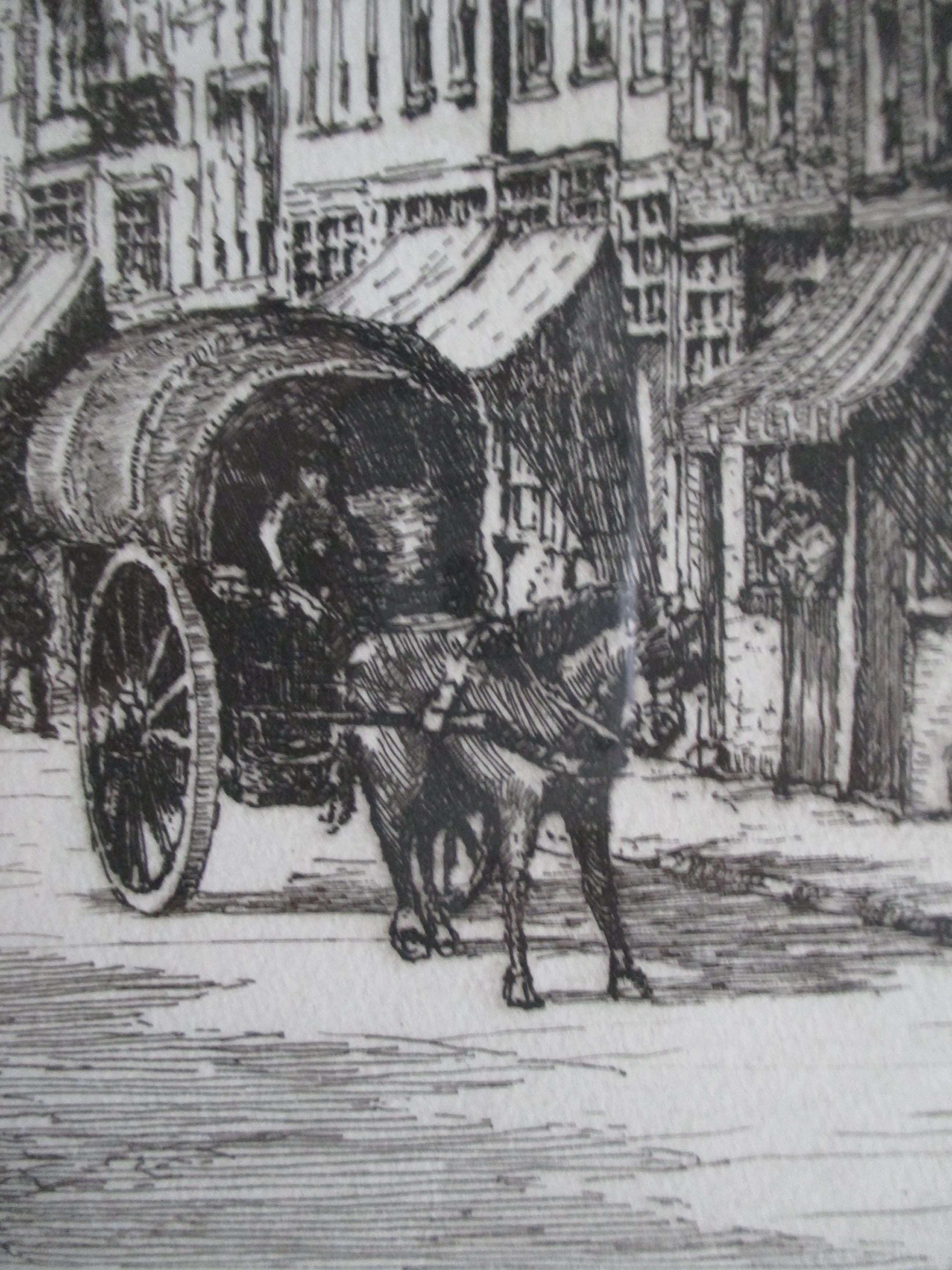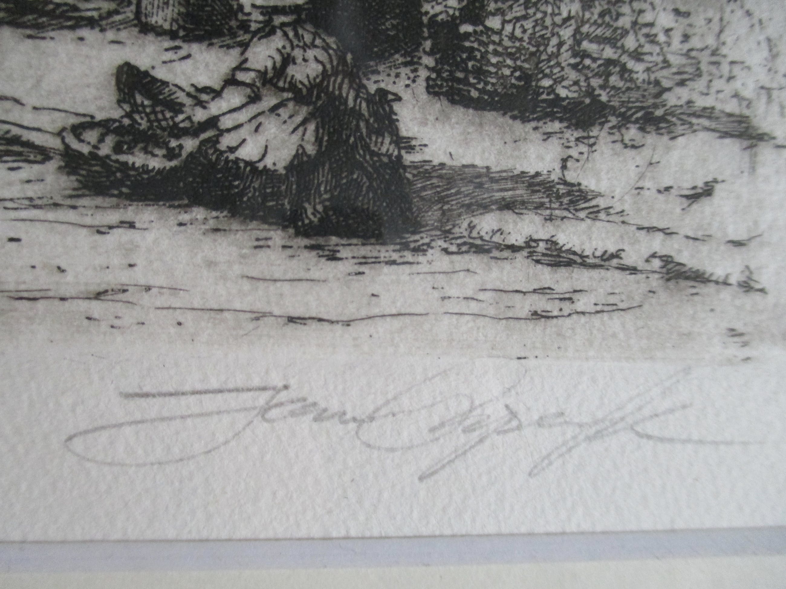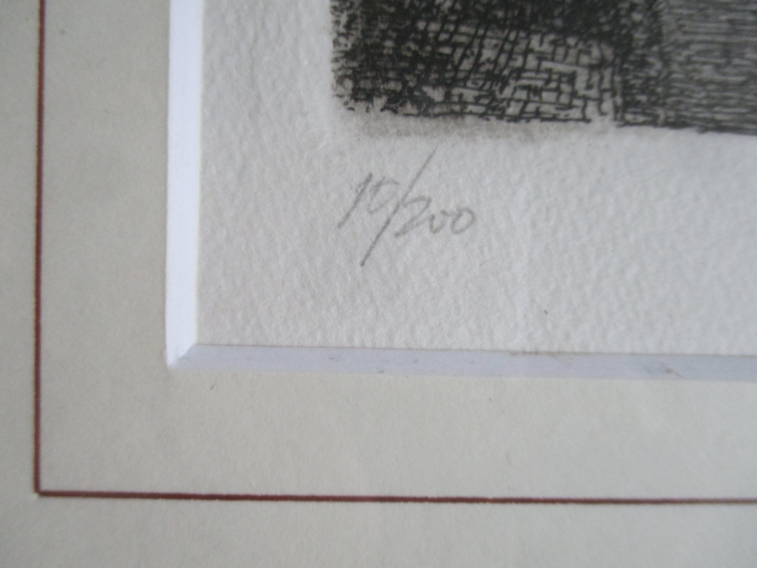Ets, gesigneerd, getiteld en genummerd in potlood. Mooi ingelijst achter glas en passe-partout. Verzending aangetekend 11,20. Bij verzending is glasbreuk voor risico van de koper.