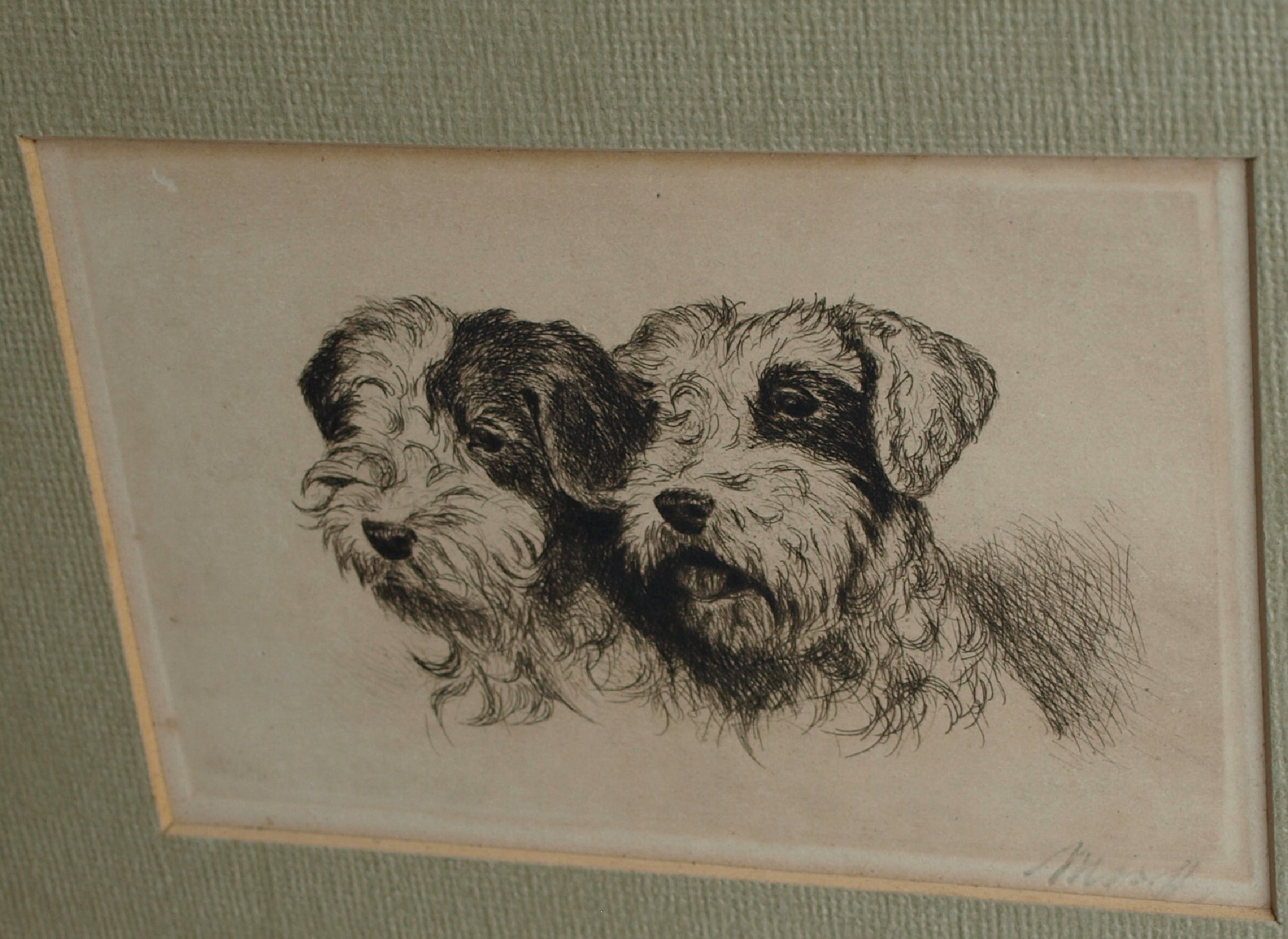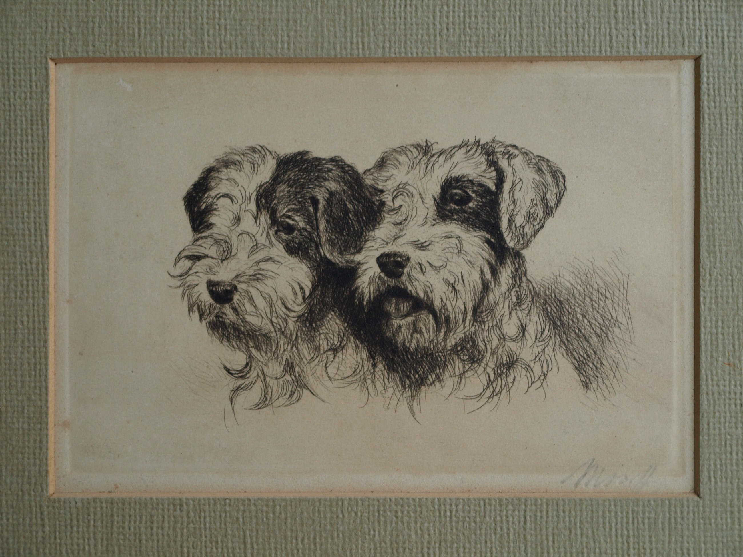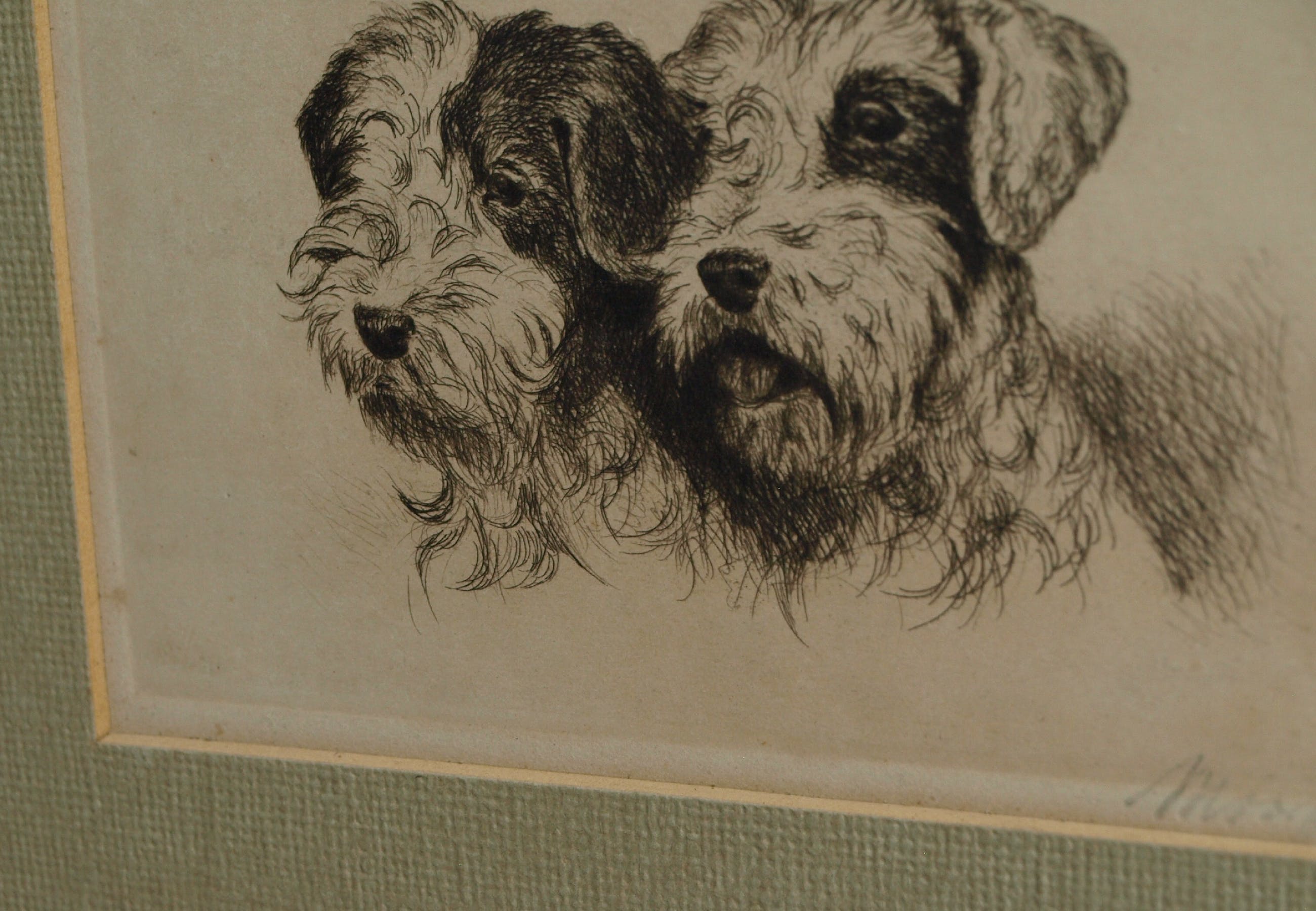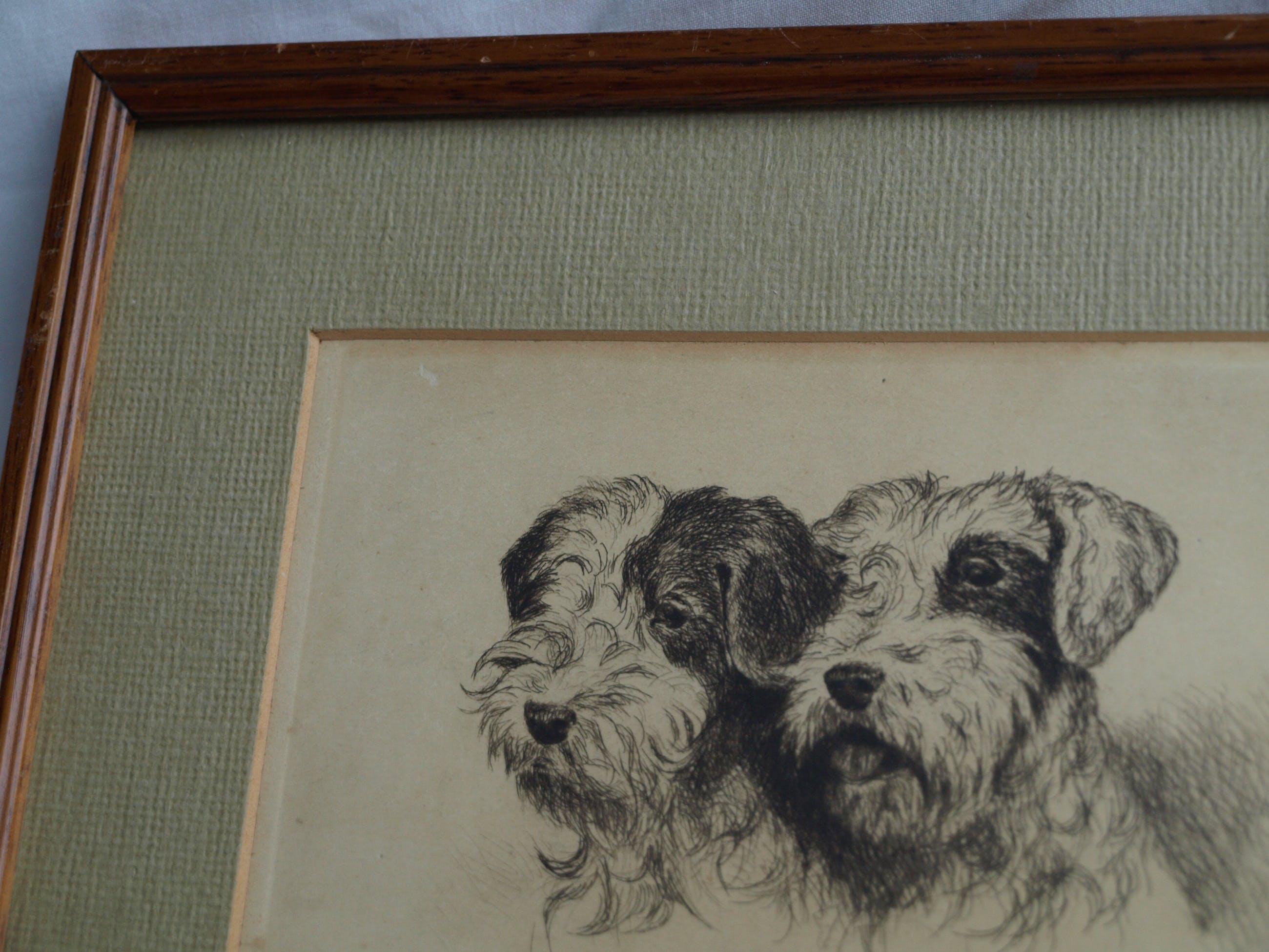 Onbekend - Ingelijste ets , 2 Honden , 2 portretten - oud - Verkocht
