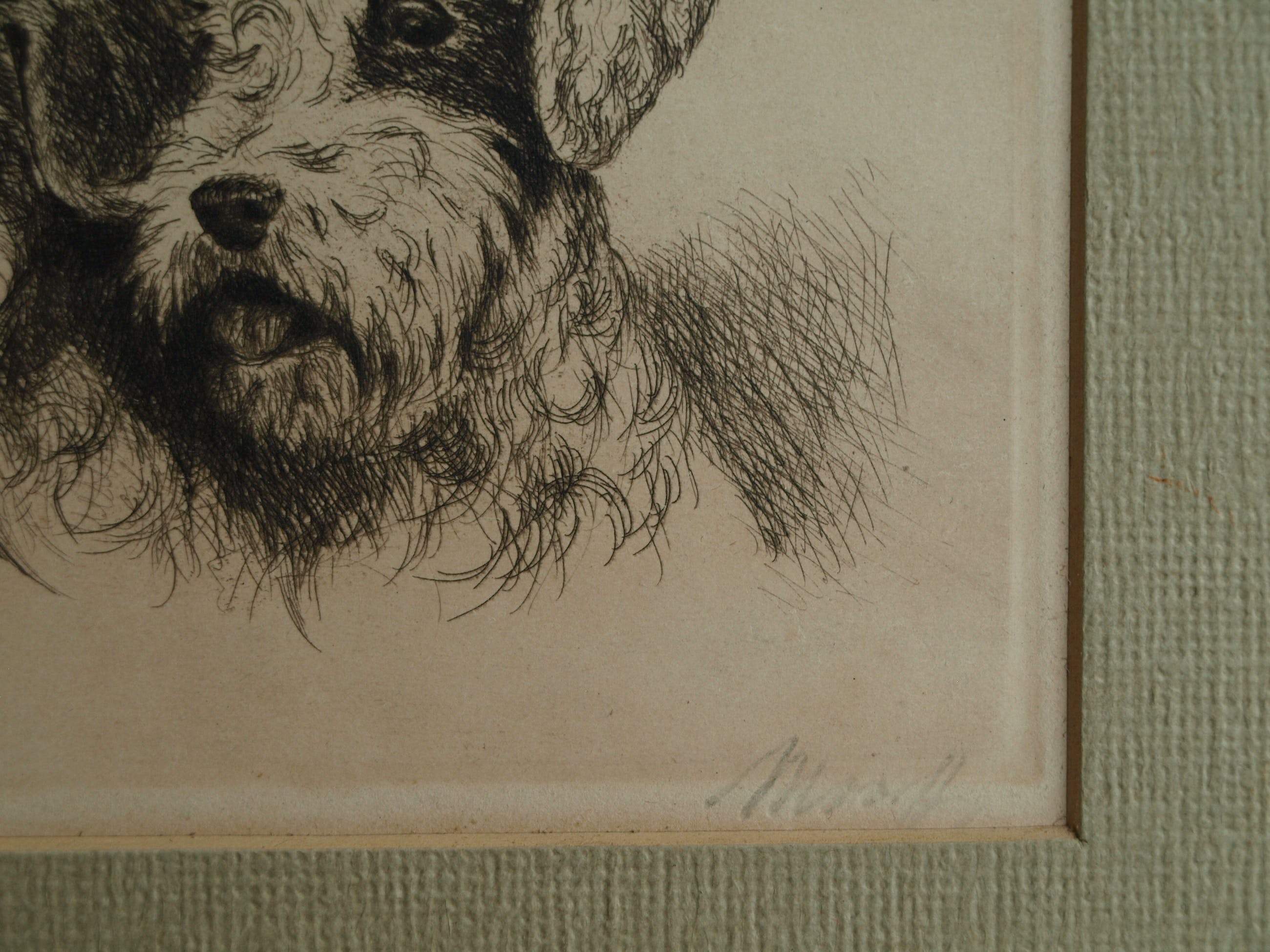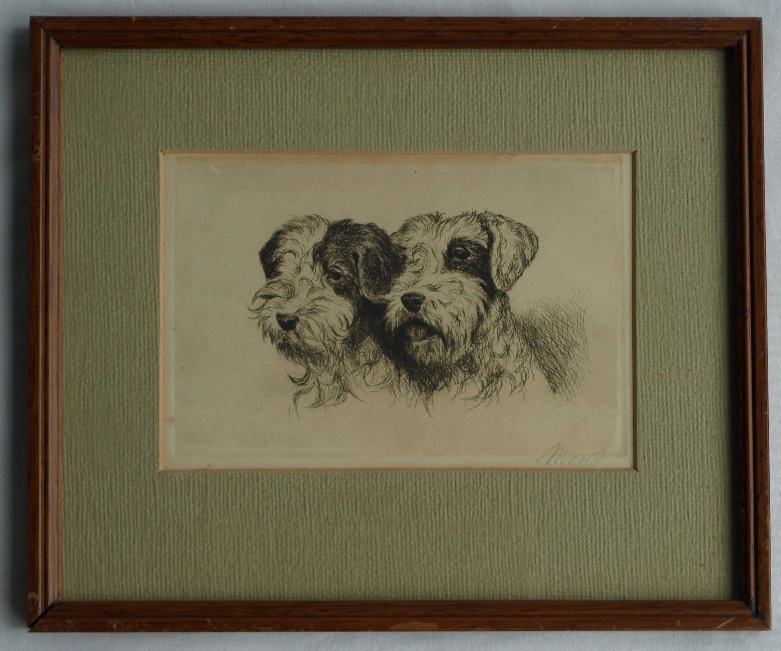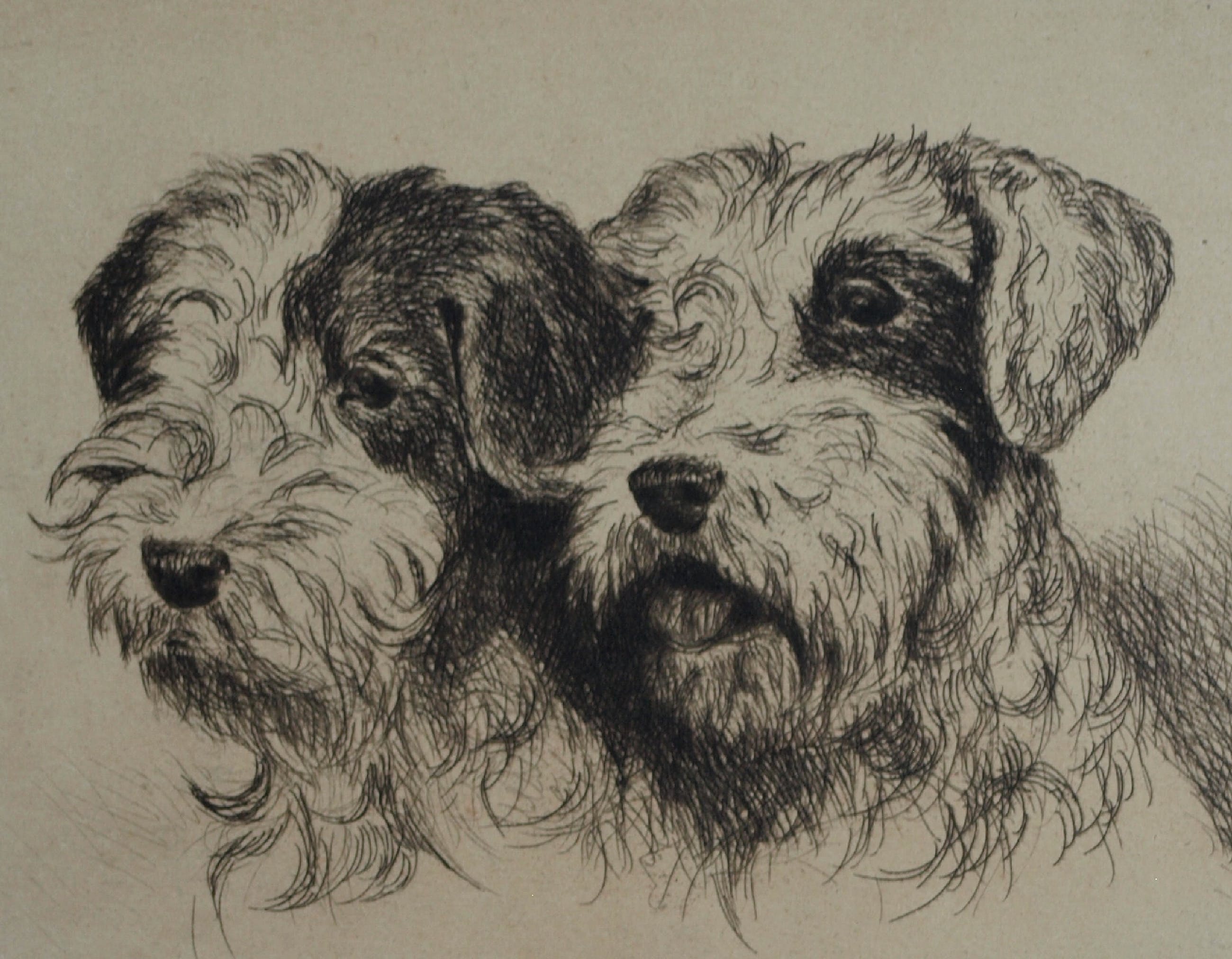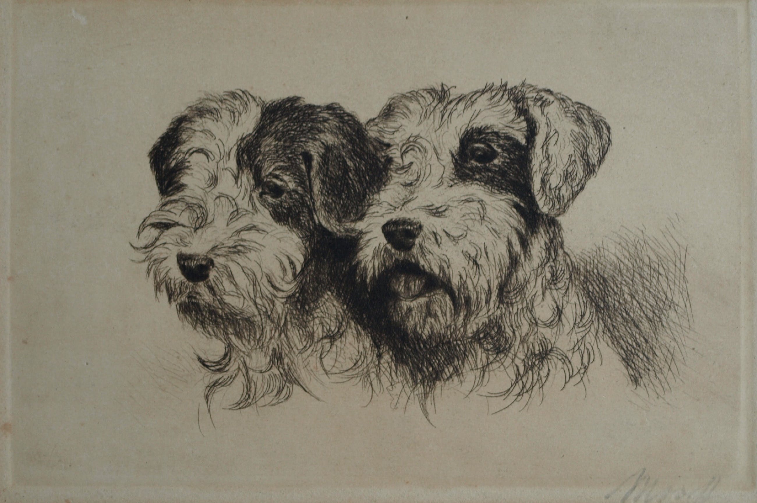 Onbekend - Ingelijste ets , 2 Honden , 2 portretten - oud - Verkocht
