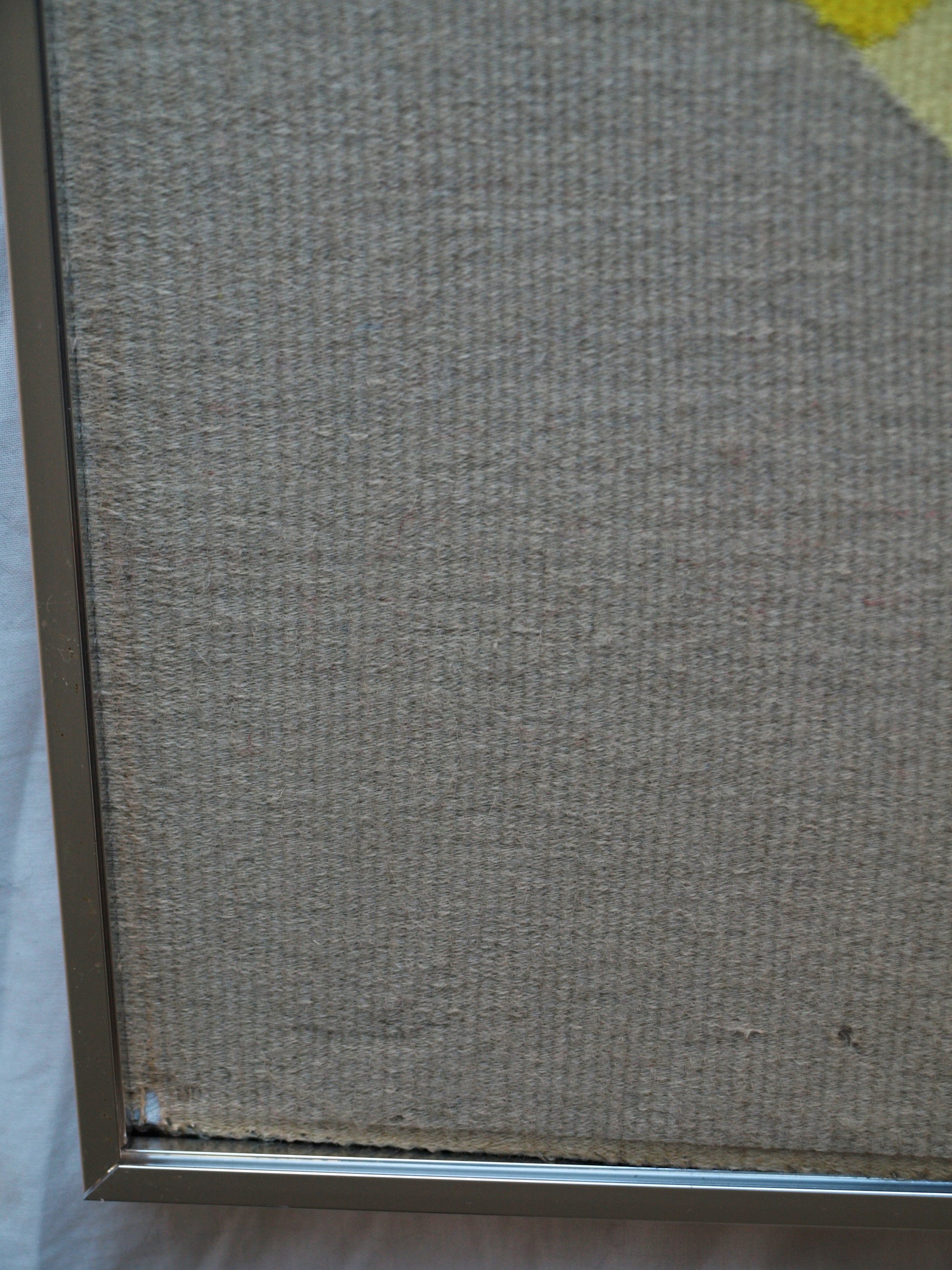In redelijke staat. Slijtage van de wol aan de onderrand, m.n. in de linker- en rechter benedenhoek. Zie ook de foto’s voor een eigen indruk. Kan zo aan de muur.