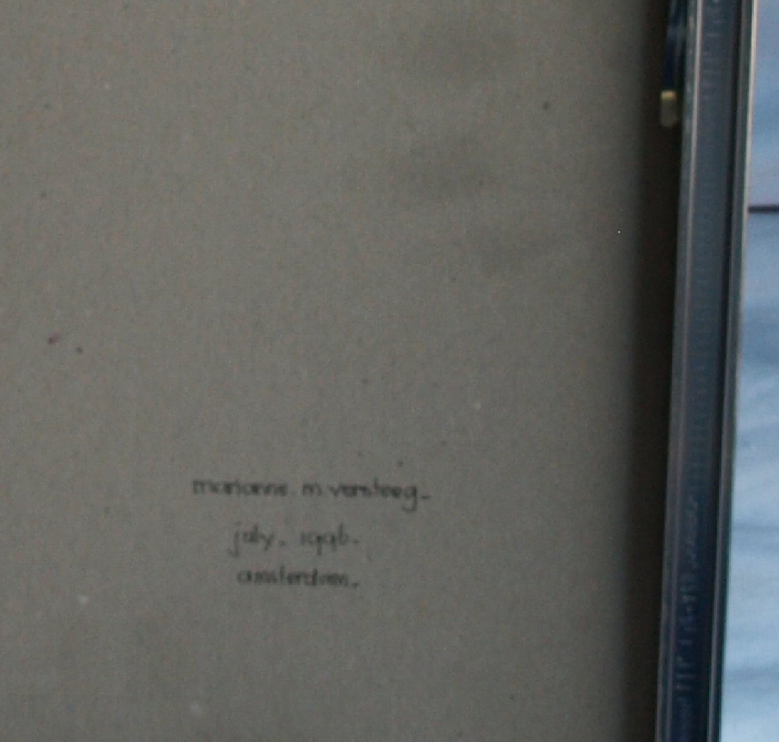 -Met naamsvermelding (‘M. Versteeg’) en het jaartal 1996 op de achterkant van de lijst.