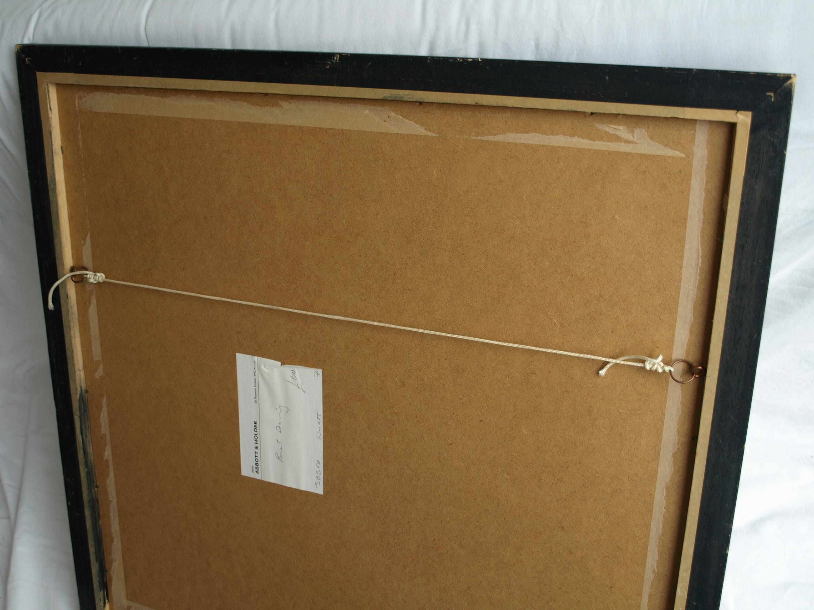 In goede staat. Het blad van de tekening heeft vlekjes en een lichte verticale vouw/kreuk. De lijst heeft slijtplekken. Zie ook de foto’s. Kan zo aan de muur.