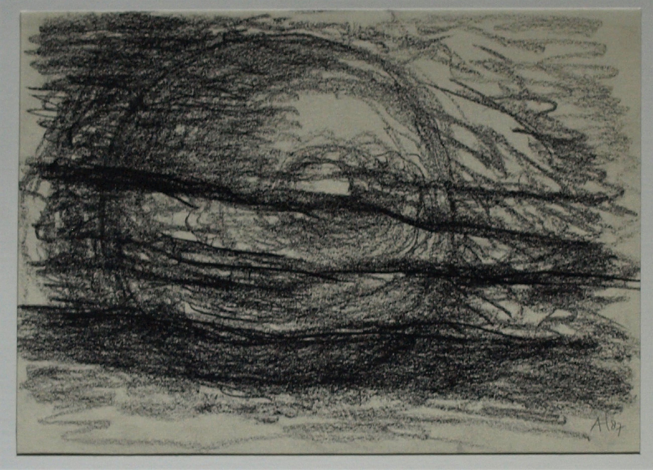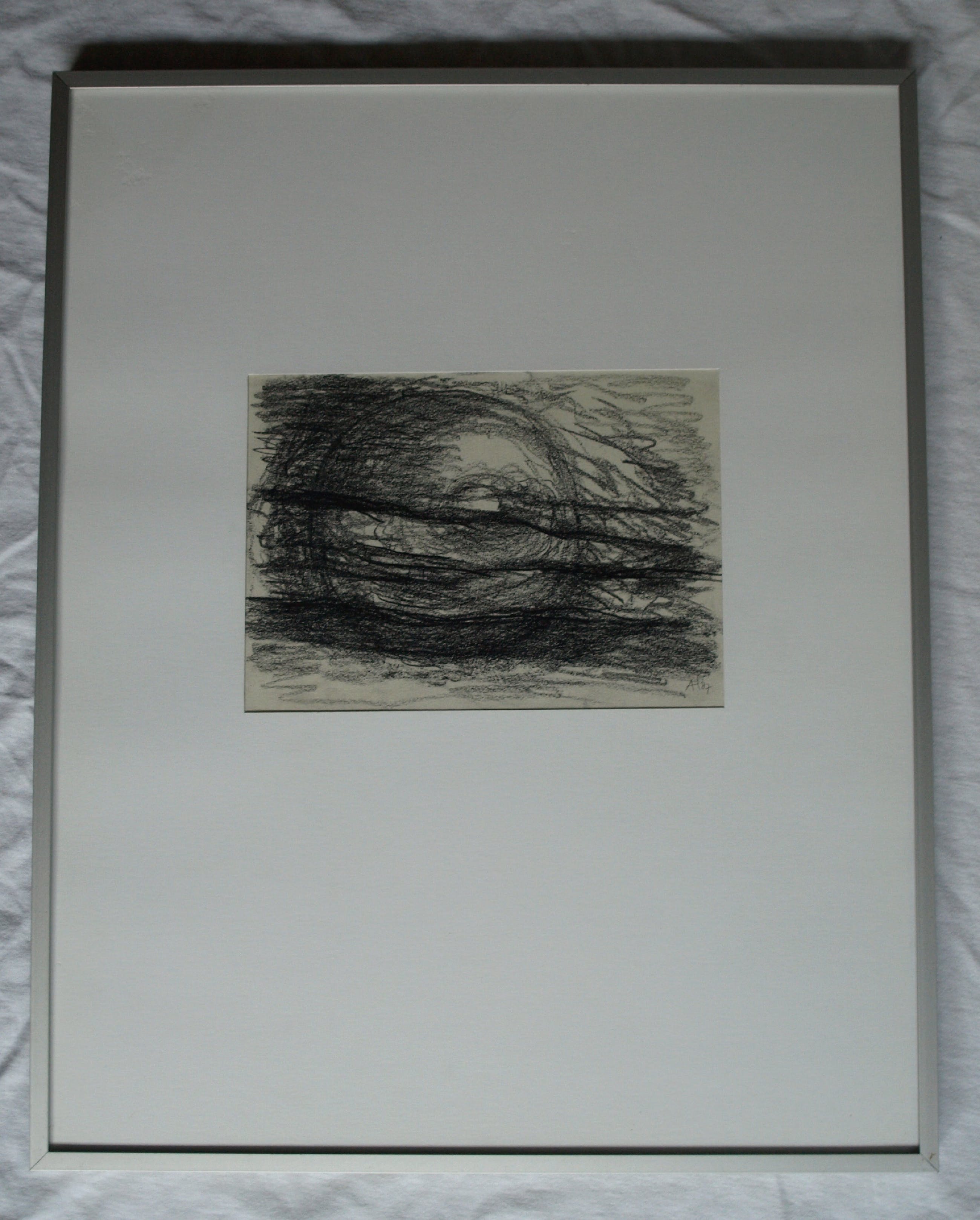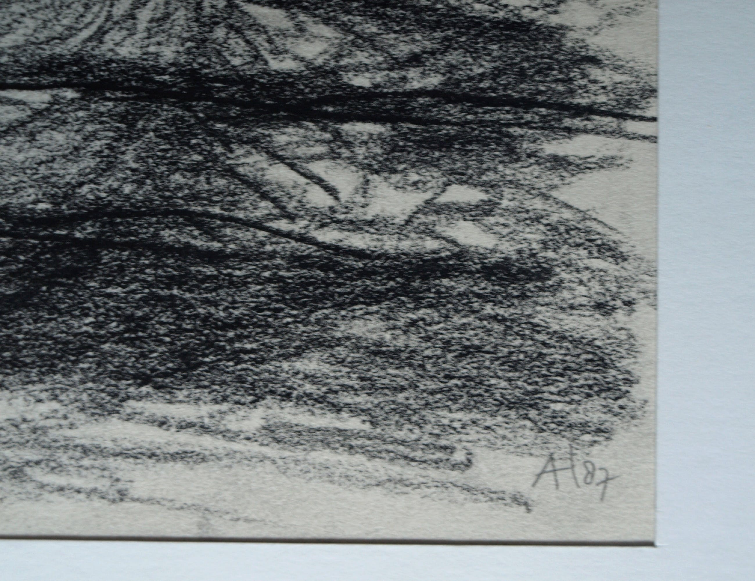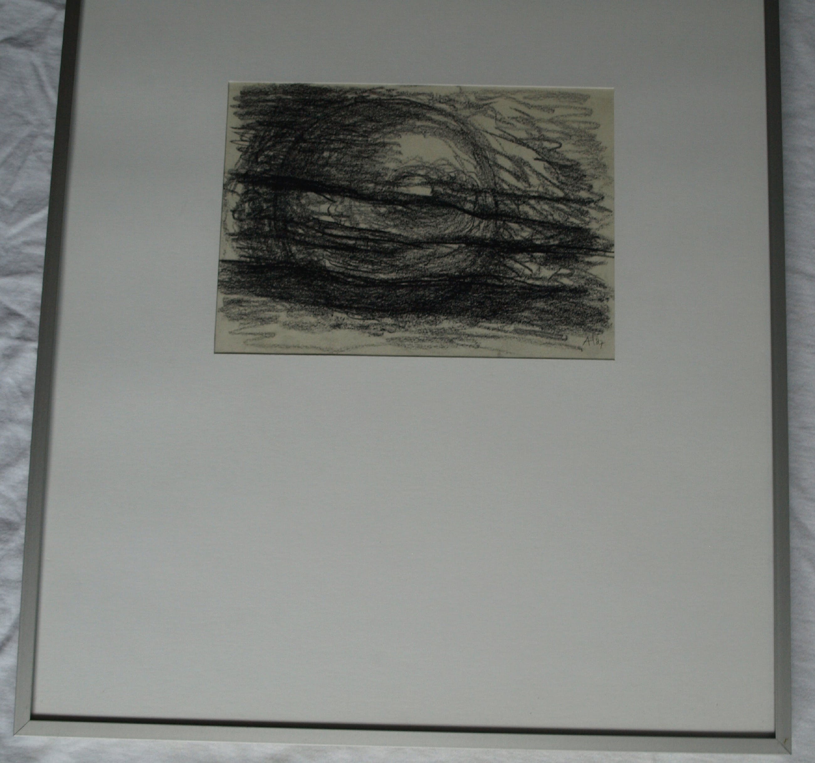 Een ingelijste tekening uit 1987 van een ons onbekende kunstenaar.