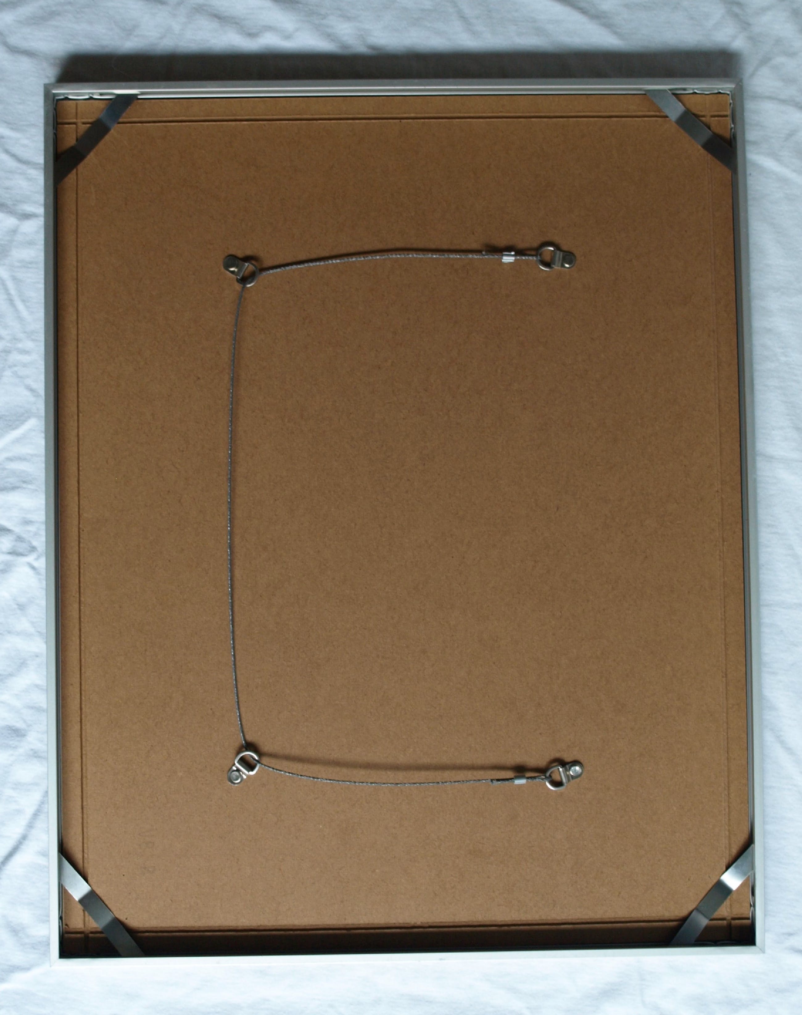 -Ingelijst in een aluminium lijst met passe-partout en glasplaat.