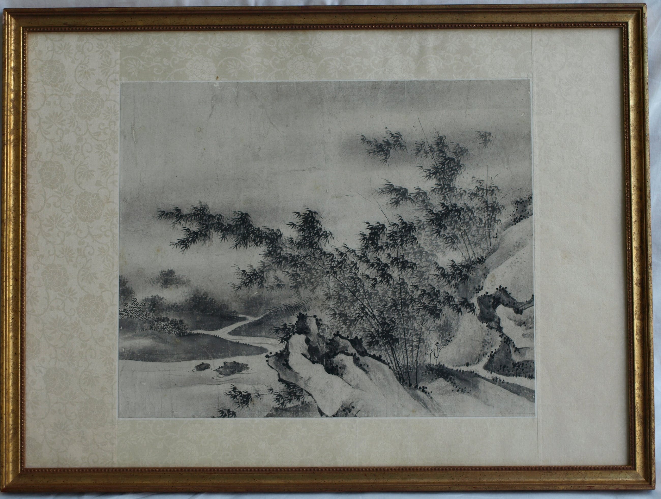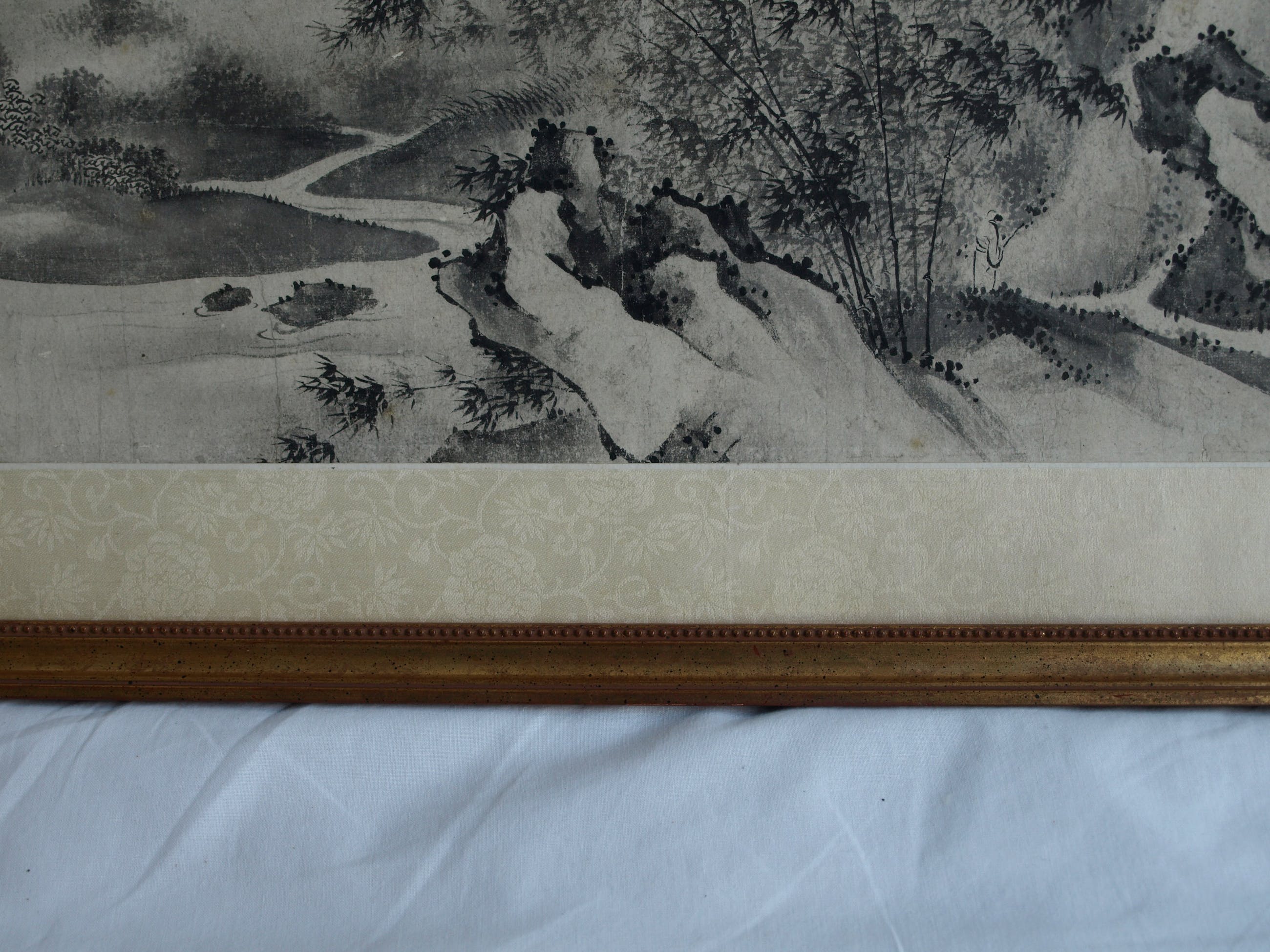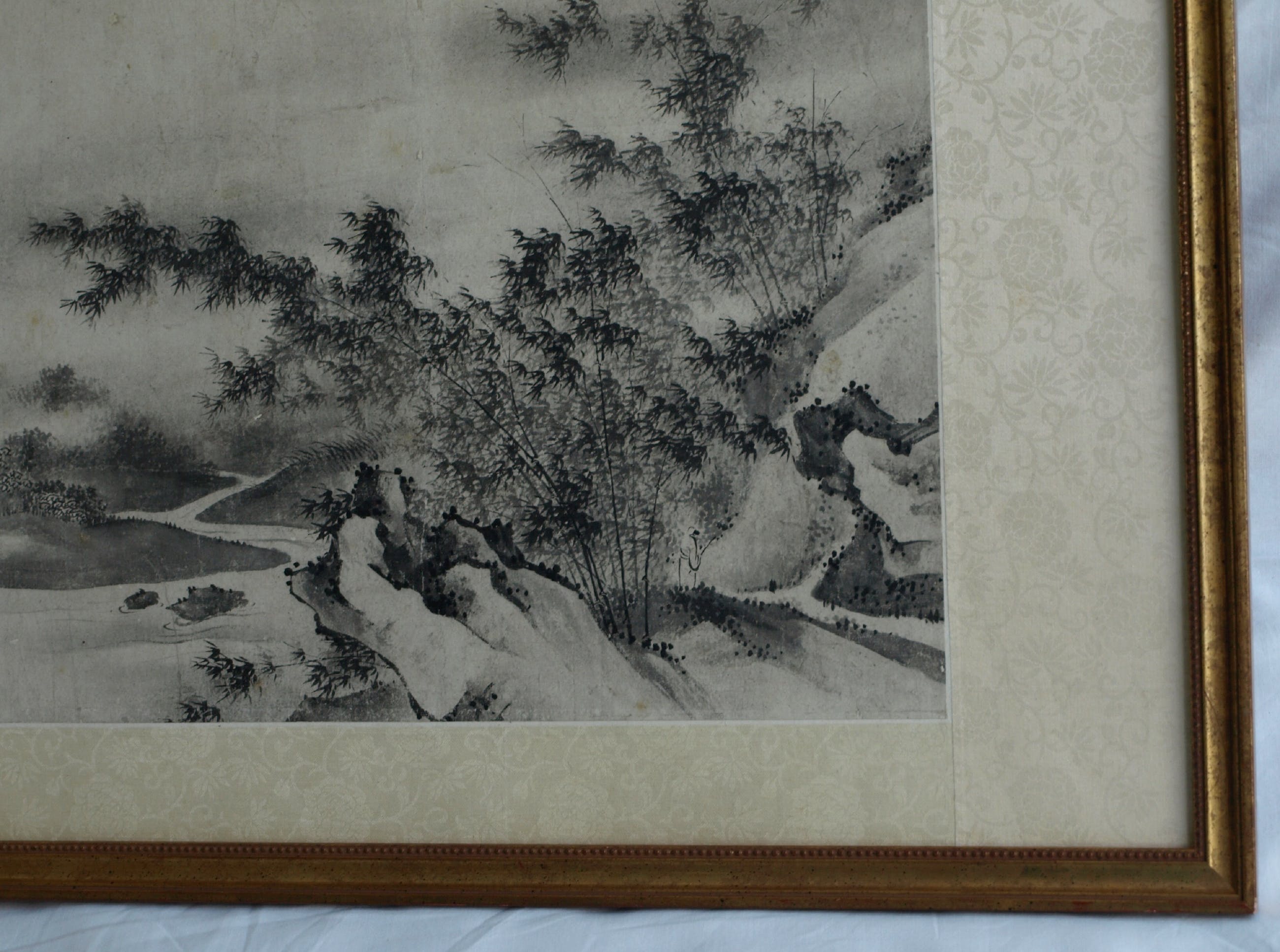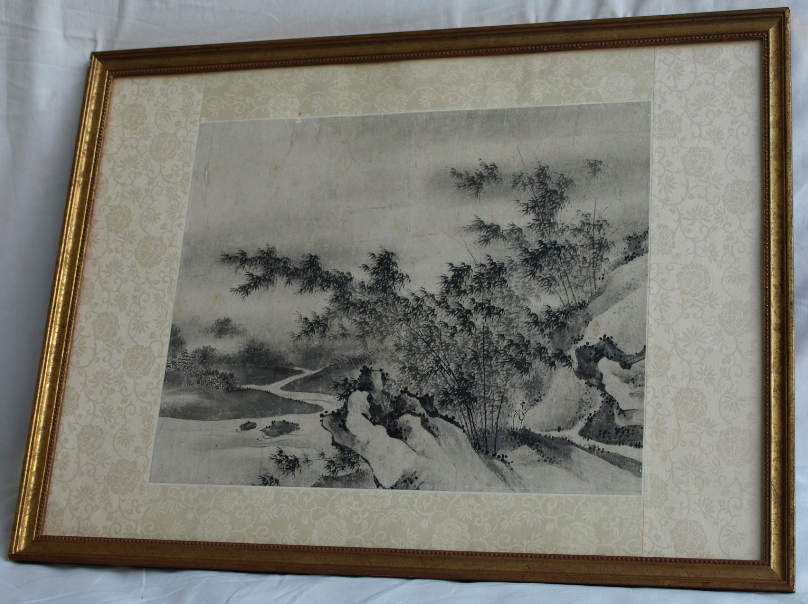 Onbekend - Ingelijste zw/w inkttekening / aquarel , Japan? China? , Landschap - Verkocht