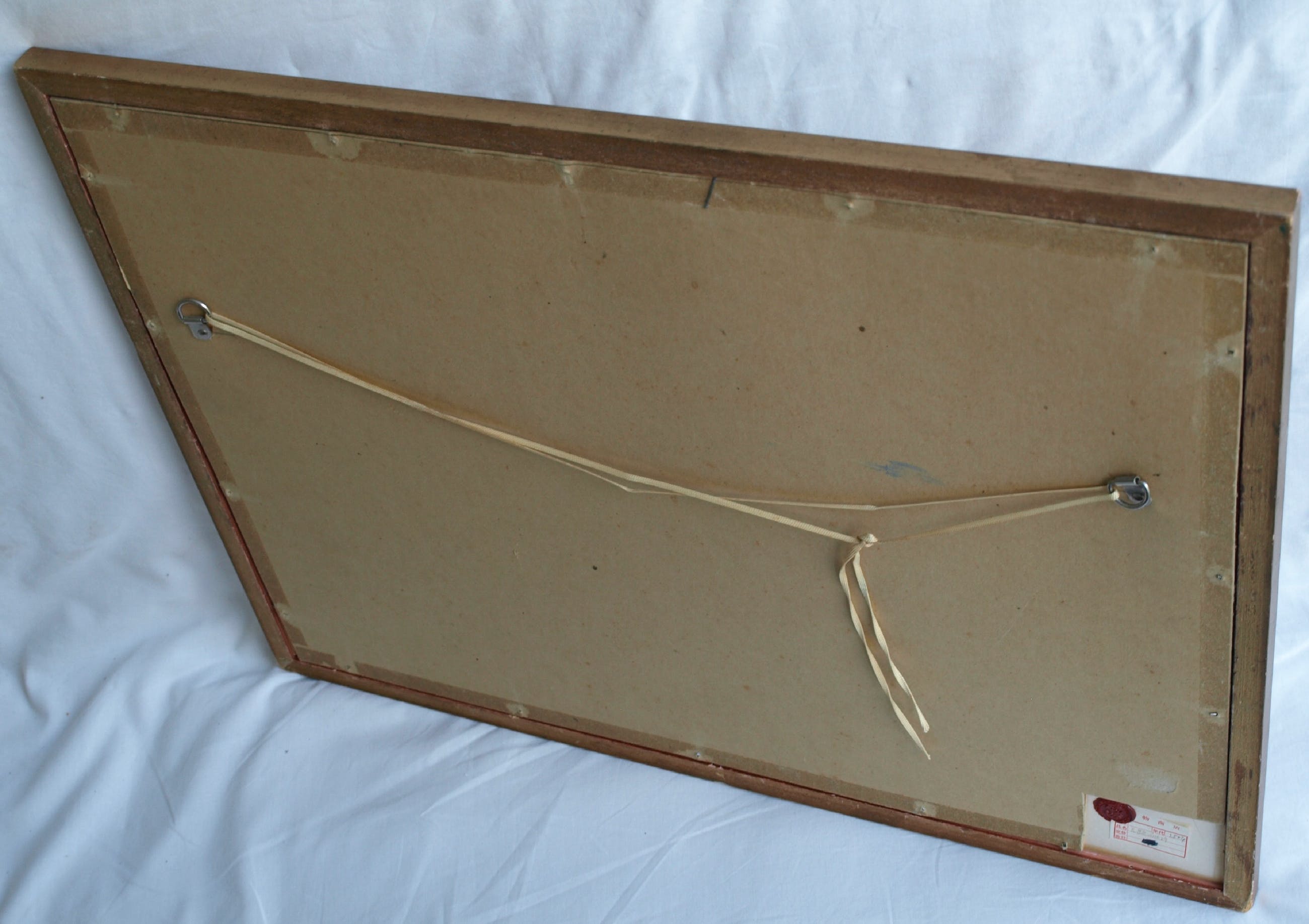 In goede staat. Het papier heeft slijtplekjes en een paar lichte ‘zuurvlekjes’. De lijst heeft slijtplekjes. Zie ook de foto’s voor een eigen indruk. Kan zo aan de muur.