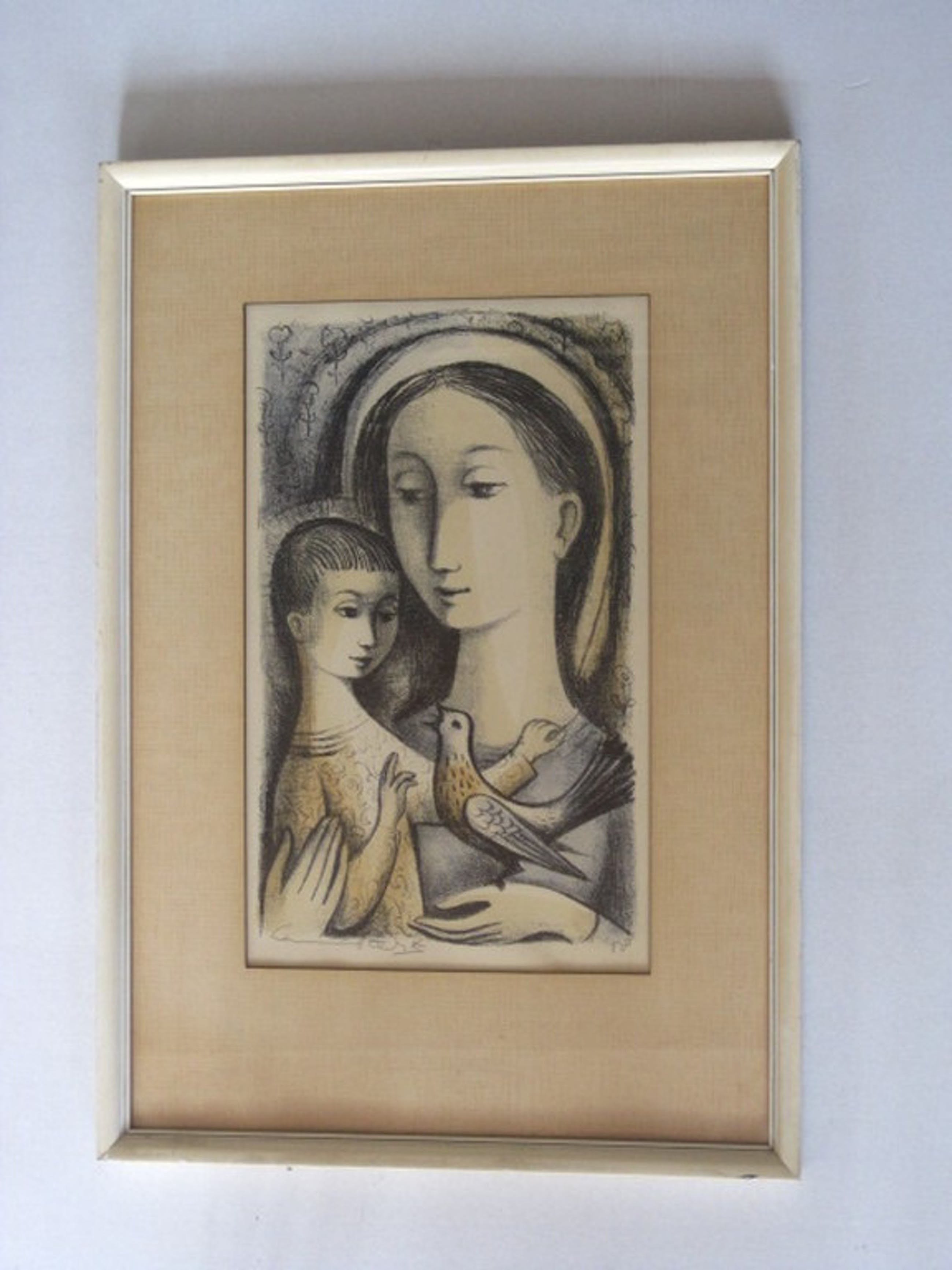 Ingetogen 1958 gesigneerde "Maria en kind" litho in de stijl van Charles Eyck kopen? Bied vanaf 1!