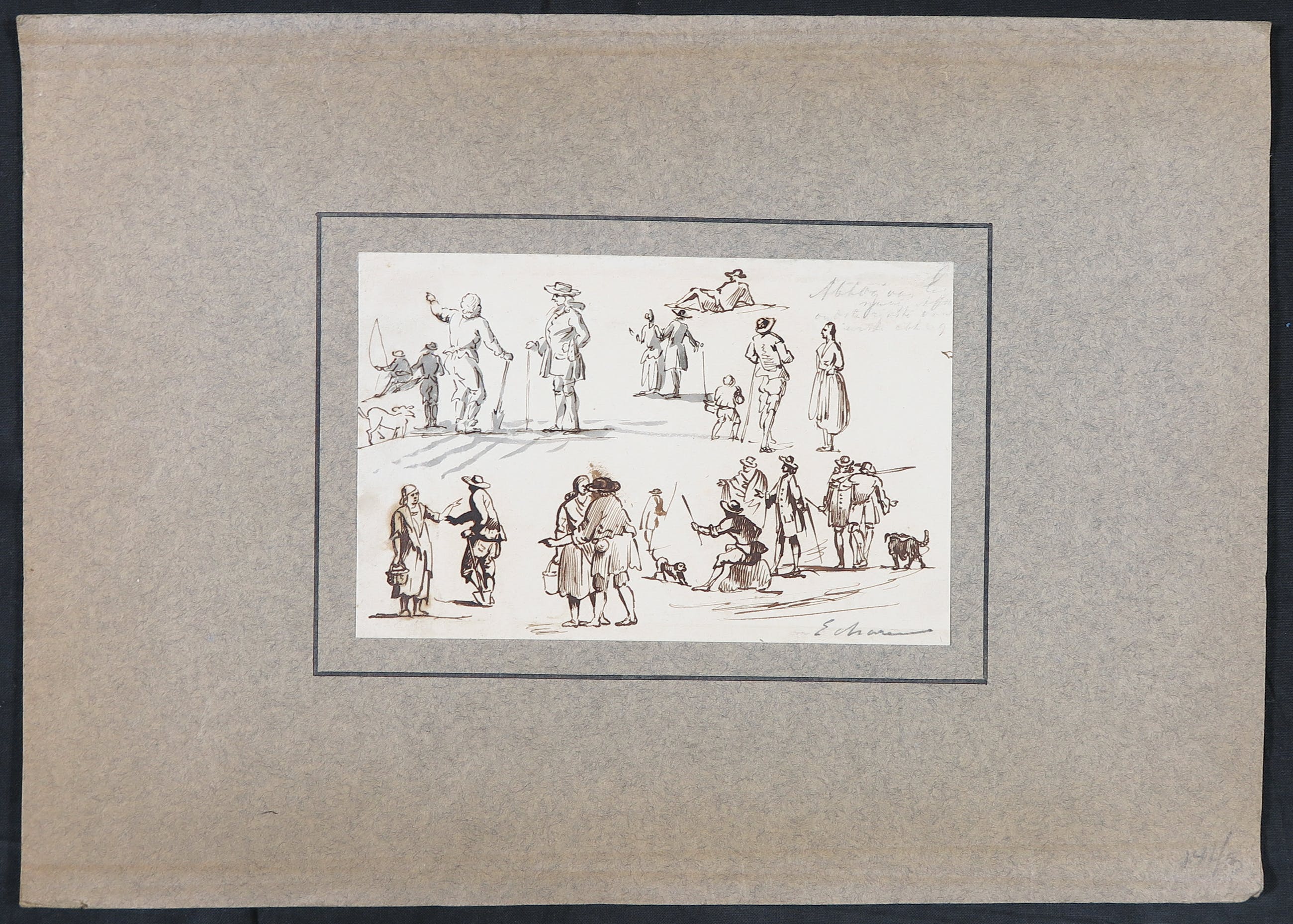 Niet of onleesbaar gesigneerd - Inkttekening, Figuren in historische kleding kopen? Bied vanaf 1!
