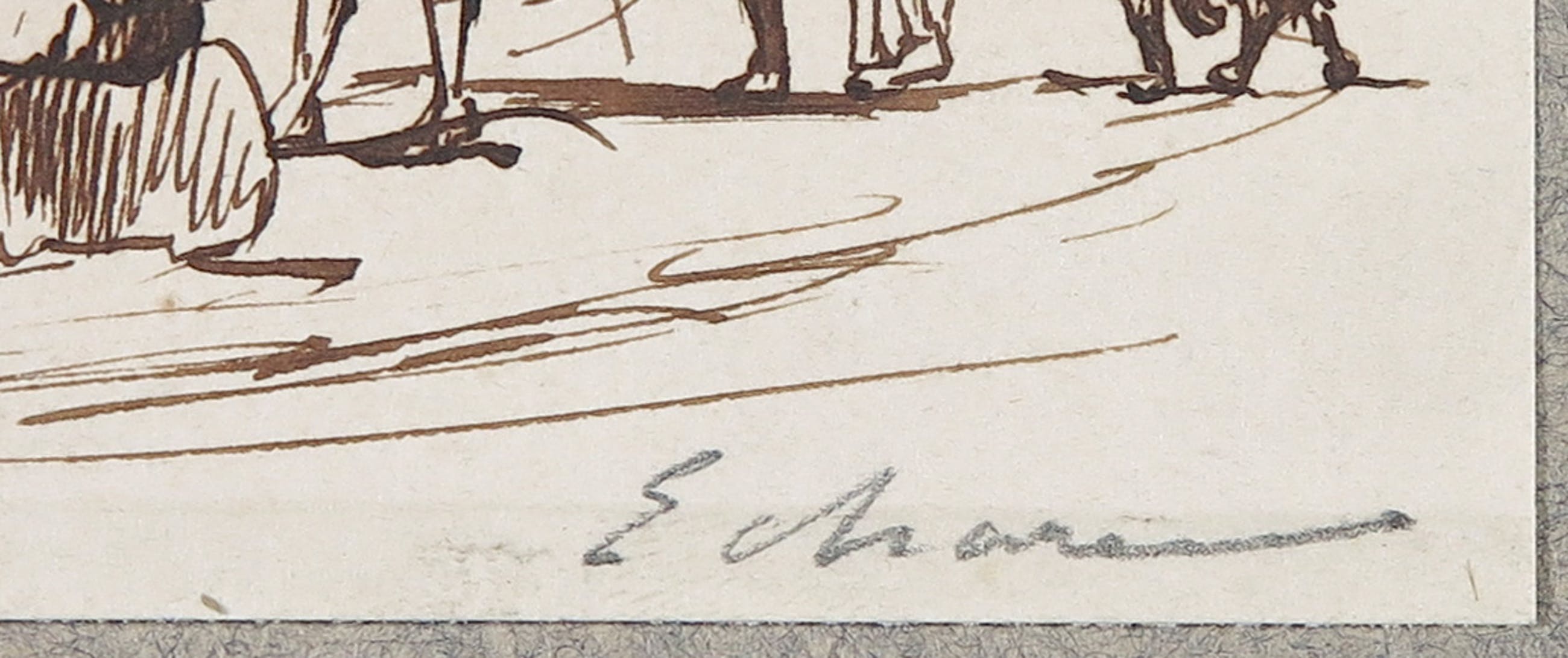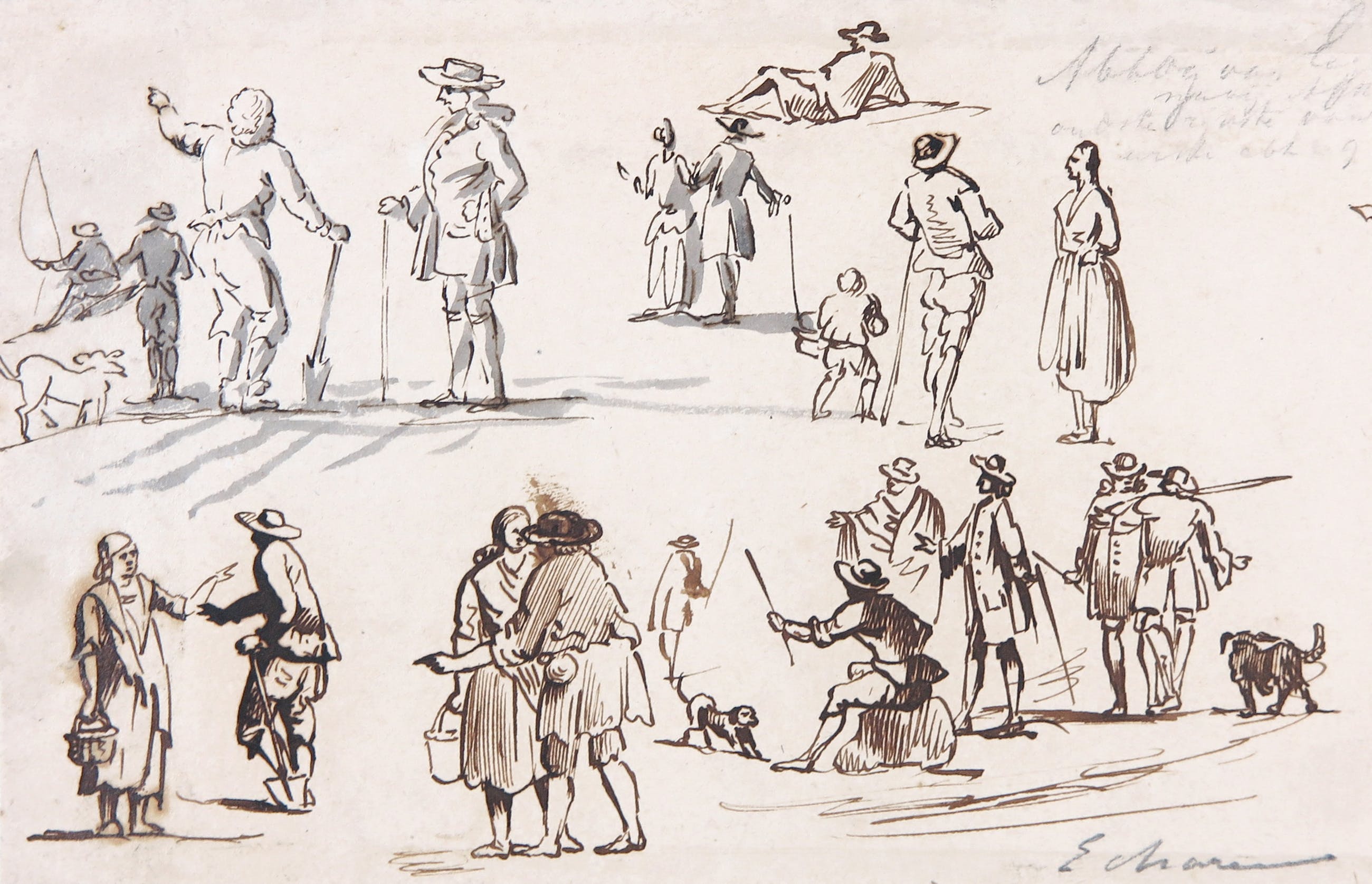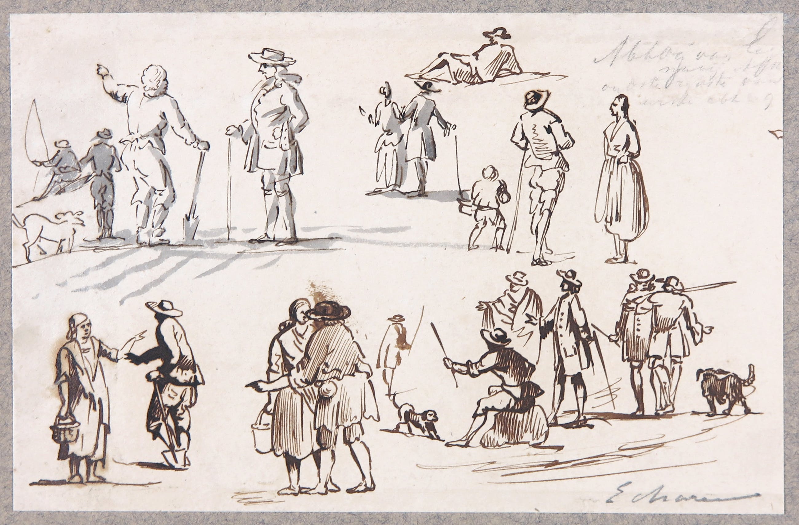 Onbekend - Inkttekening, Figuren in historische kleding - Verkocht