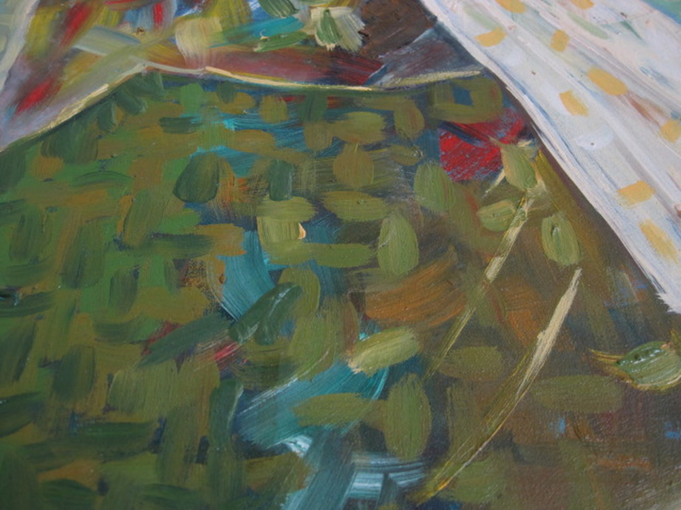 Conditie : goed, rand spieraam is zichtbaar in doek rechterzijde.