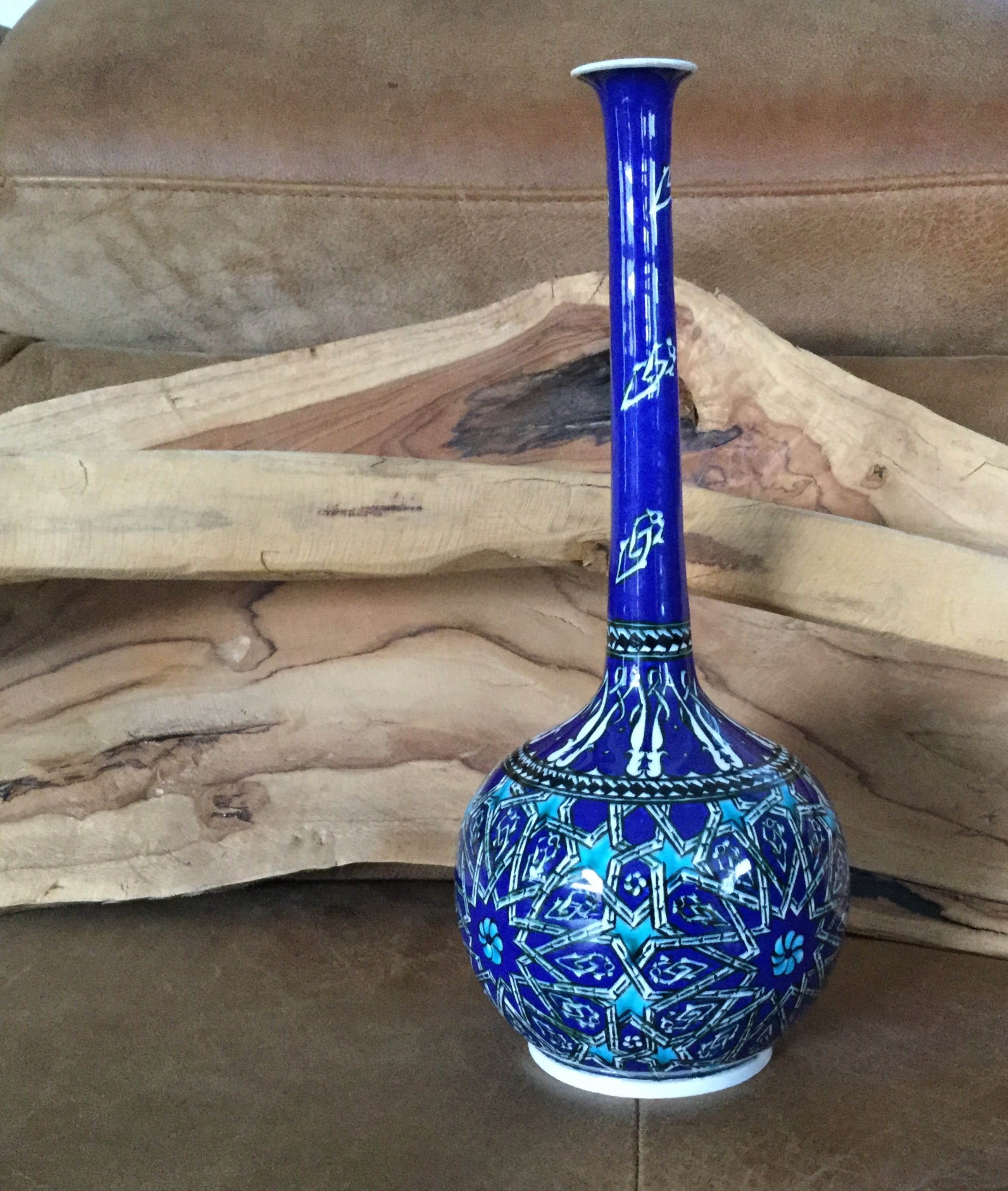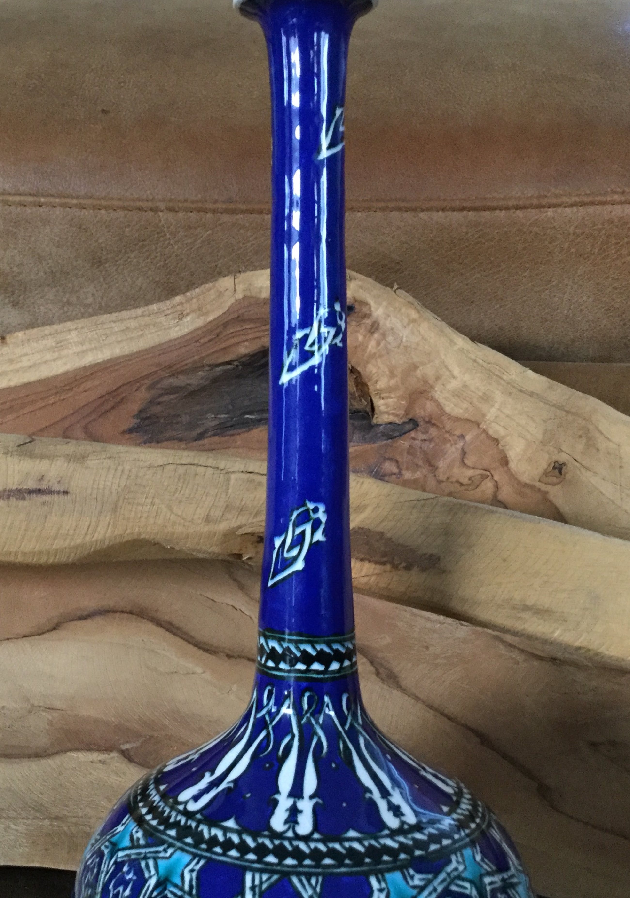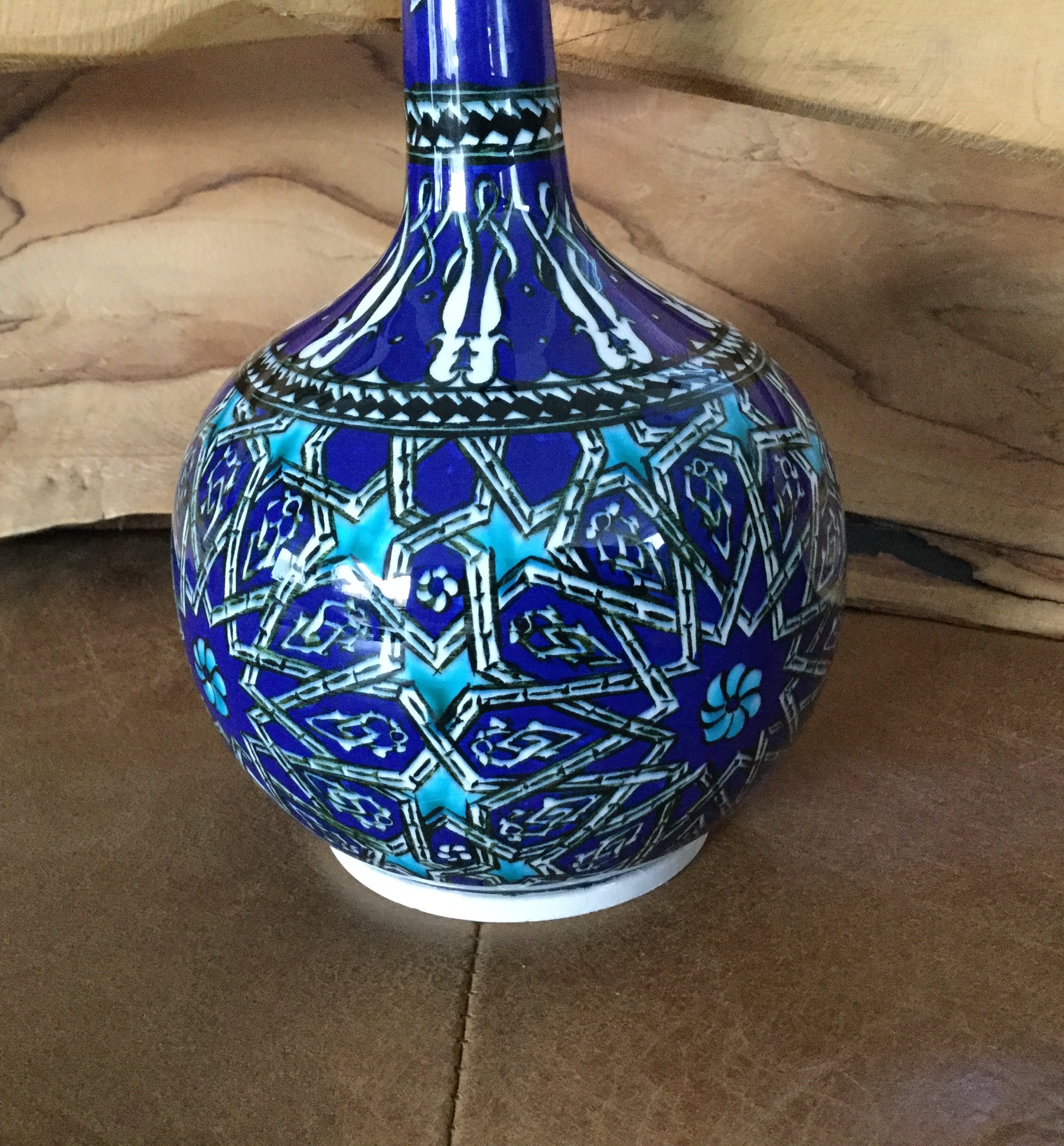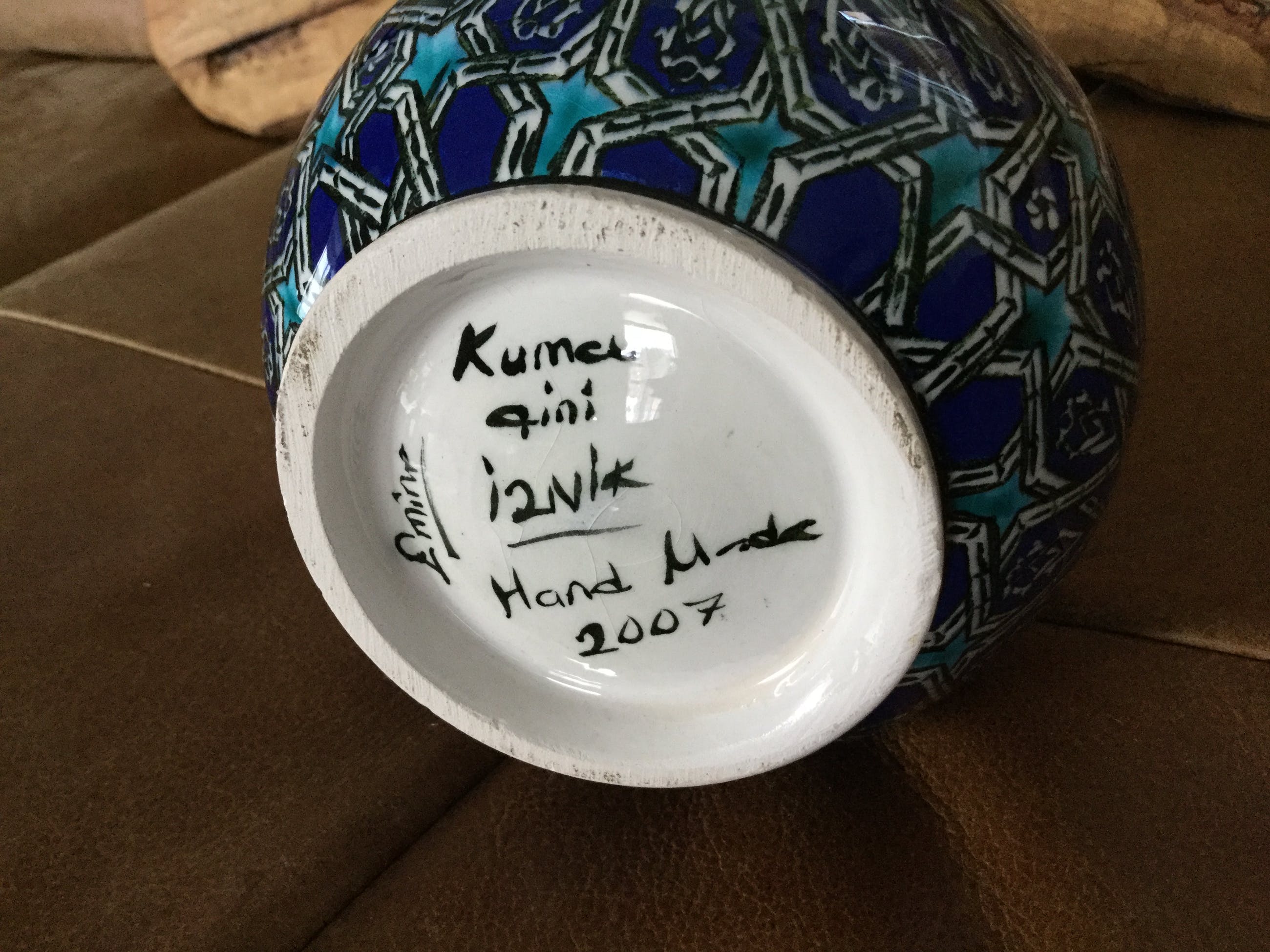 Prachtige handgemaakte Iznik vaas met geometrische motieven, gesigneerd en gedateerd 2007