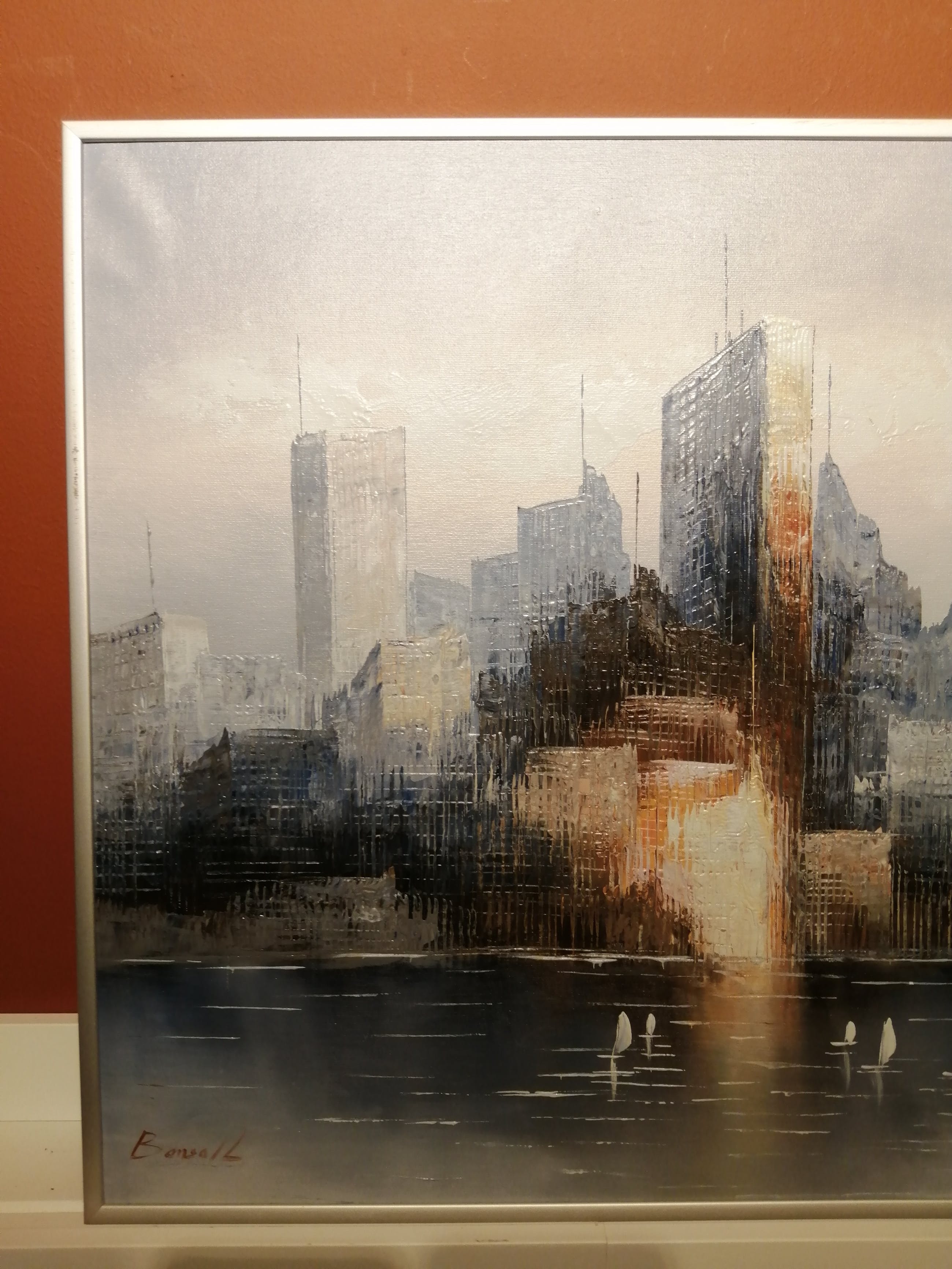 Het werk, olieverf op los doek, is in goede tot zeer goede staat, zie foto's deze zijn onderdeel van de beschrijving. De lijst is van aluminium en heeft enkele gebruikerssporen /slijtvlekken. | |||
