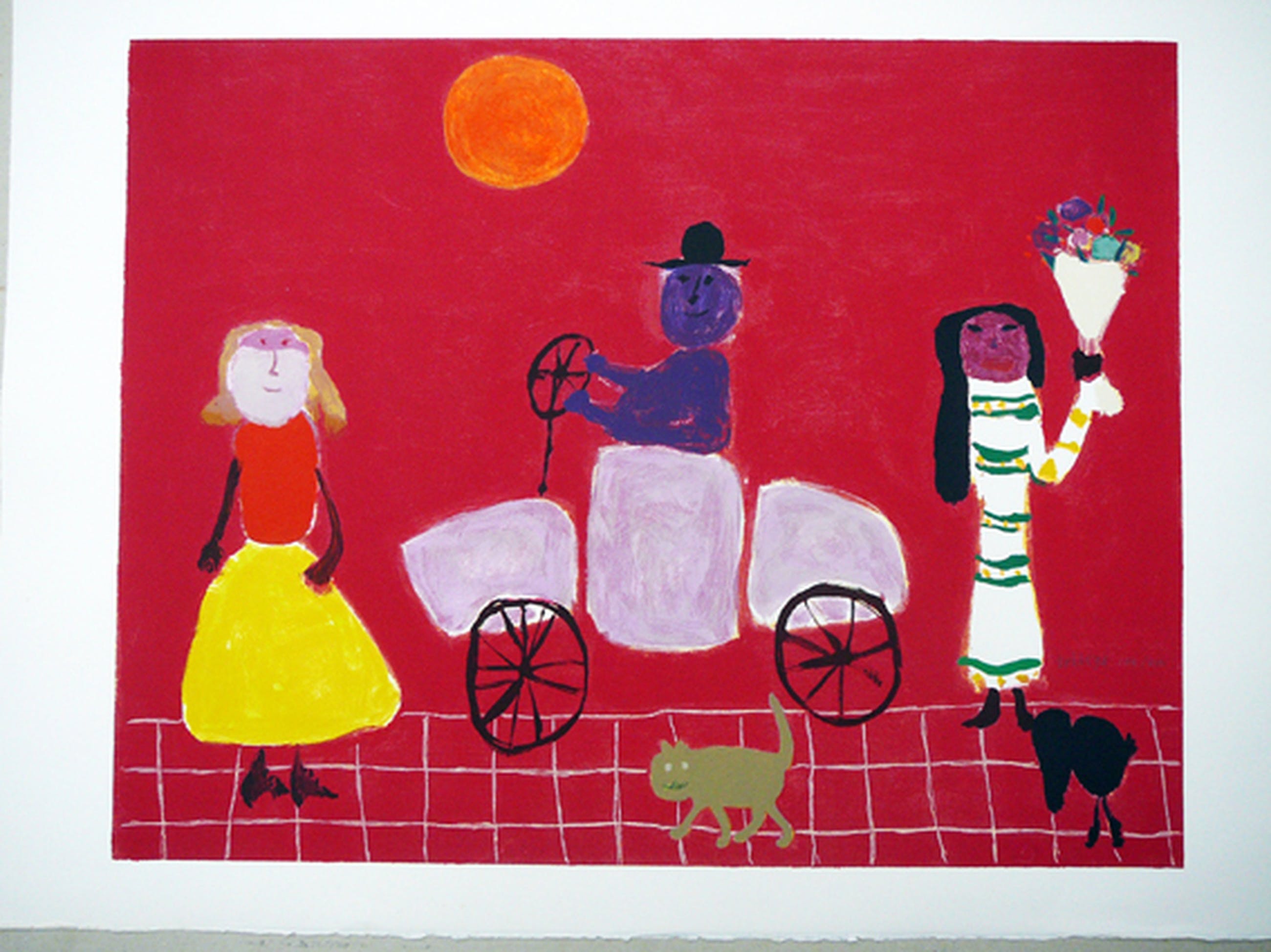 Mooie naieve zeefdruk op geschept papier, met potlood gesigneerd in het beeld. Losbladig, bladmaat 76 x 57 cm. Conditie: uitstekend. Bij voorkeur af te halen in Utrecht of verzending in overleg.