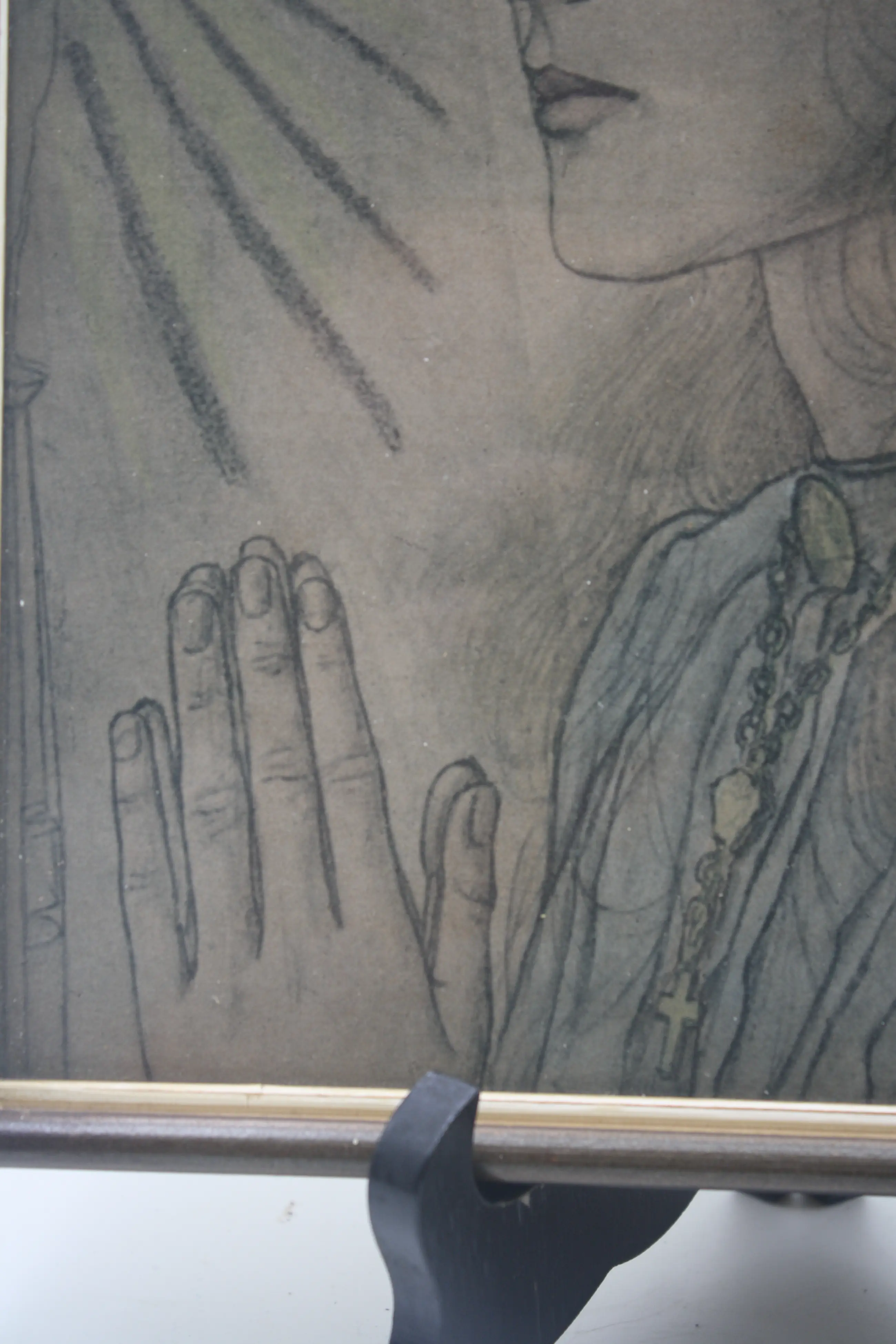Origineel ingelijst met bronskleurige lijst. Het afgebeelde meisje is Charley Toorop, de dochter van de kunstenaar.