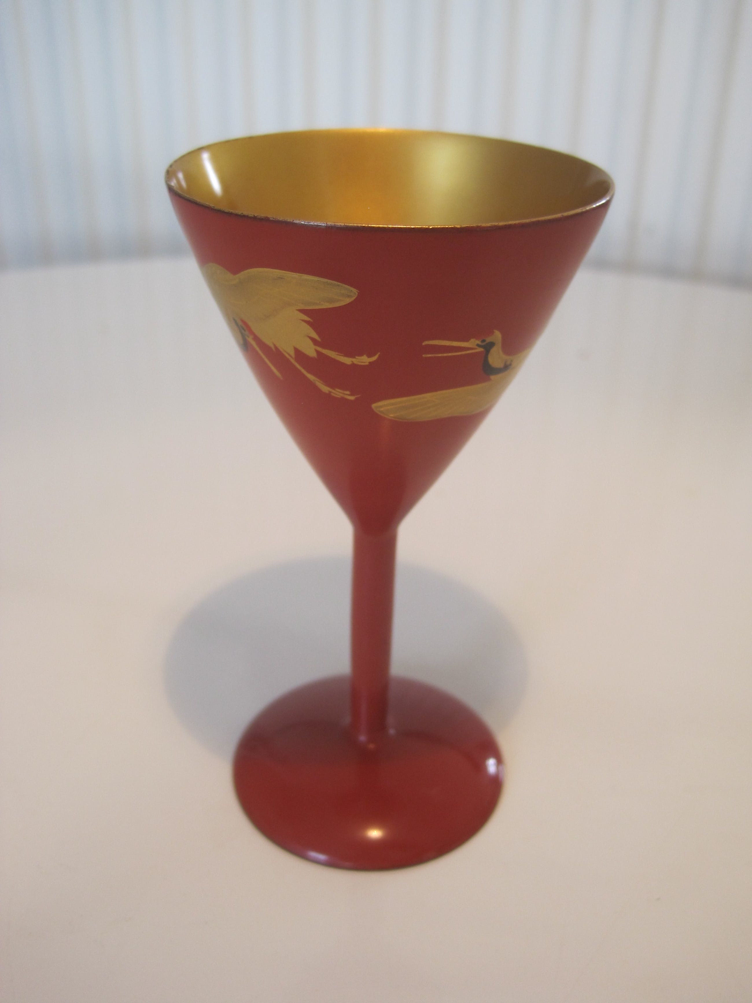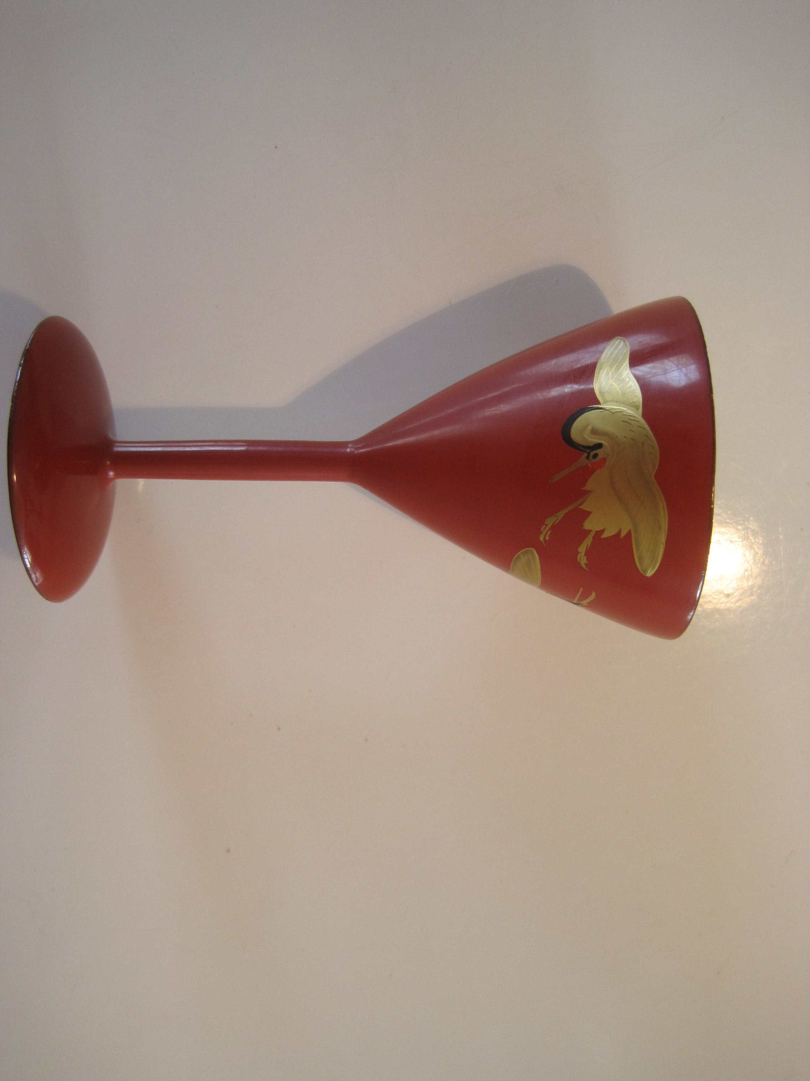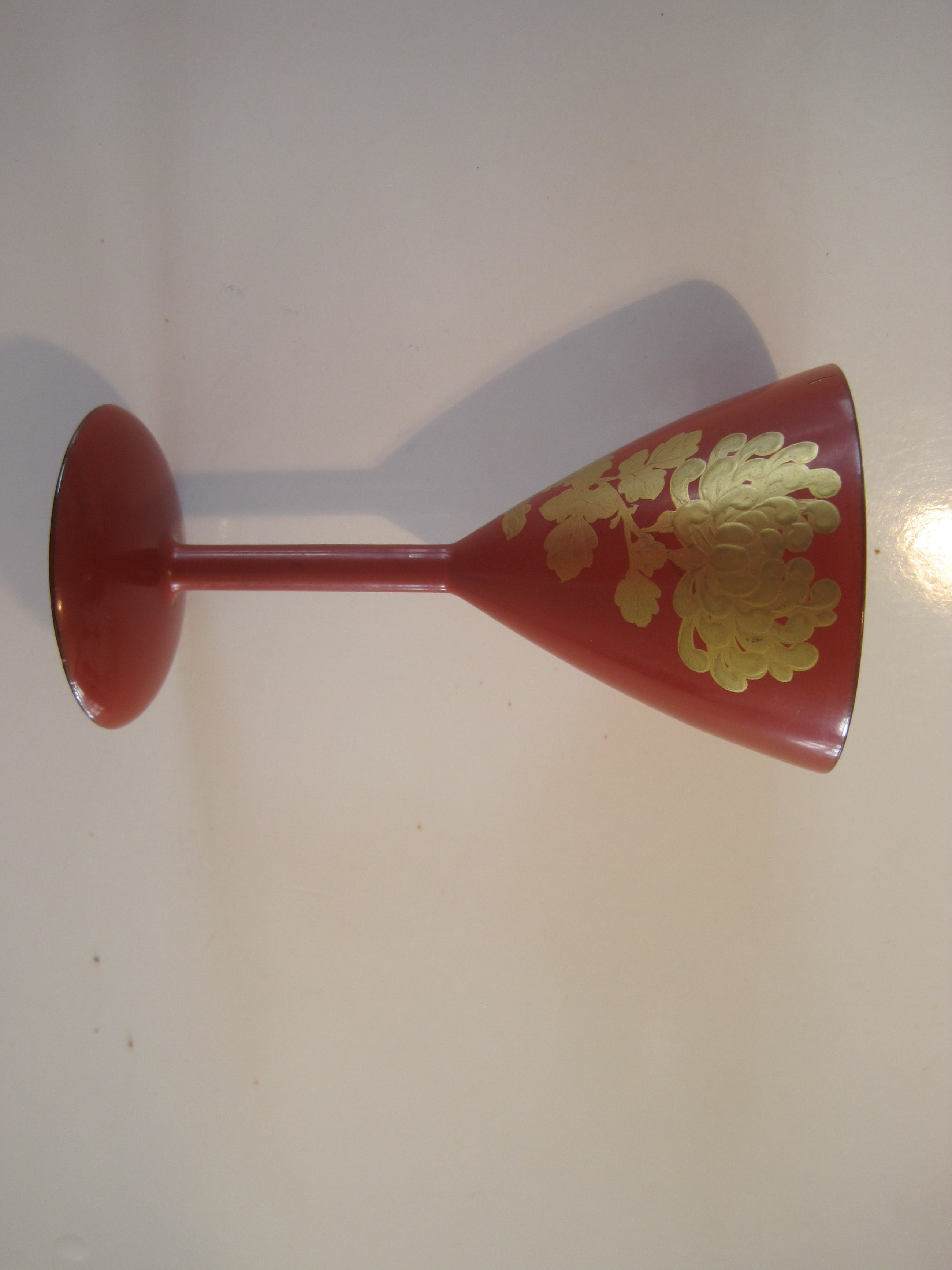Rood gelakte bekertjes. Ze zijn van hout gemaakt, 20ste eeuw en heel
