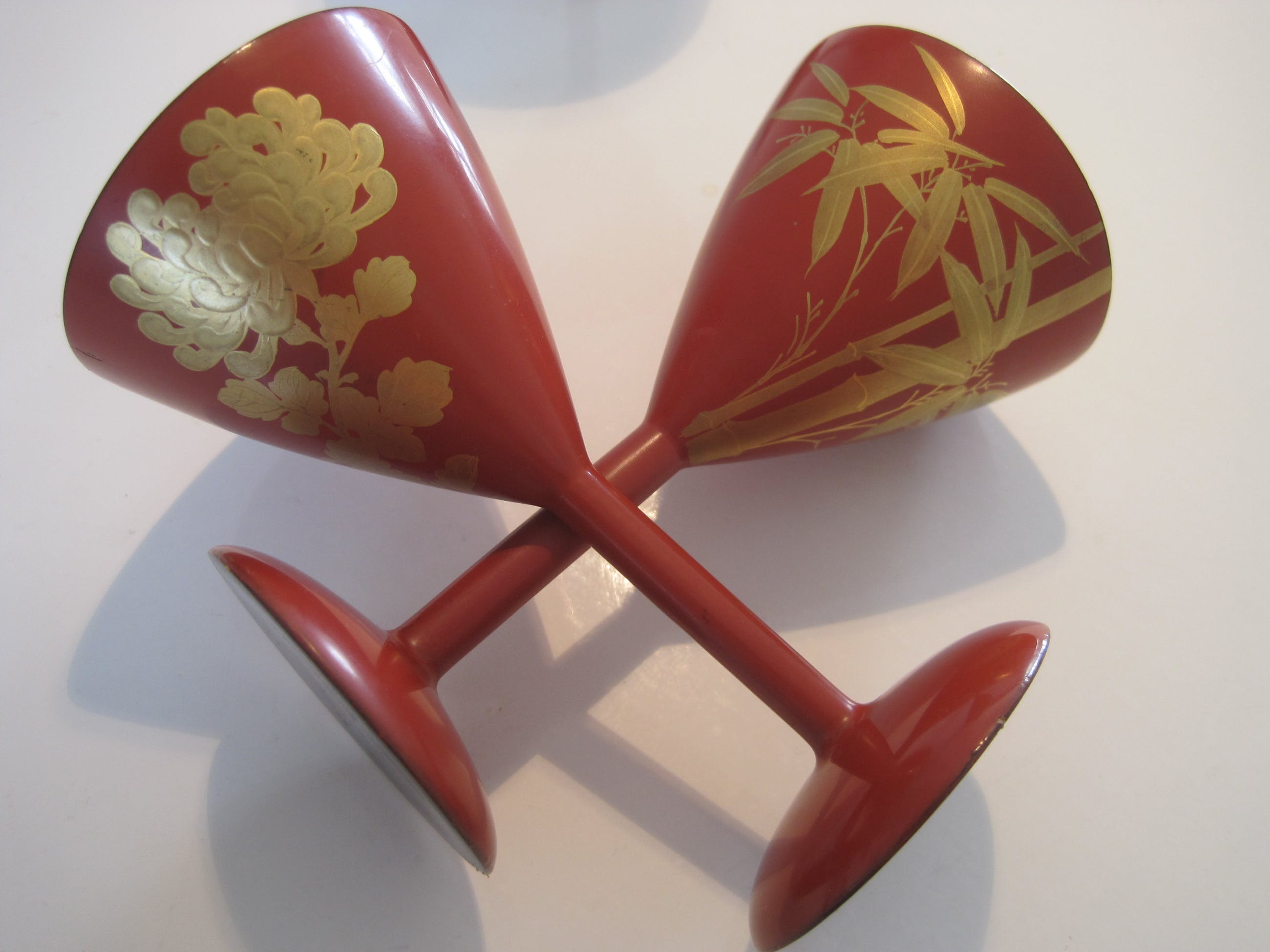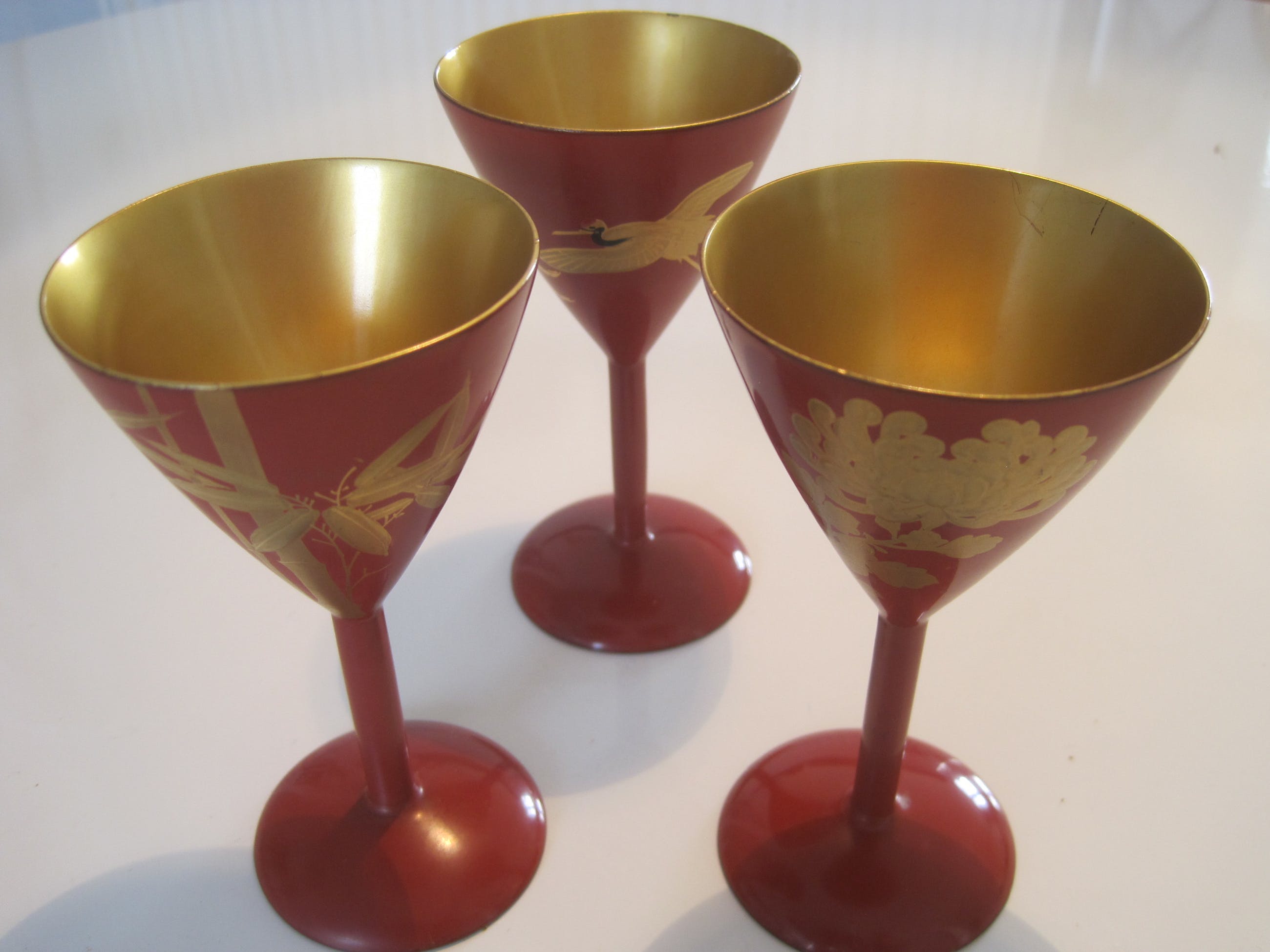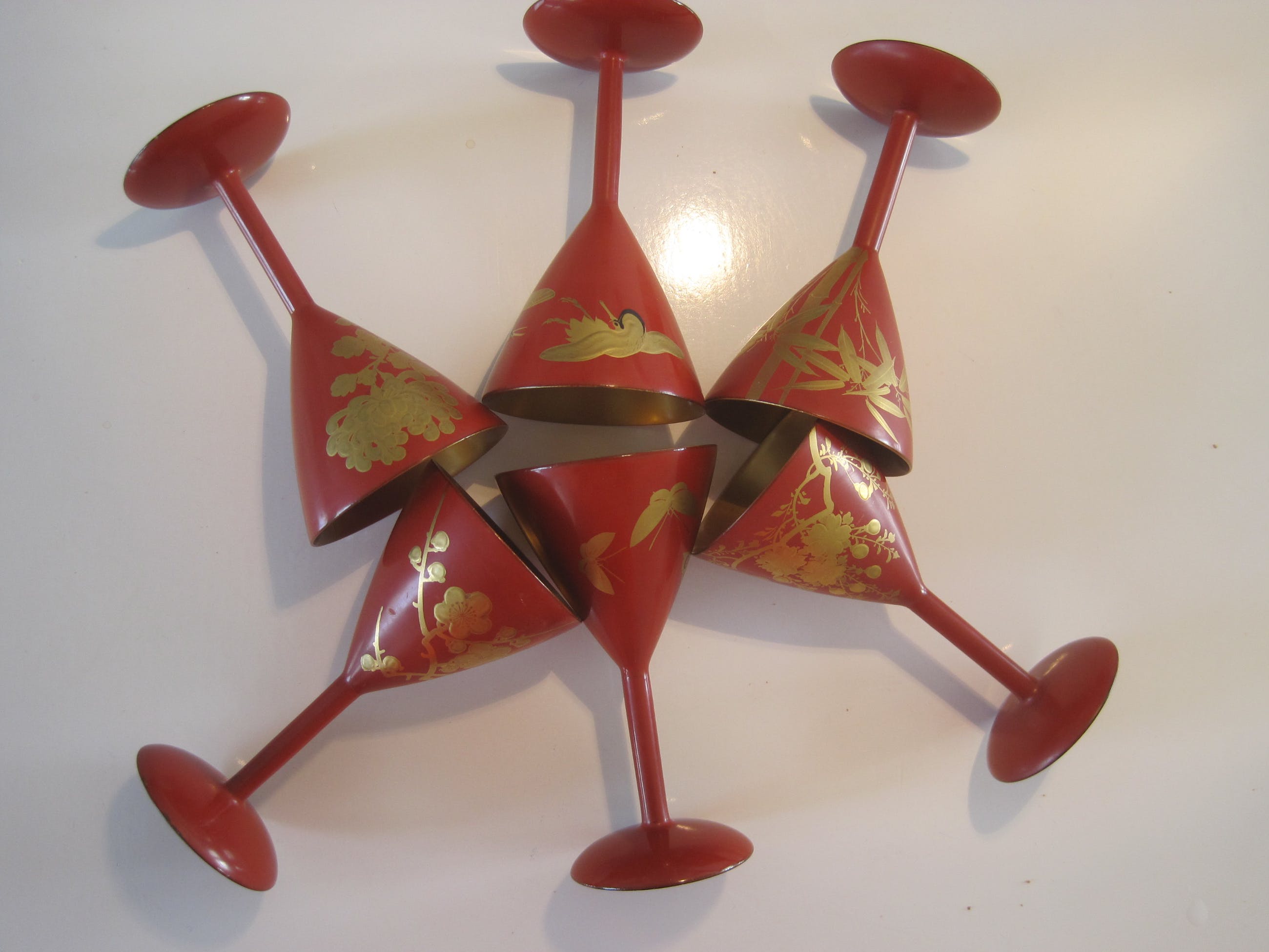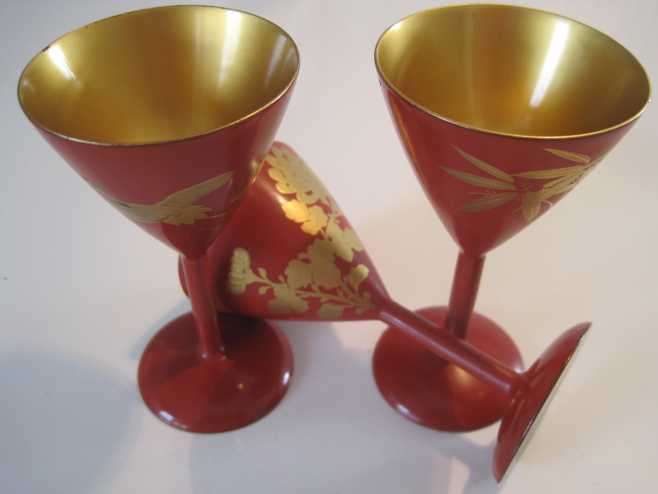 thin. 20th century. Each cup is decorated in a gold Makie lacquer
