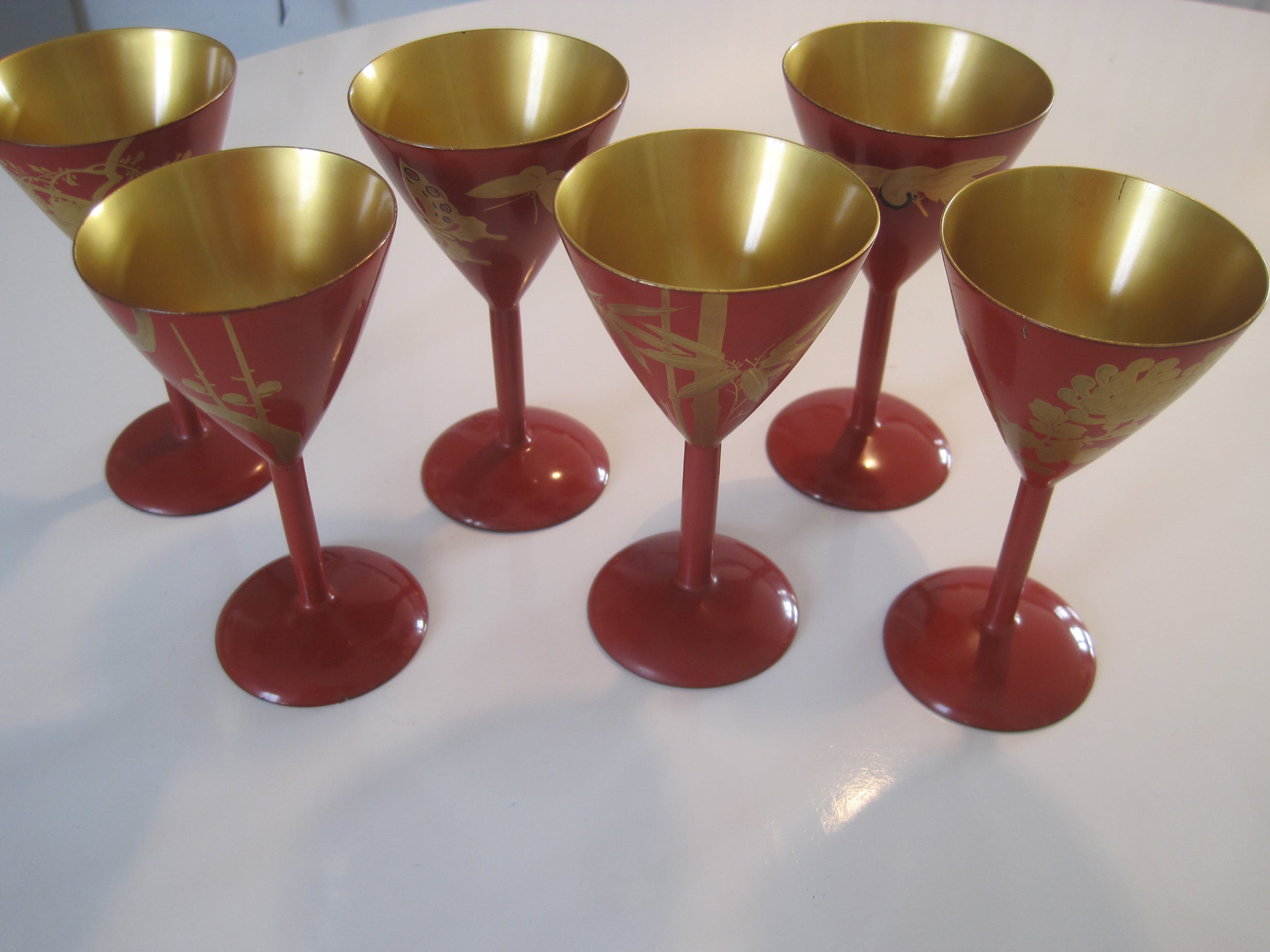 Iedere beker is gedecoreerd met gouden Makie lak en met de hand beschilderd. Zes verschillende