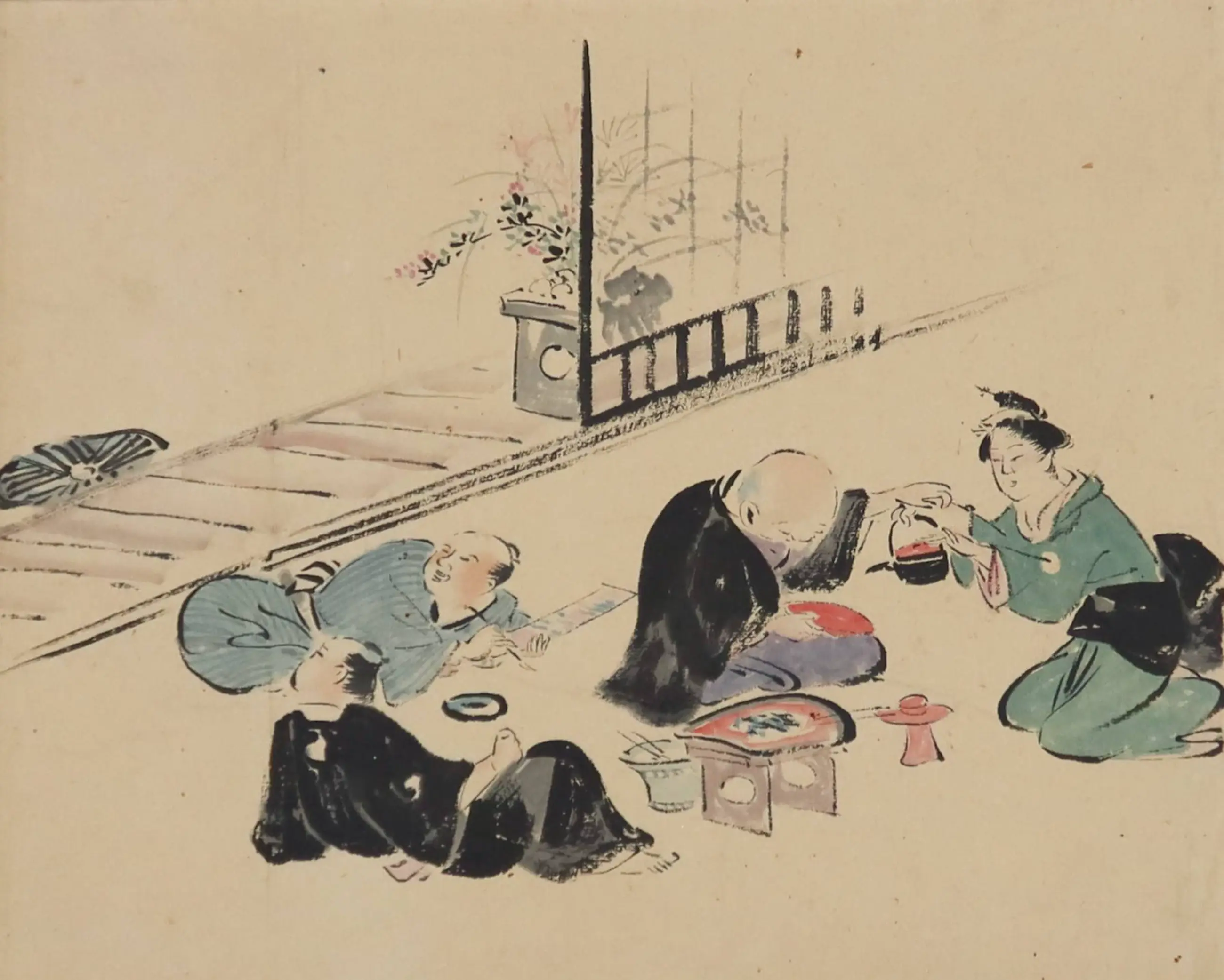 "Fuzoku zu" (風俗図) is een term die wordt gebruikt in de context van Japanse prenten en kunstwerken om afbeeldingen te beschrijven die scènes uit het dagelijks leven of de gewoonten en gebruiken van mensen uit die tijd weergeven. Deze afbeeldingen kunnen variëren van afbeeldingen van marktplaatsen en festivals tot portretten van mensen in hun dagelijkse activiteiten. Fuzoku zu kan dus verwijzen naar een breed scala aan onderwerpen en scènes in Japanse prenten, afhankelijk van de specifieke context en periode waarin ze zijn gemaakt.