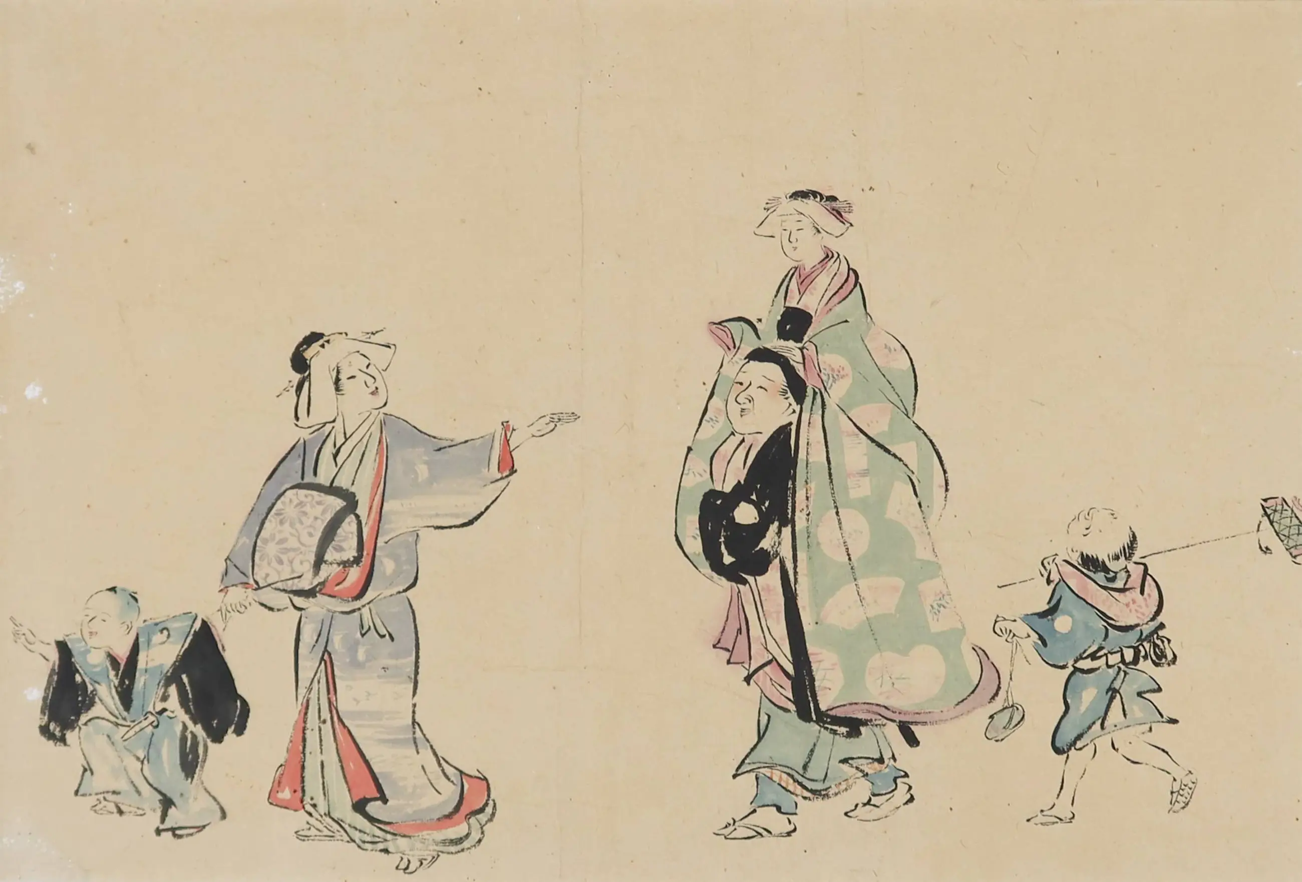 "Fuzoku zu" (風俗図) is een term die wordt gebruikt in de context van Japanse prenten en kunstwerken om afbeeldingen te beschrijven die scènes uit het dagelijks leven of de gewoonten en gebruiken van mensen uit die tijd weergeven. Deze afbeeldingen kunnen variëren van afbeeldingen van marktplaatsen en festivals tot portretten van mensen in hun dagelijkse activiteiten. Fuzoku zu kan dus verwijzen naar een breed scala aan onderwerpen en scènes in Japanse prenten, afhankelijk van de specifieke context en periode waarin ze zijn gemaakt.