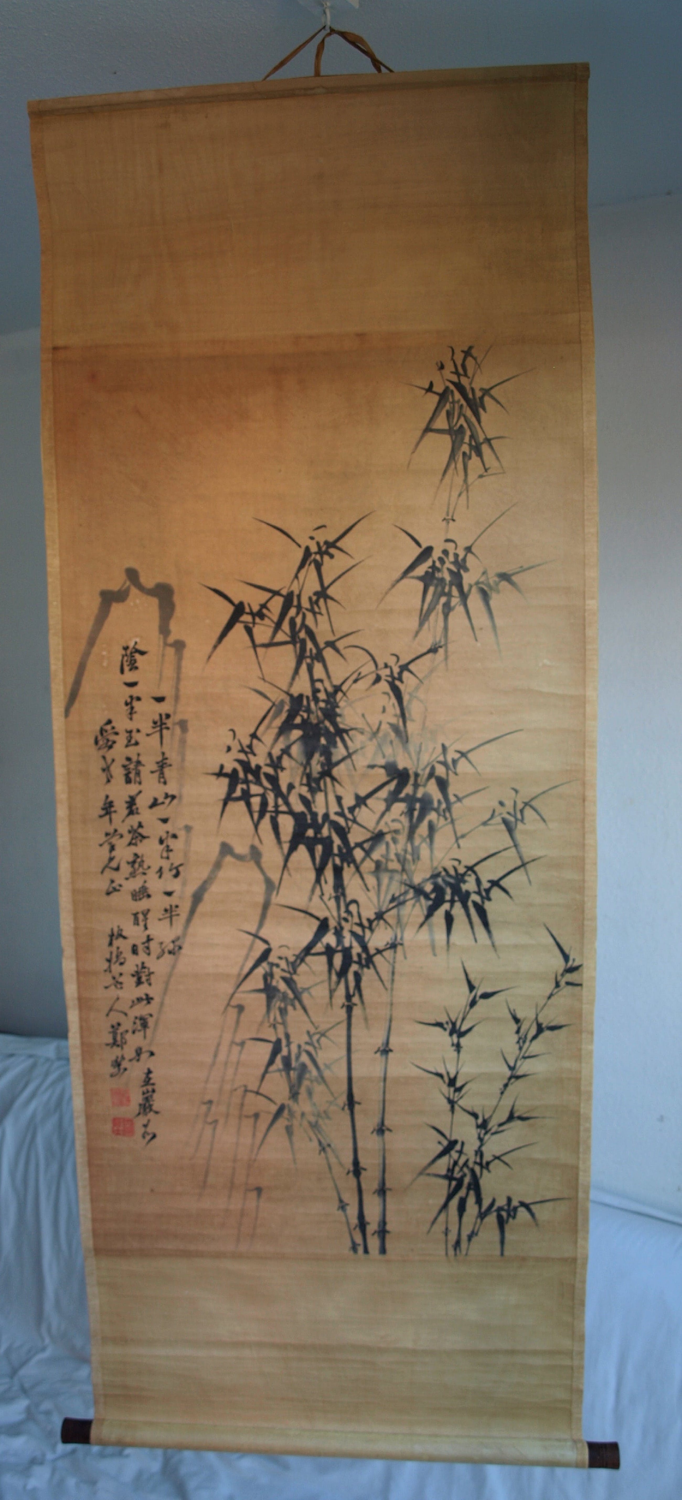 -Een scroll gemaakt door een Japanse (of Chinese?) kunstenaar, met een voorstelling van een rietplant.