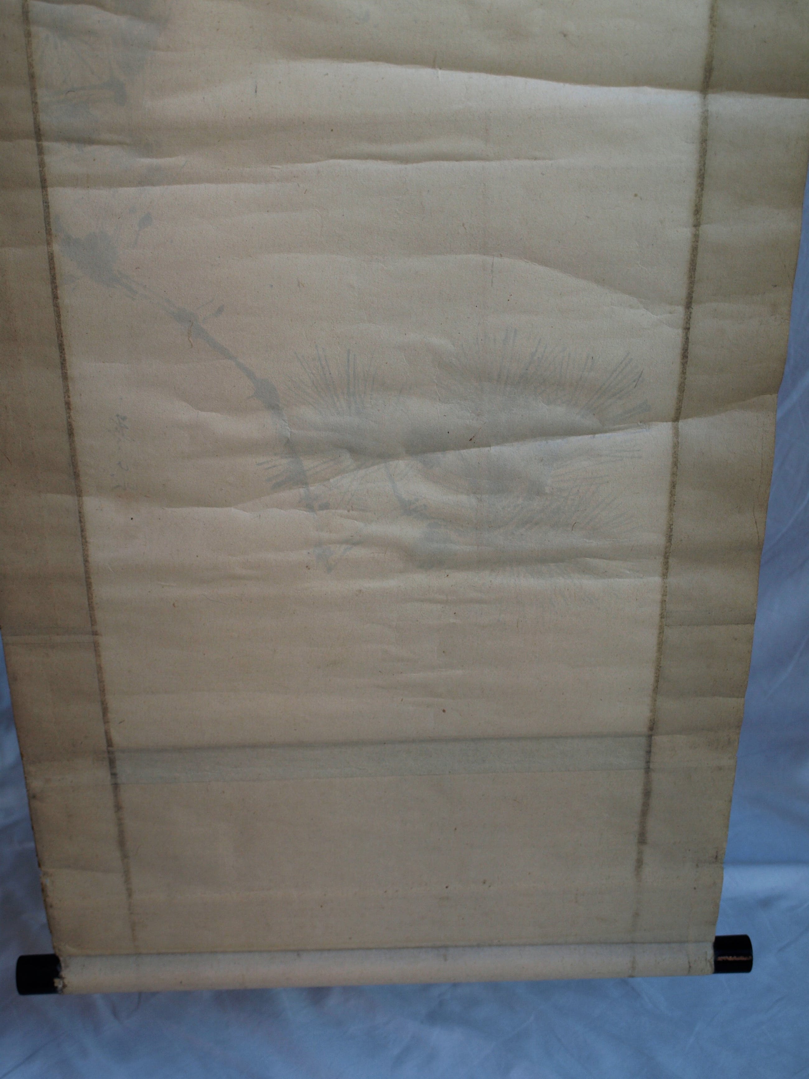-Aquarelverf en inkt op papier, opgerold en bevestigd aan een houten stok (‘jikugi’).