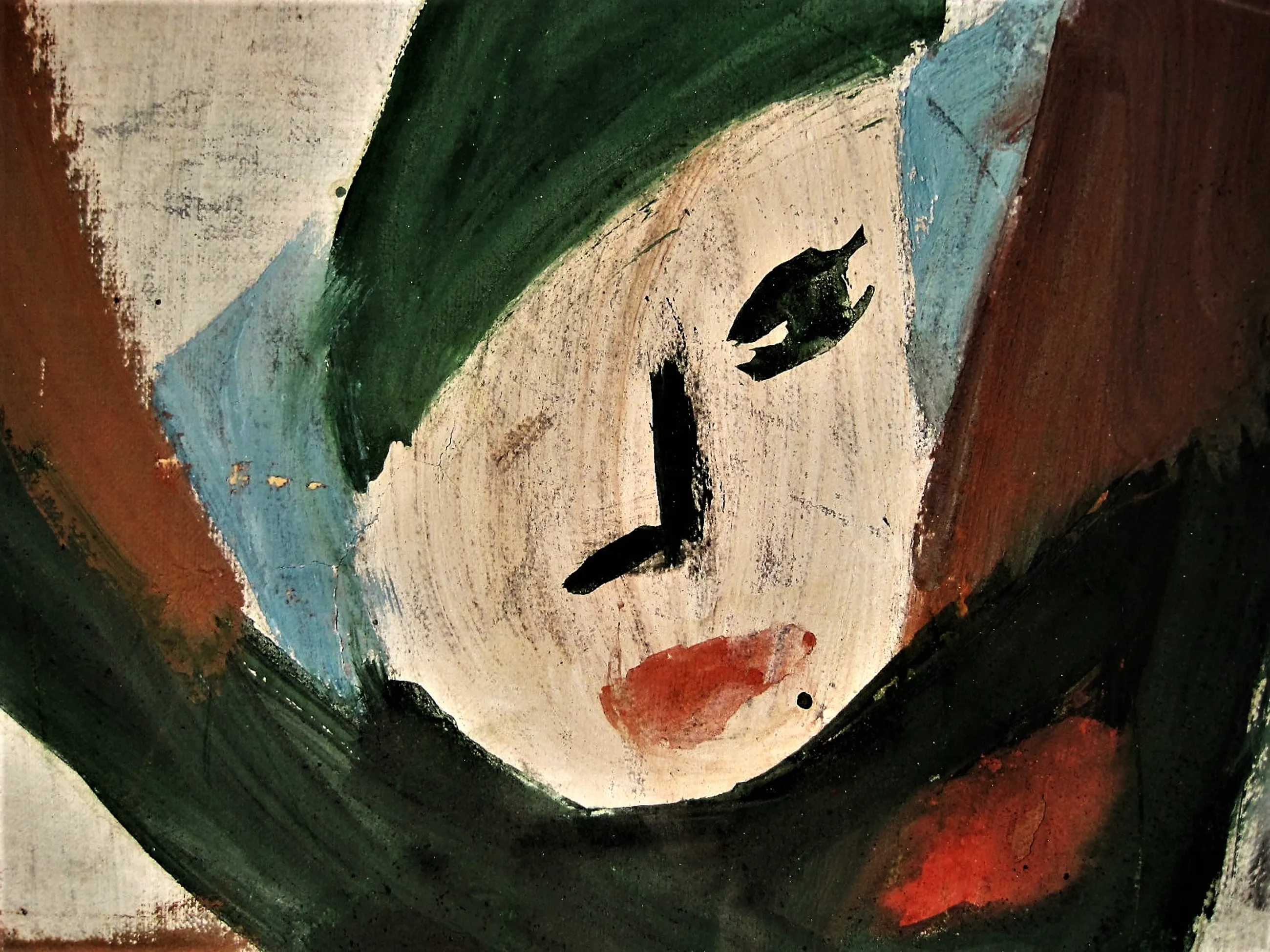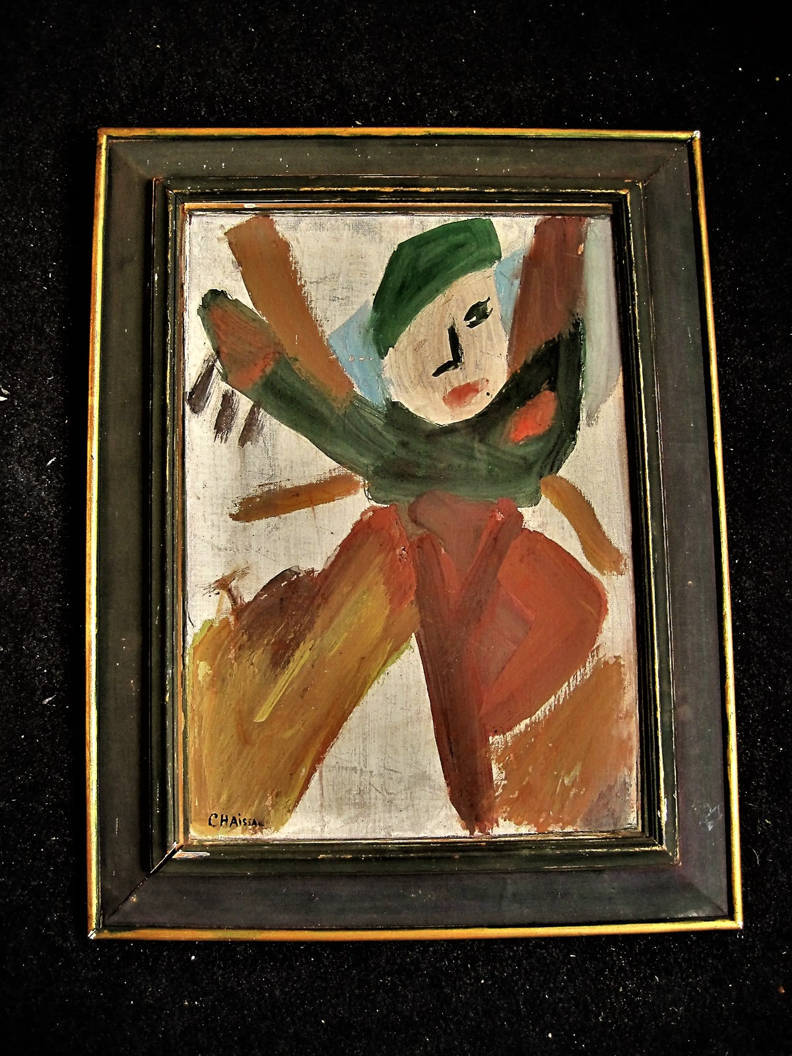enkele beschadigingen (met name aan de randen van het doek). Moet ook opnieuw worden gevernist. De originele jaren 50 lijst vertoont ook beschadigingen.