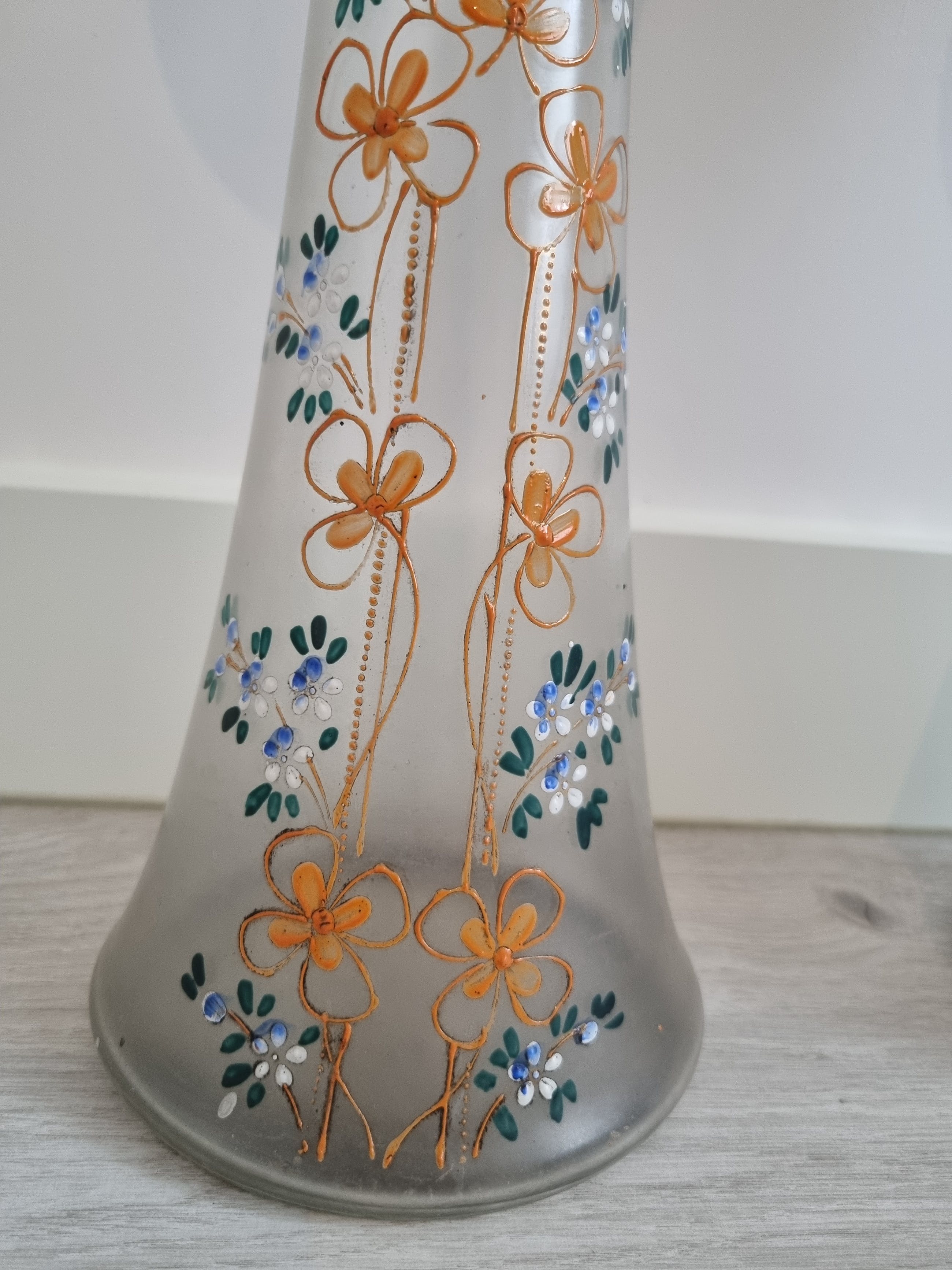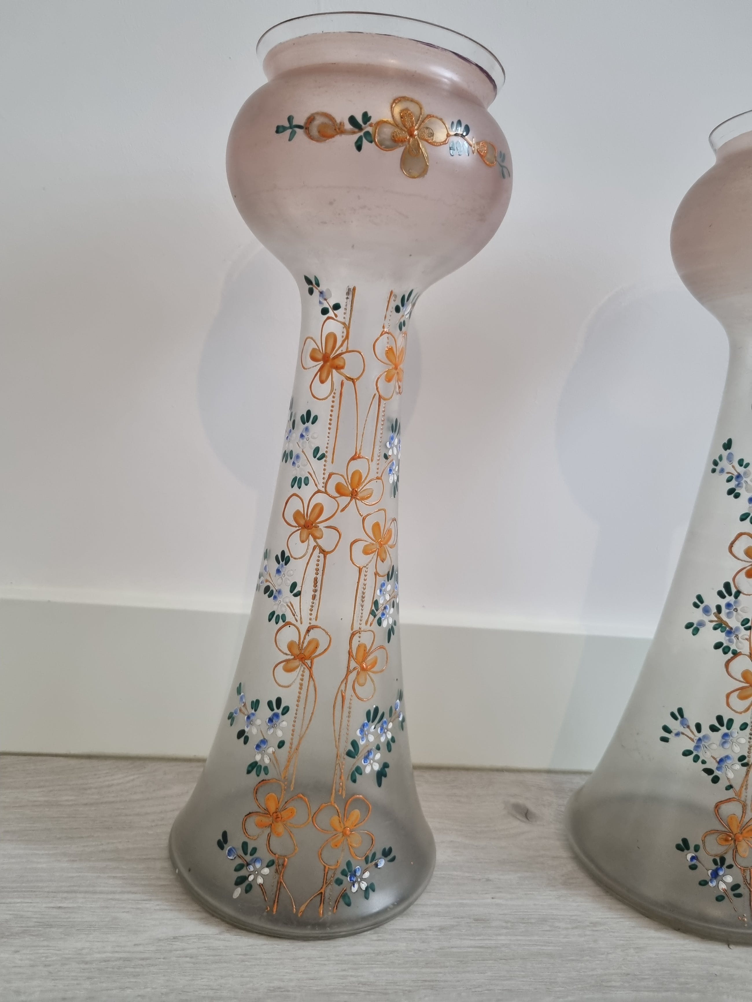 Paar jeugdenvazen geëmailleerd 1910-1920 Franse stijl Vazen zijn precies getekend of gemarkeerd onder maar onleesbaar Vazen zijn op oude manier gemaakt en je ziet het aan de korreltjes zand onderkant vazen Geen schelvertjes of barsten te zien Vazen worden heel goed ingepakt en met traceercode verzonden