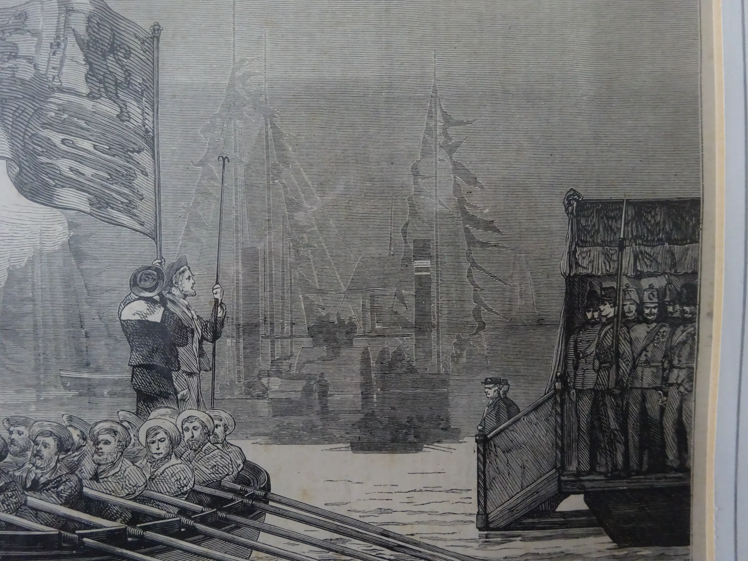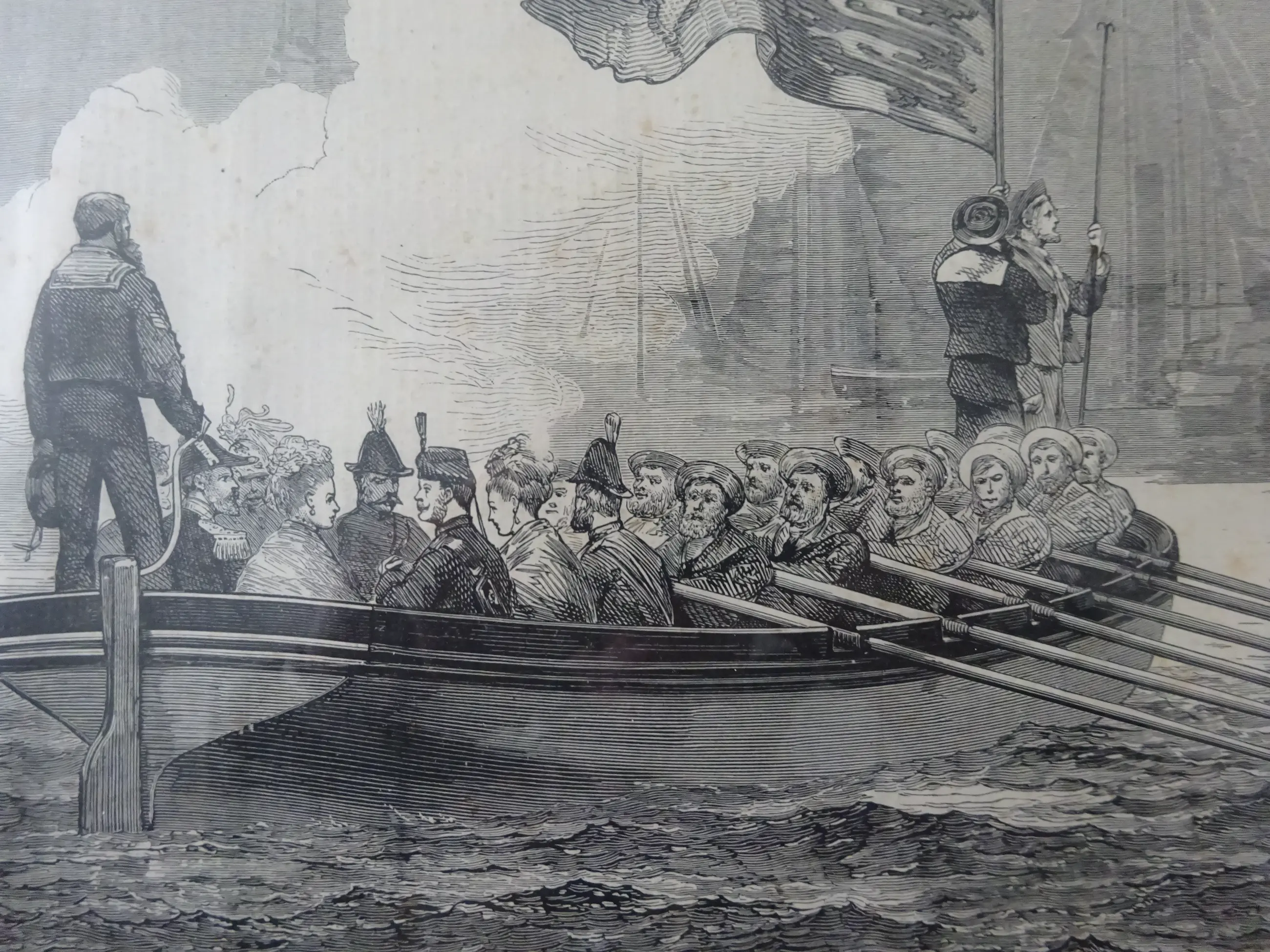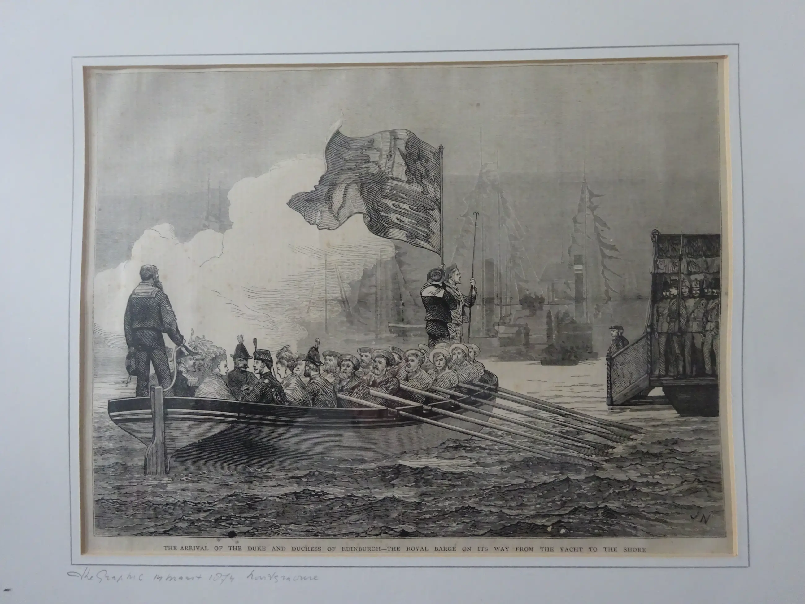 "The arrival of the Duke and Duchess of Edinburgh- The Royal Barge on the way from the Yacht to the shore"