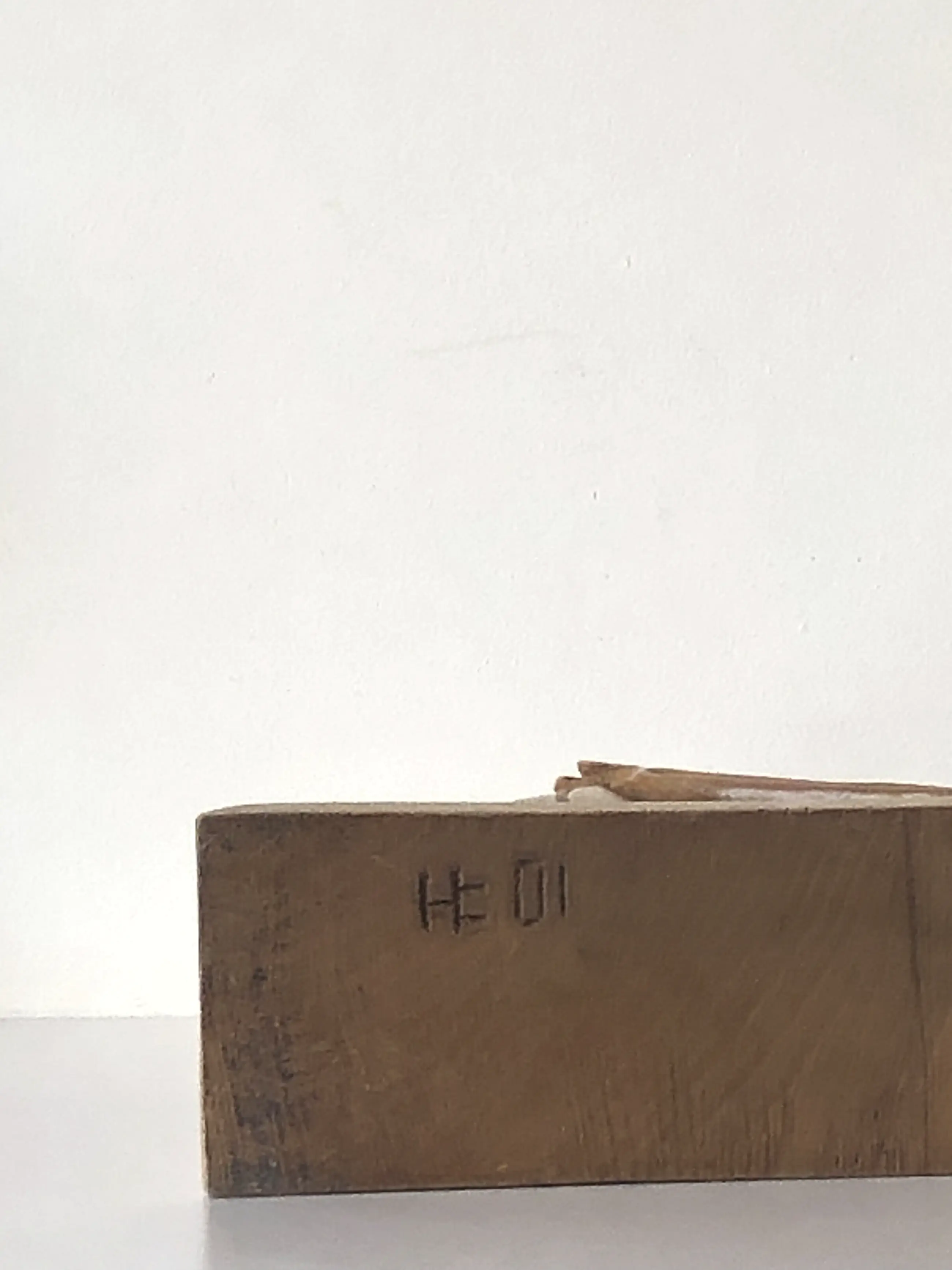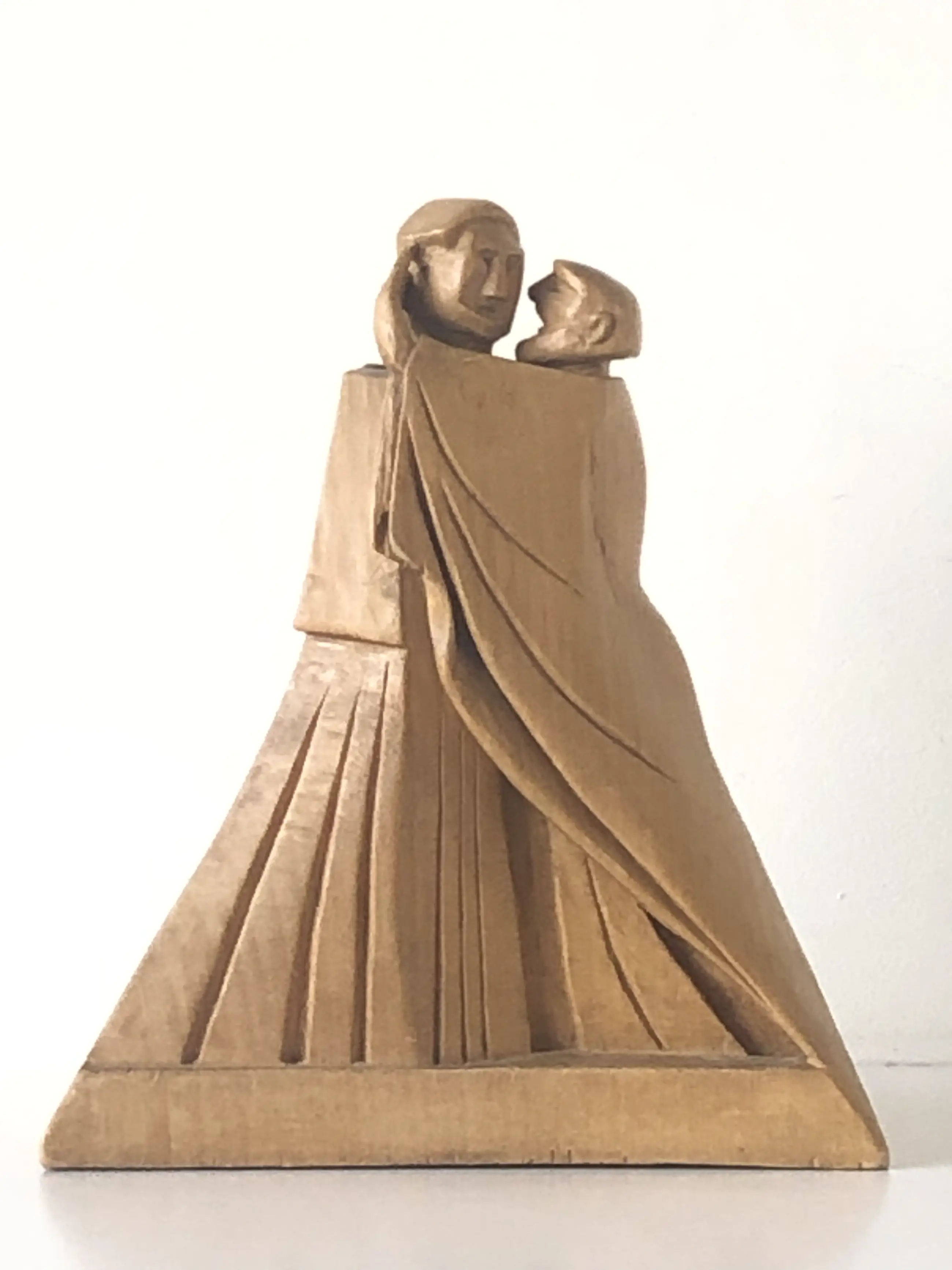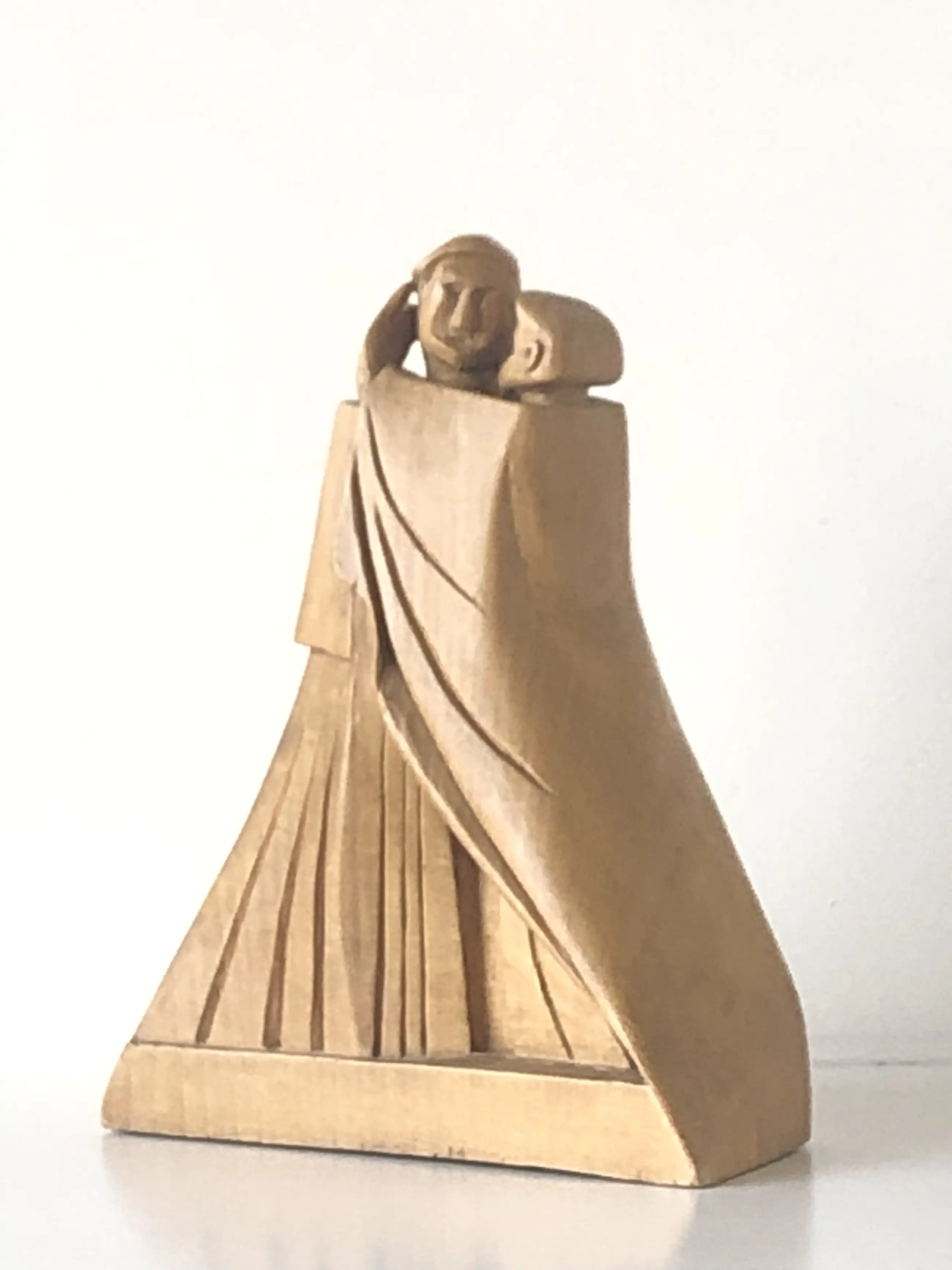 Knap gesneden houten beeld geinspireerd op de Judaskus van Josep Maria Subirachs uit 1883, Sagrada Familia Barcelona. Gesigneerd HC en gedateerd 01 zo lijkt het.. (1901/2001?)