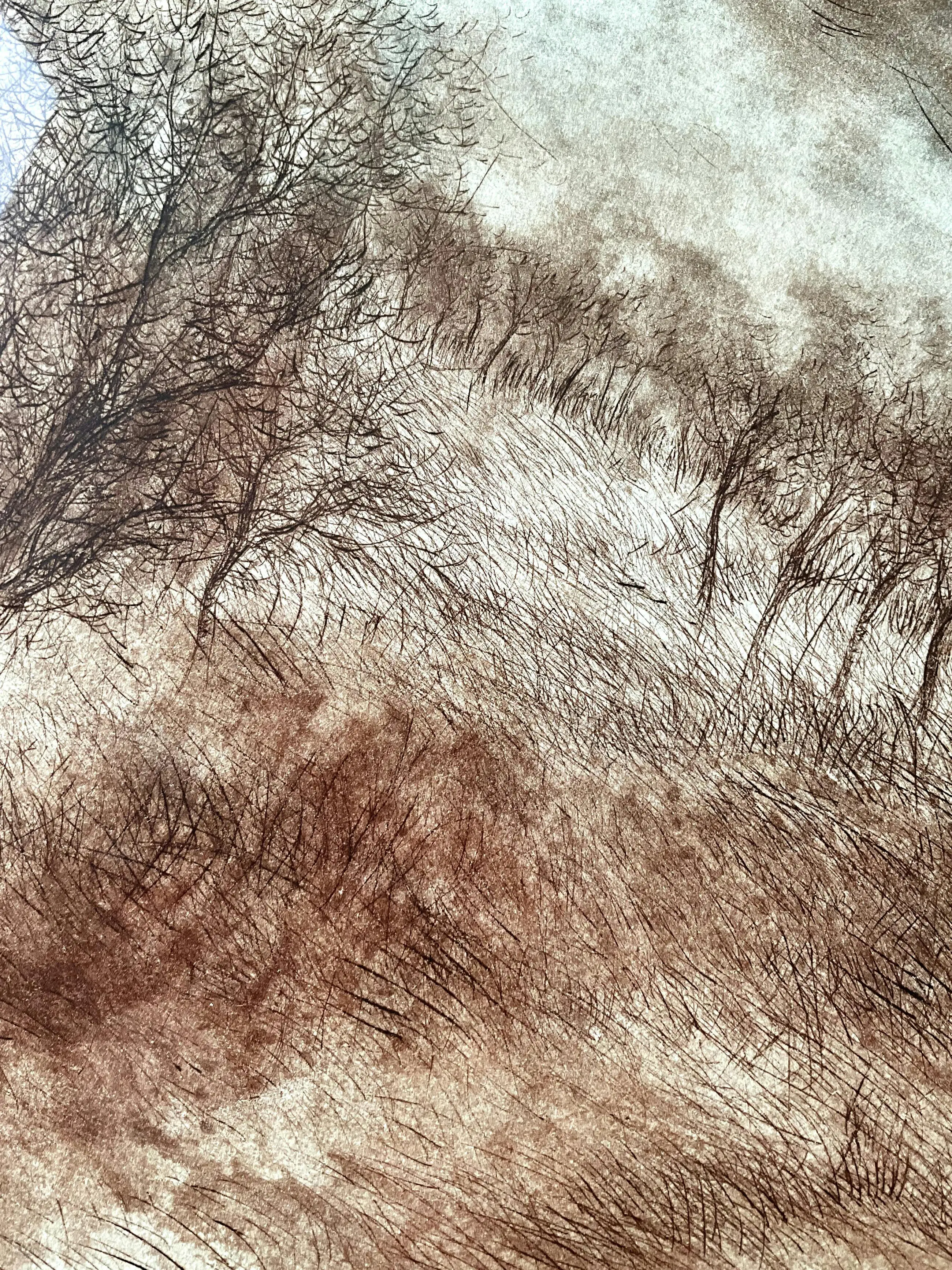 Een aantrekkelijk en ingetogen grafisch werk voor liefhebbers van klassieke etstechnieken en serene landschappen.