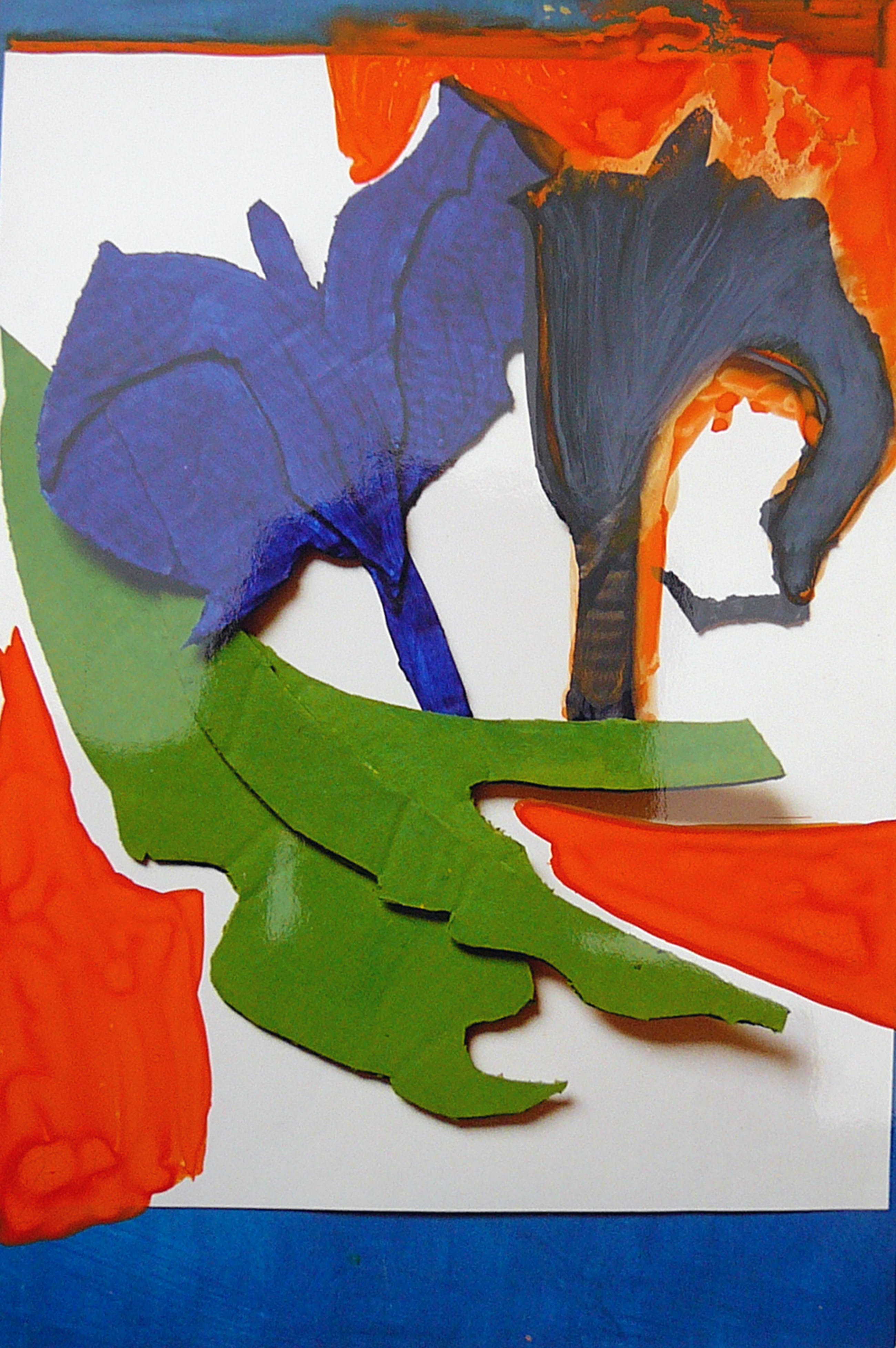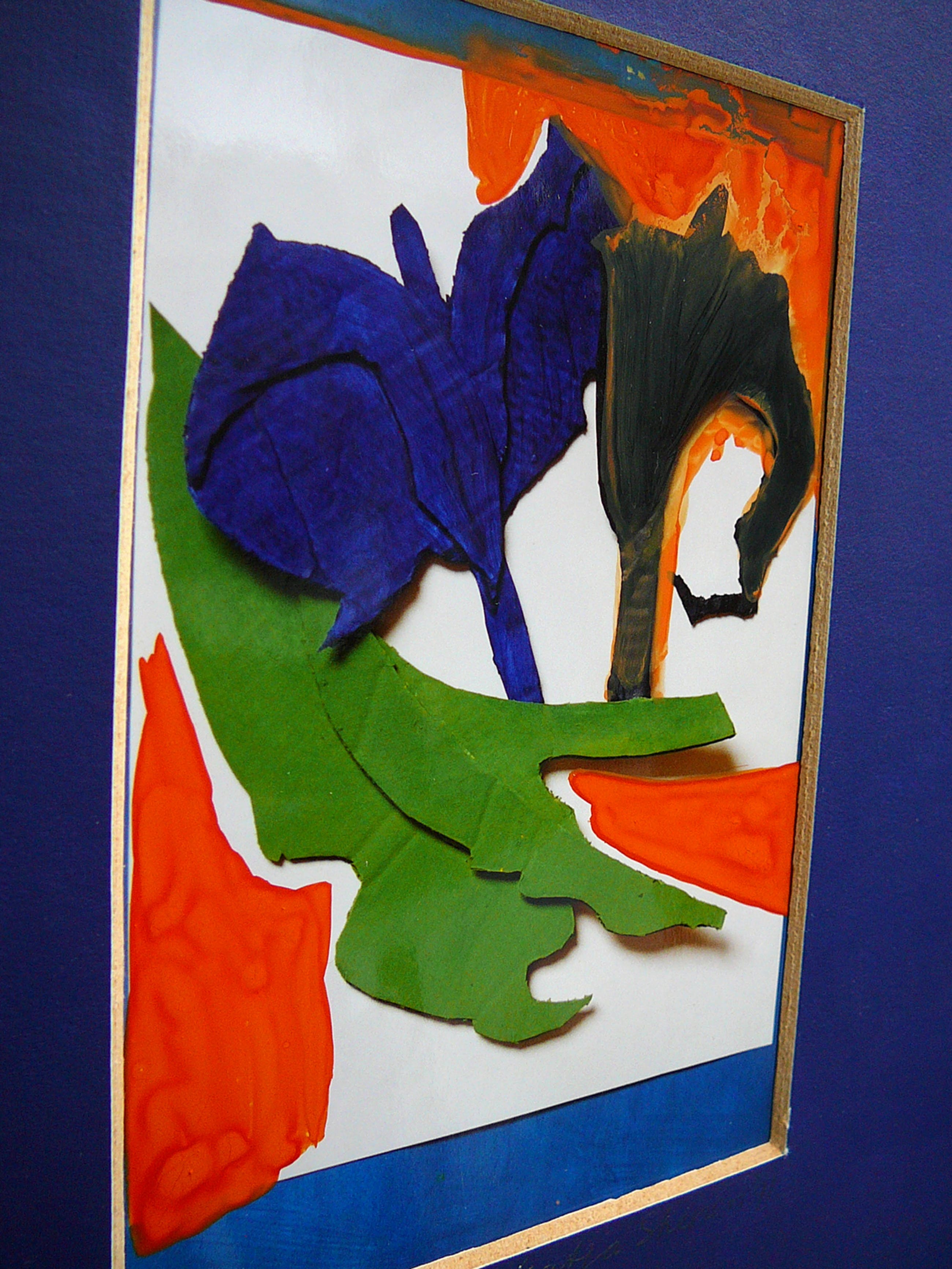Fraai werk in gemengde techniek van de hand van van Katja Stienen, Maastricht 1991. Gelaagdheid geeft een drie dimensionaal effect. In wissellijst achter glas.