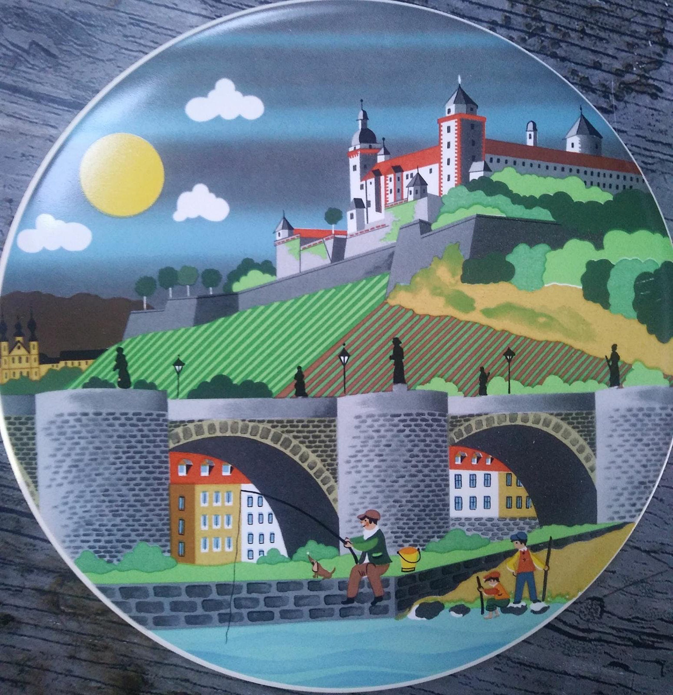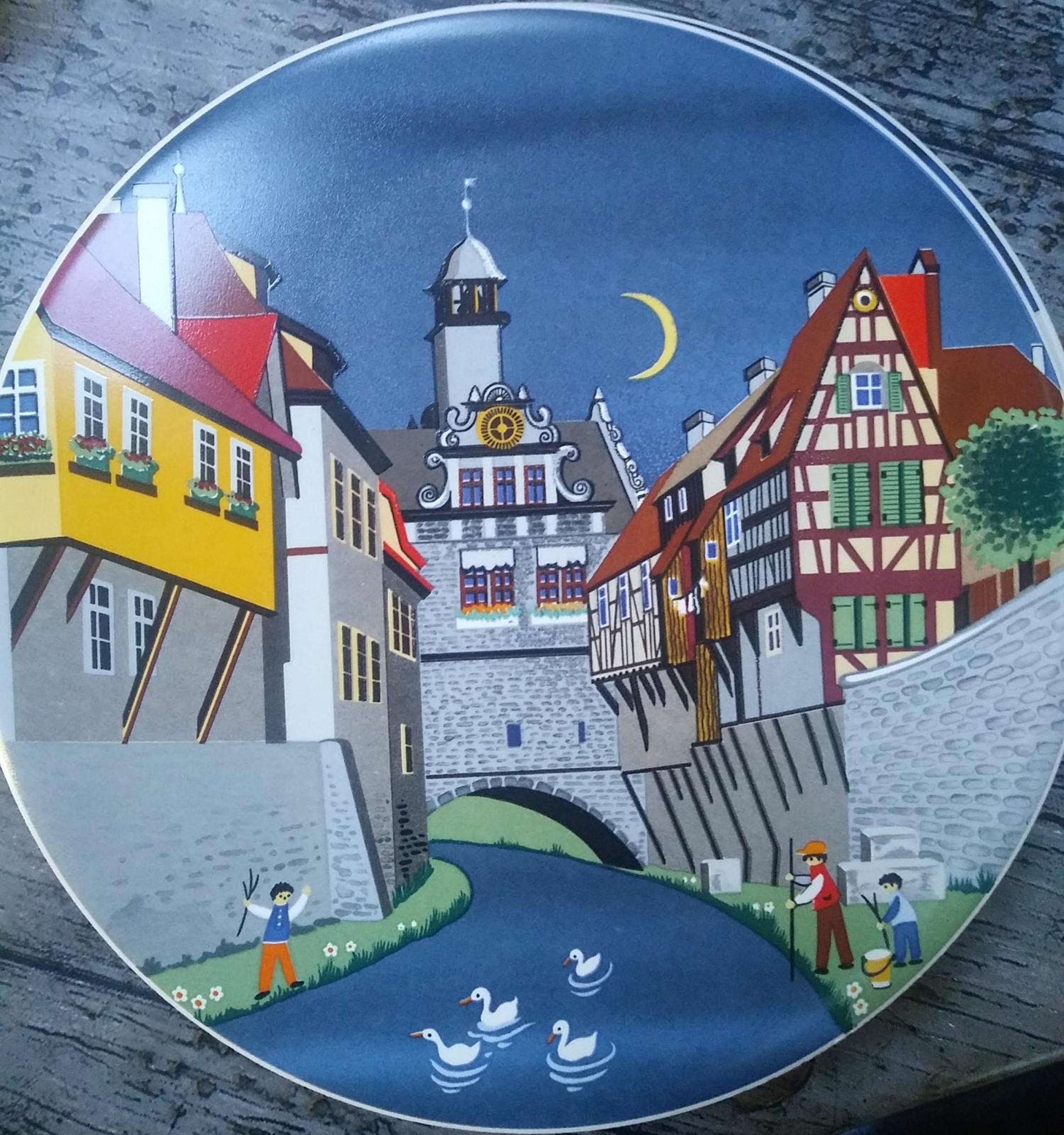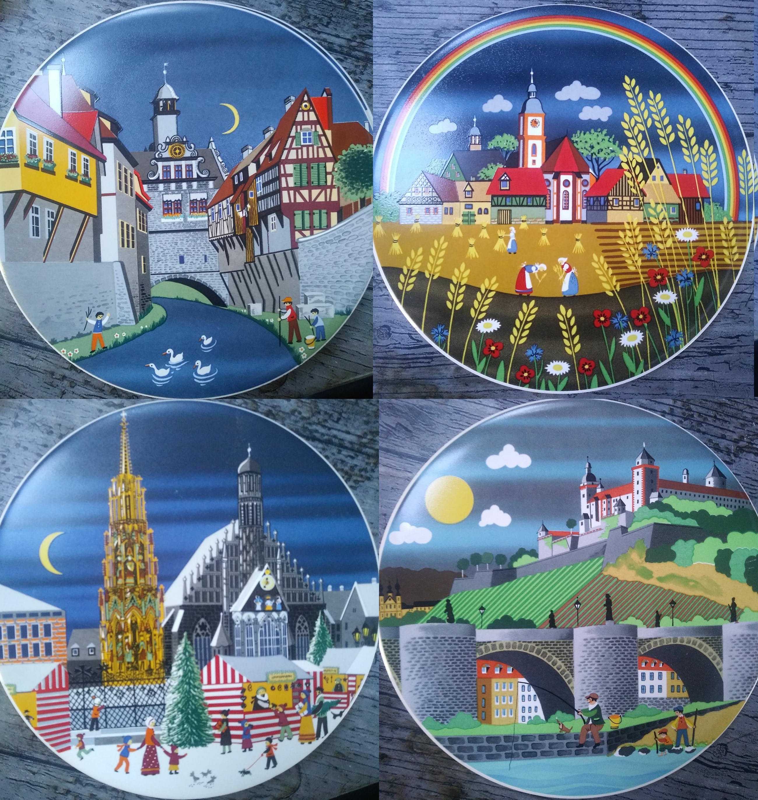 Keramiek circulair verzamelaars werk, zomerlandschap, winterlandschap, grachtgezicht en rivierzicht door H&R johnson Ltd. In perfecte staat