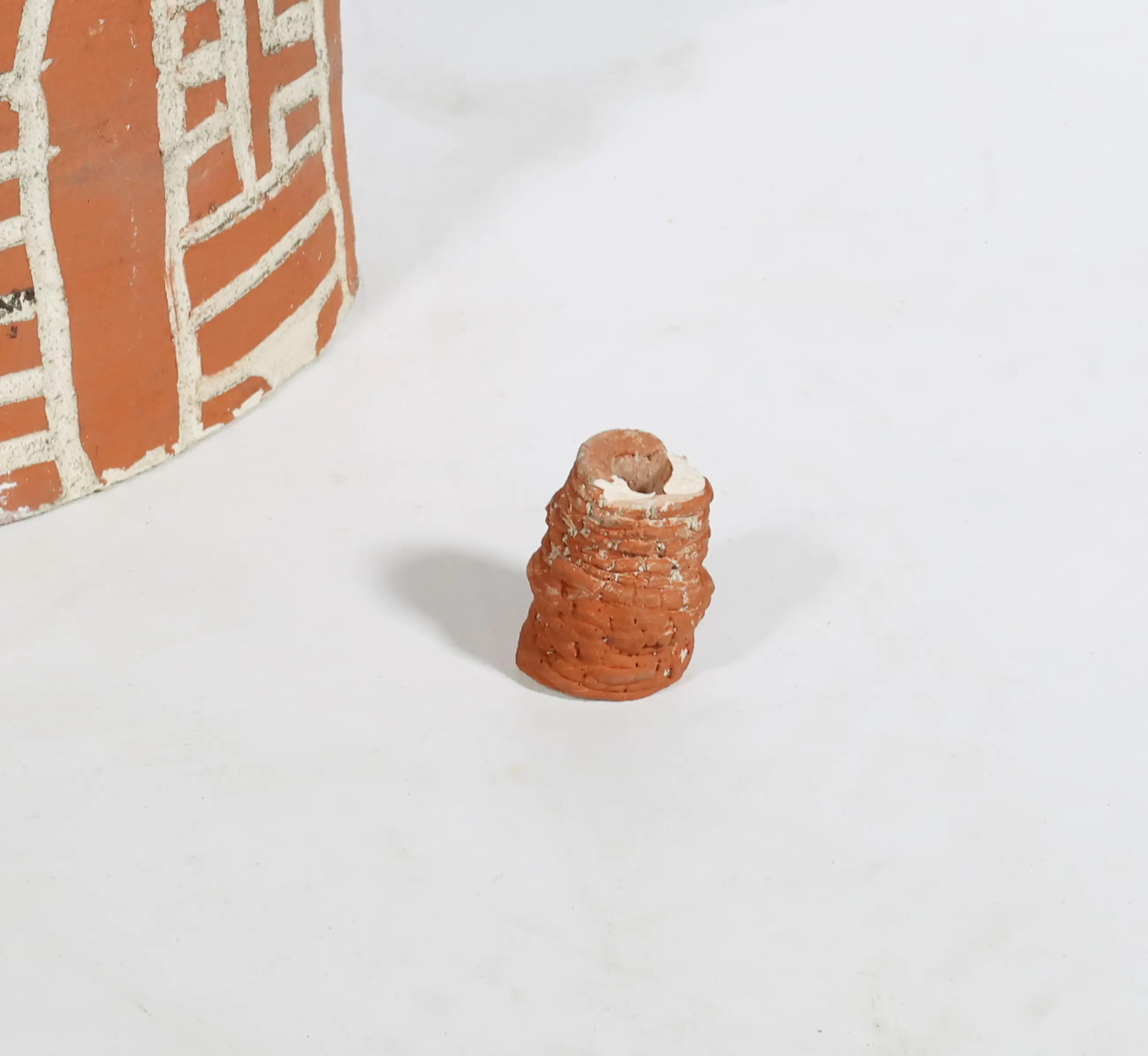| Het werk is in goede staat, echter is het bovenste puntje afgebroken. Daarnaast is de onderzijde vuil. | |