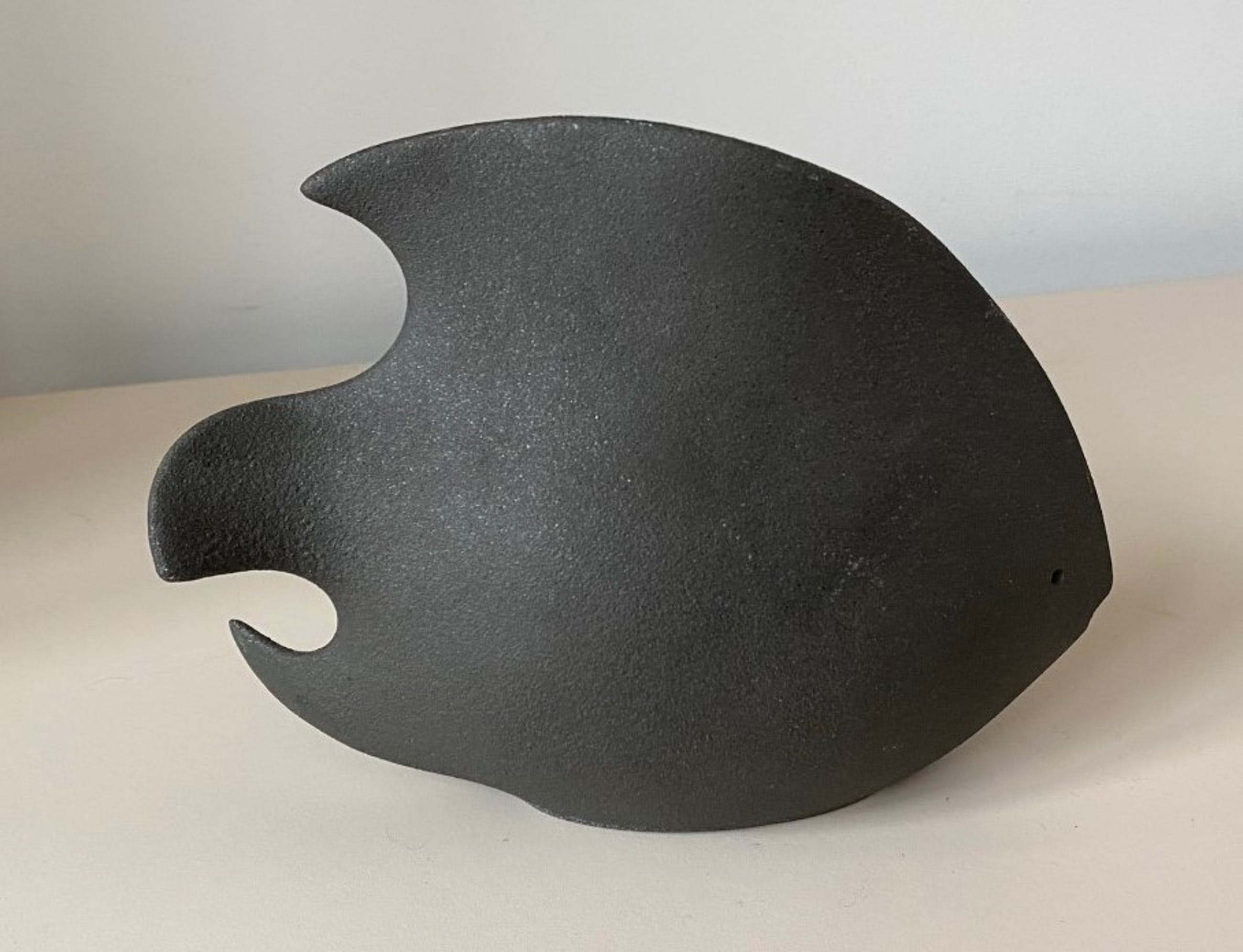 Keramische sculptuur van een vis voorzien van antraciet ruw glazuur ontworpen door Giuseppe Buco voor Lineasette. In perfecte onbeschadigde conditie en aan de zijkant voorzien van een blindmerk.