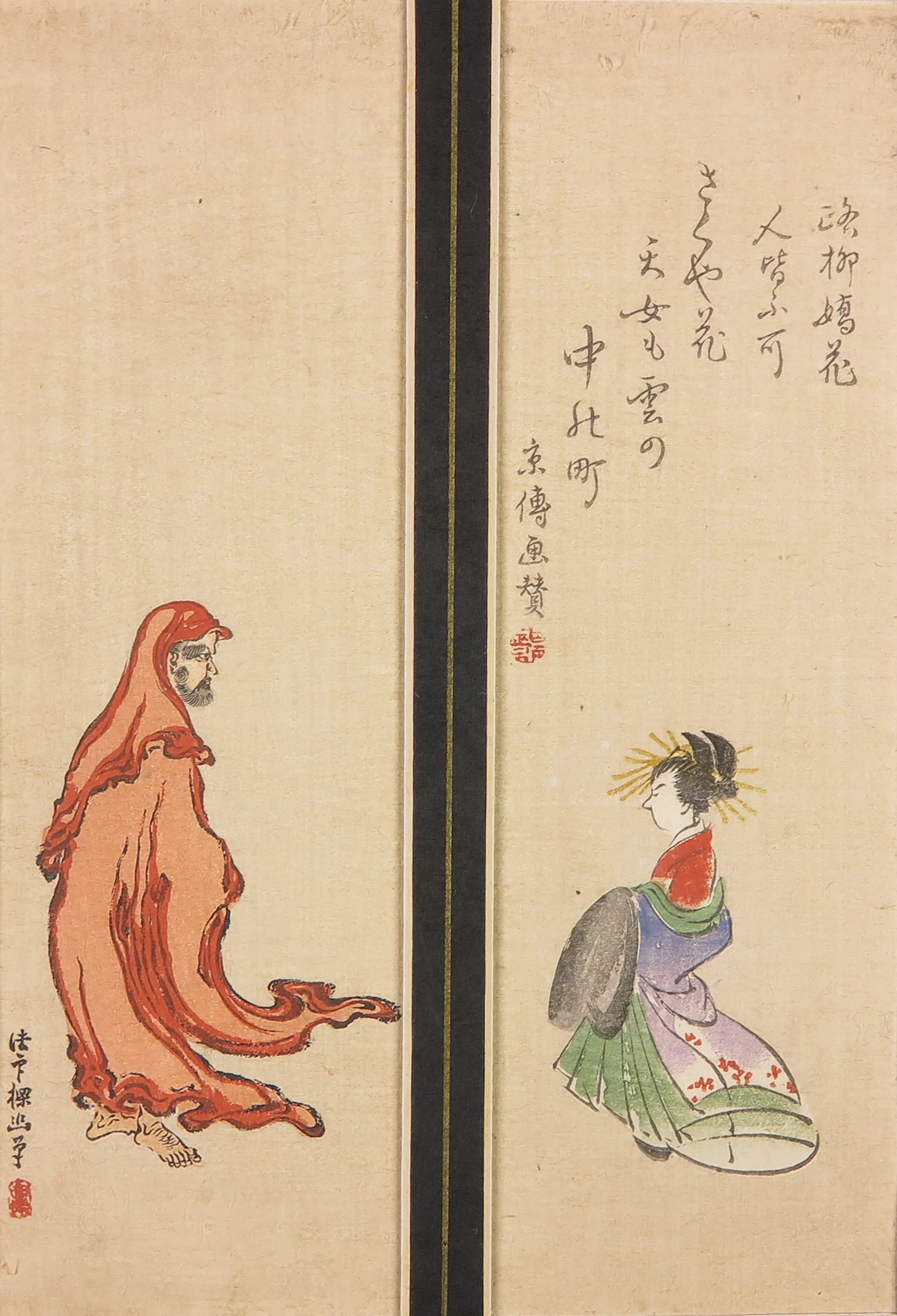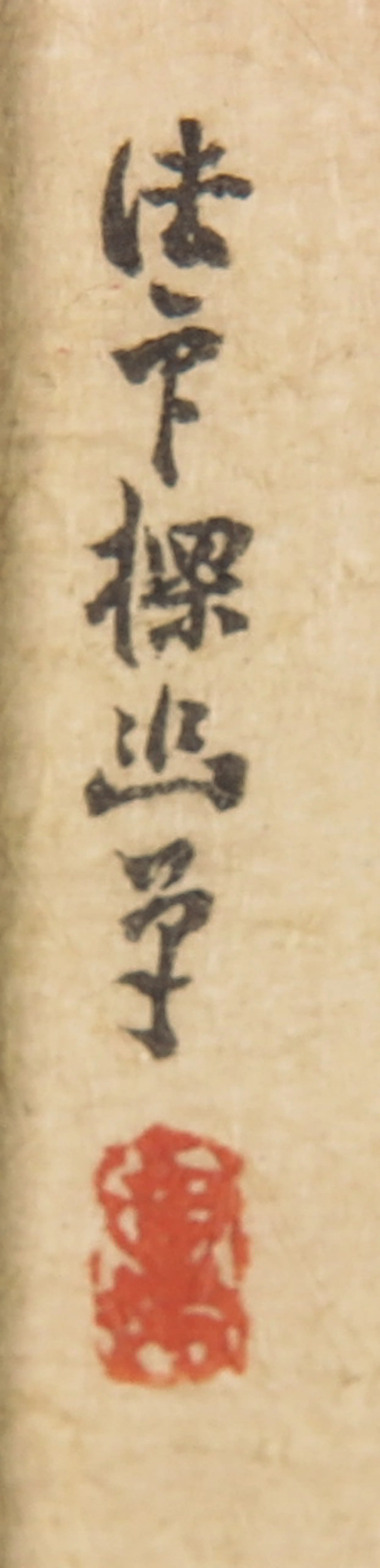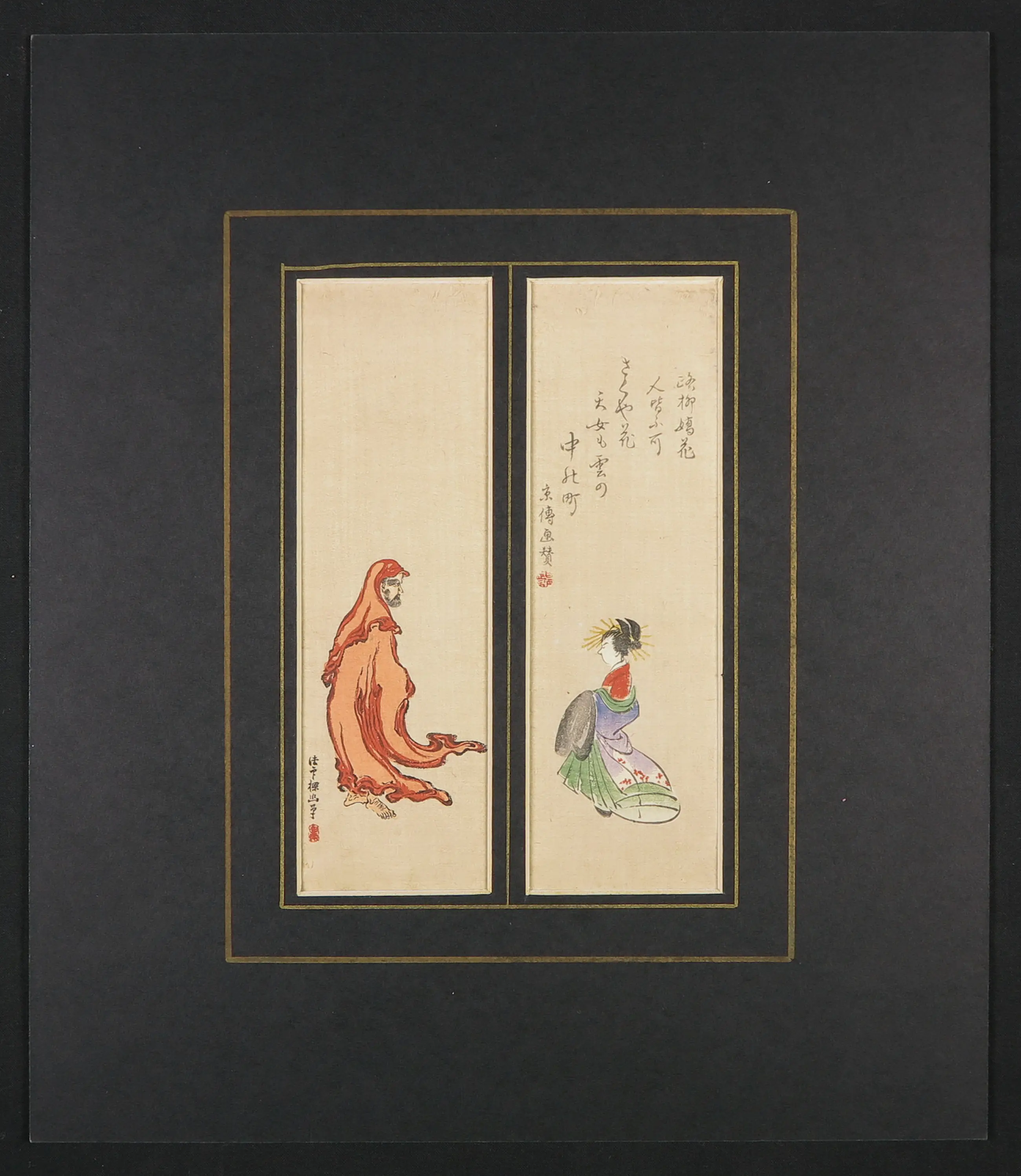 Op basis van aantekening op een vergelijkbaar werk aan achterzijde passe-partout mogelijk Torii Kiyomine.