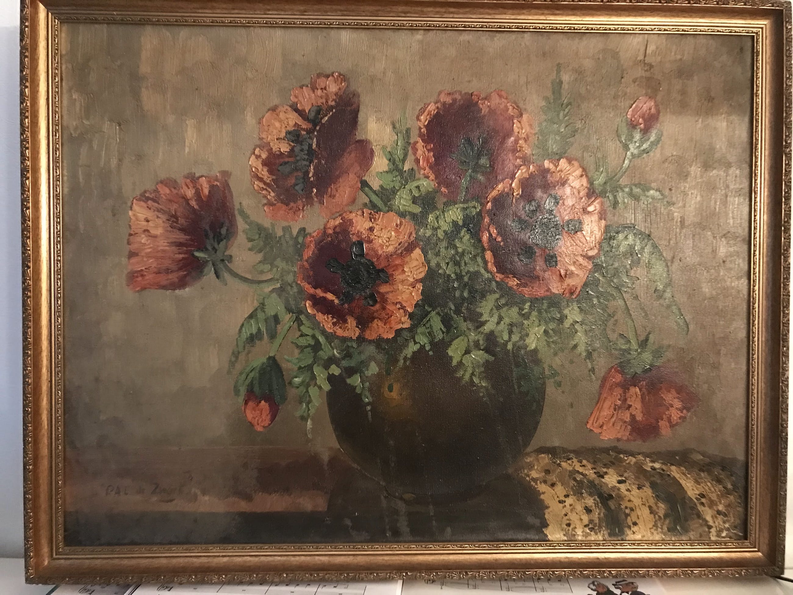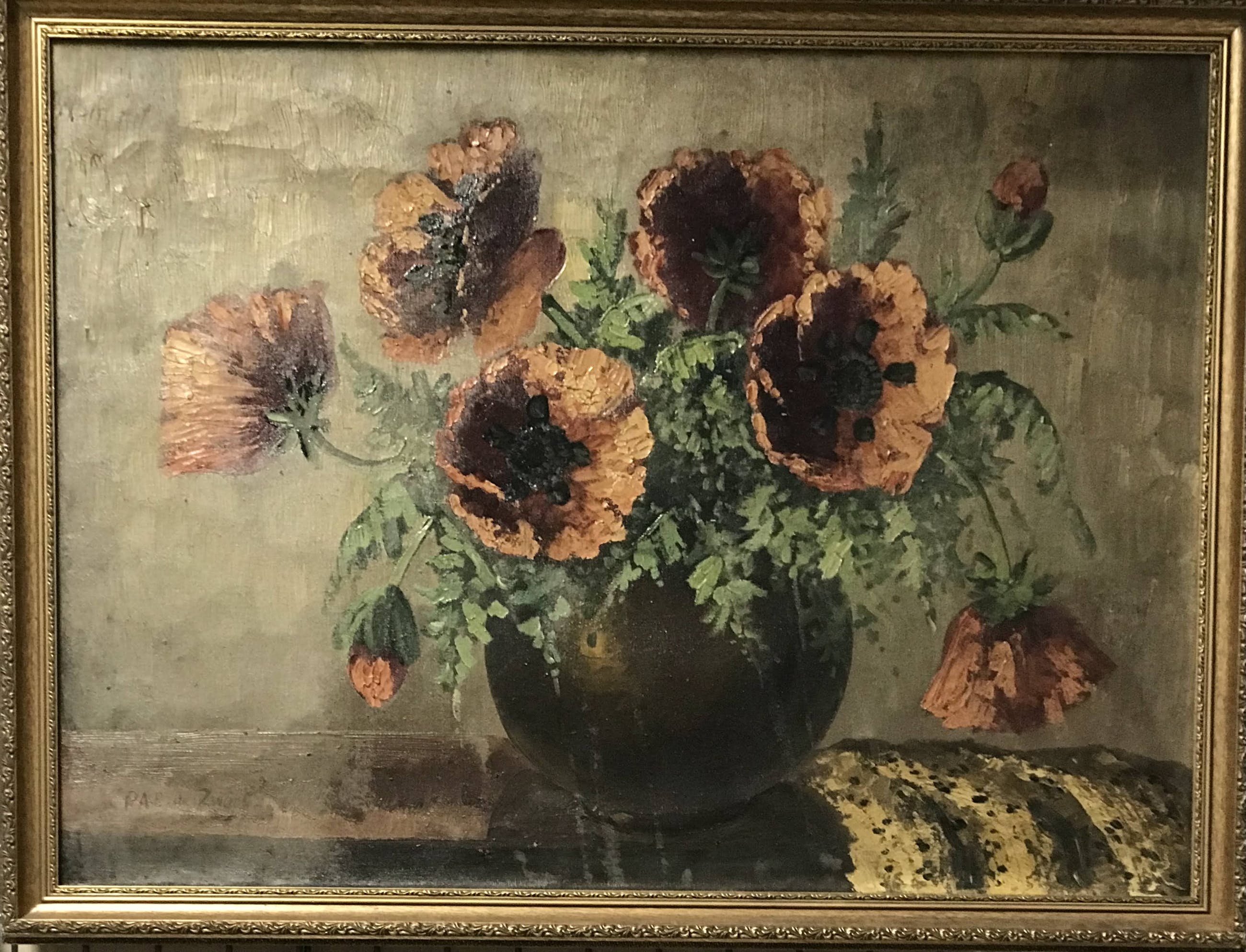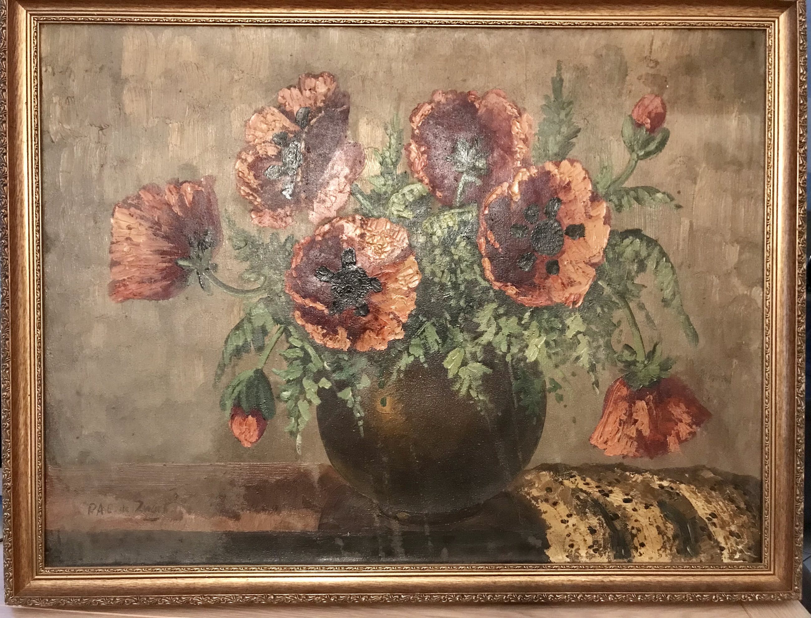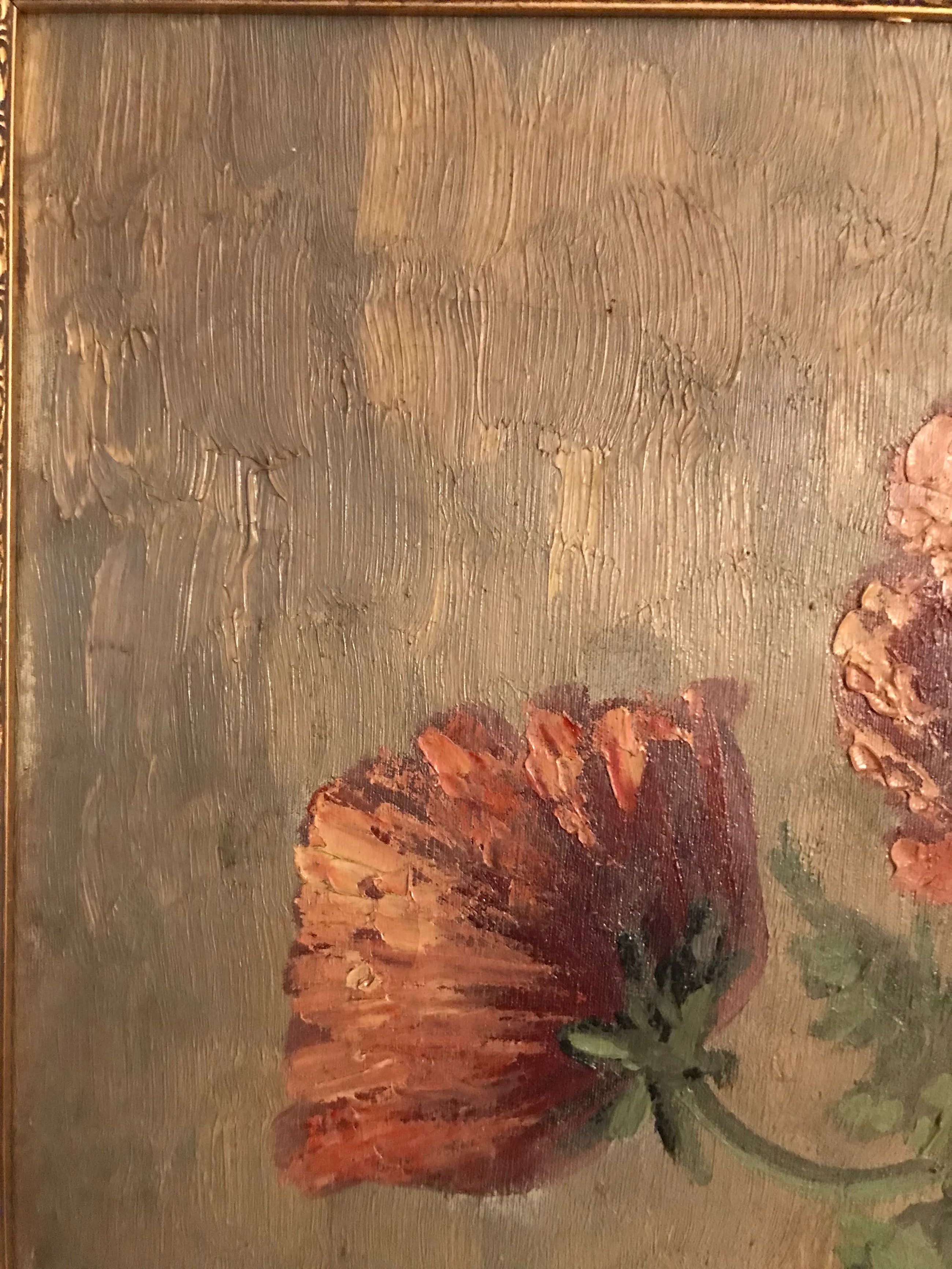 Mooi met losse toets geschilderde papavers. Geschatte ouderdom ca 70 jaar. Signatuur moeilijk leesbaar.