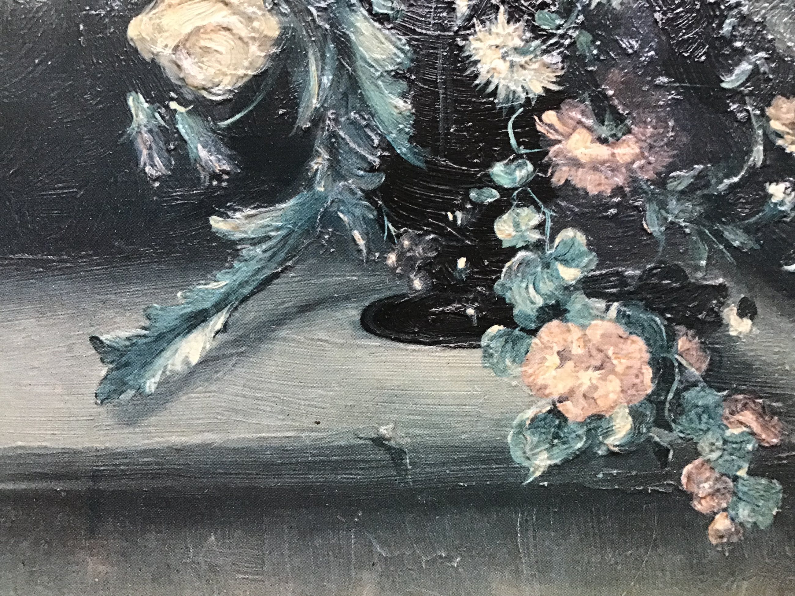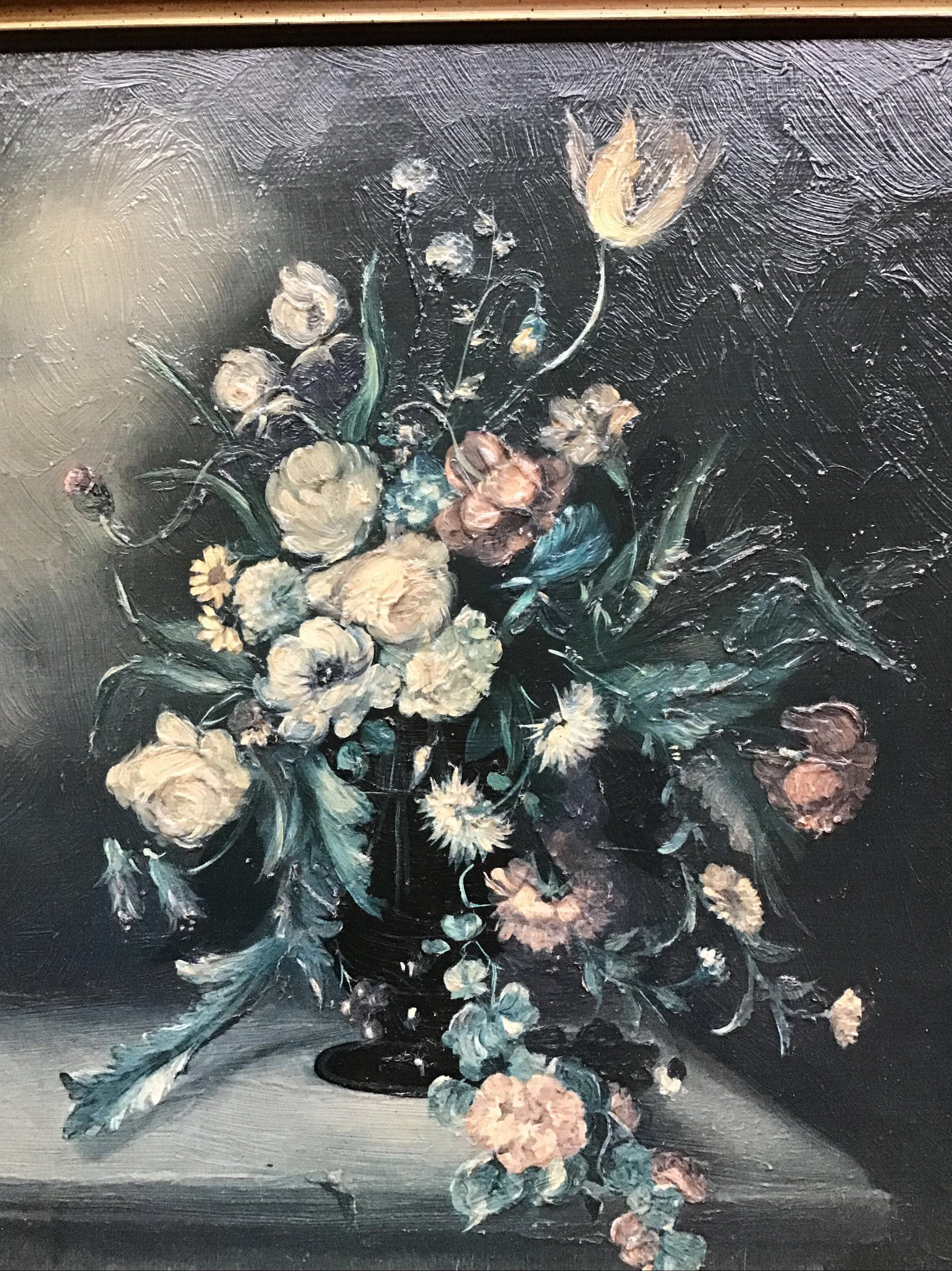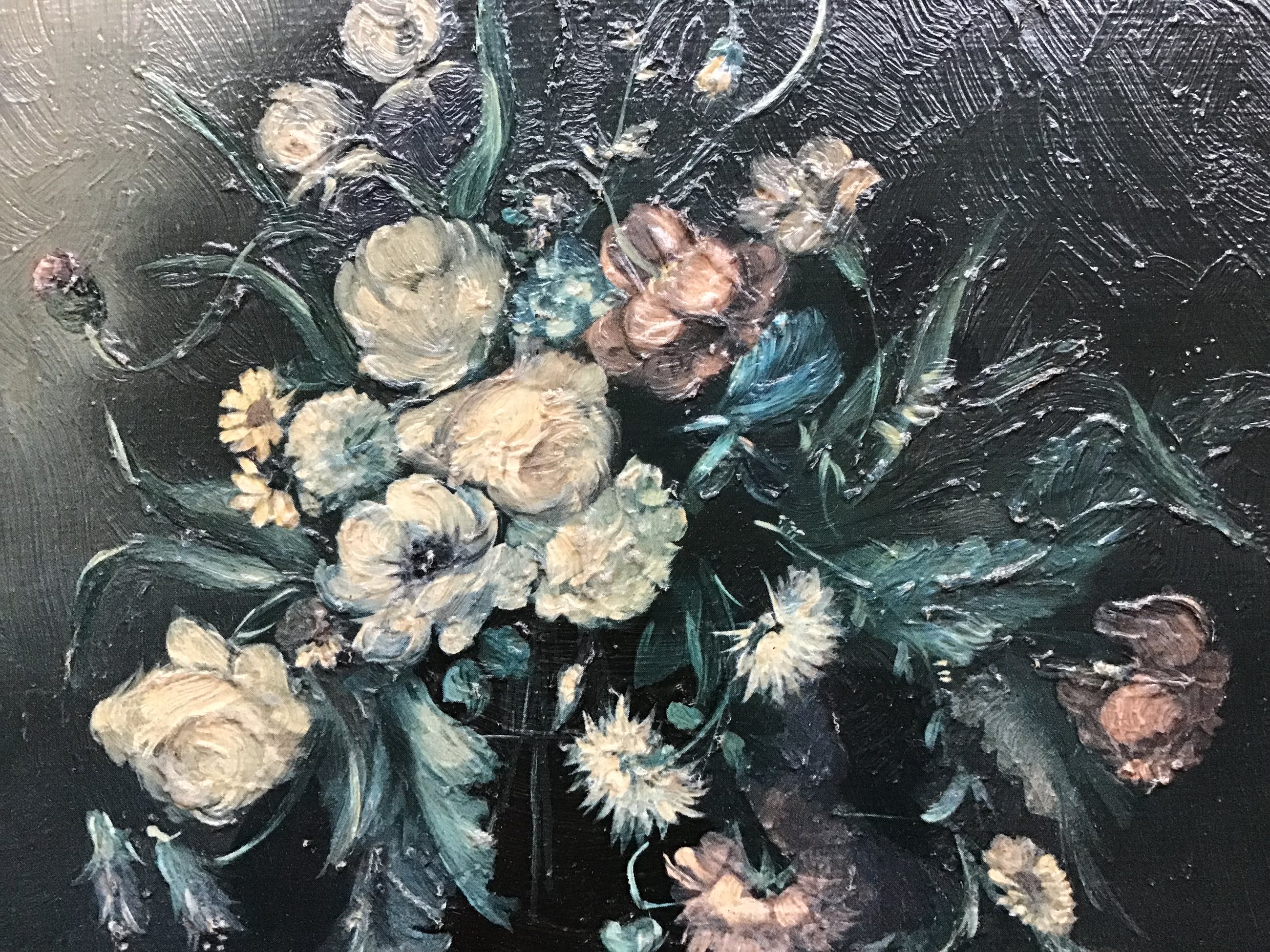 Klassiek geschilderd bloemstuk. Maker onbekend.