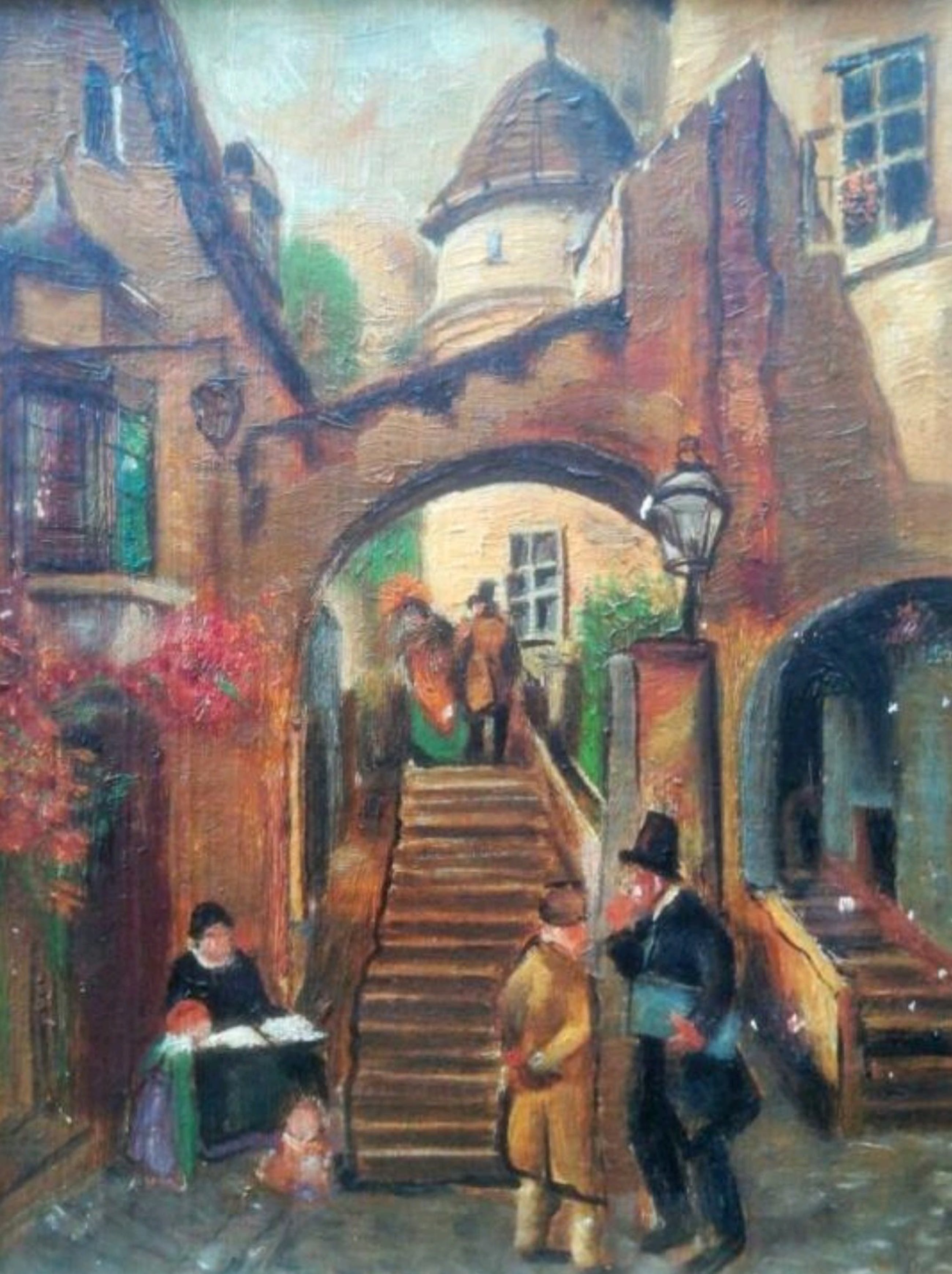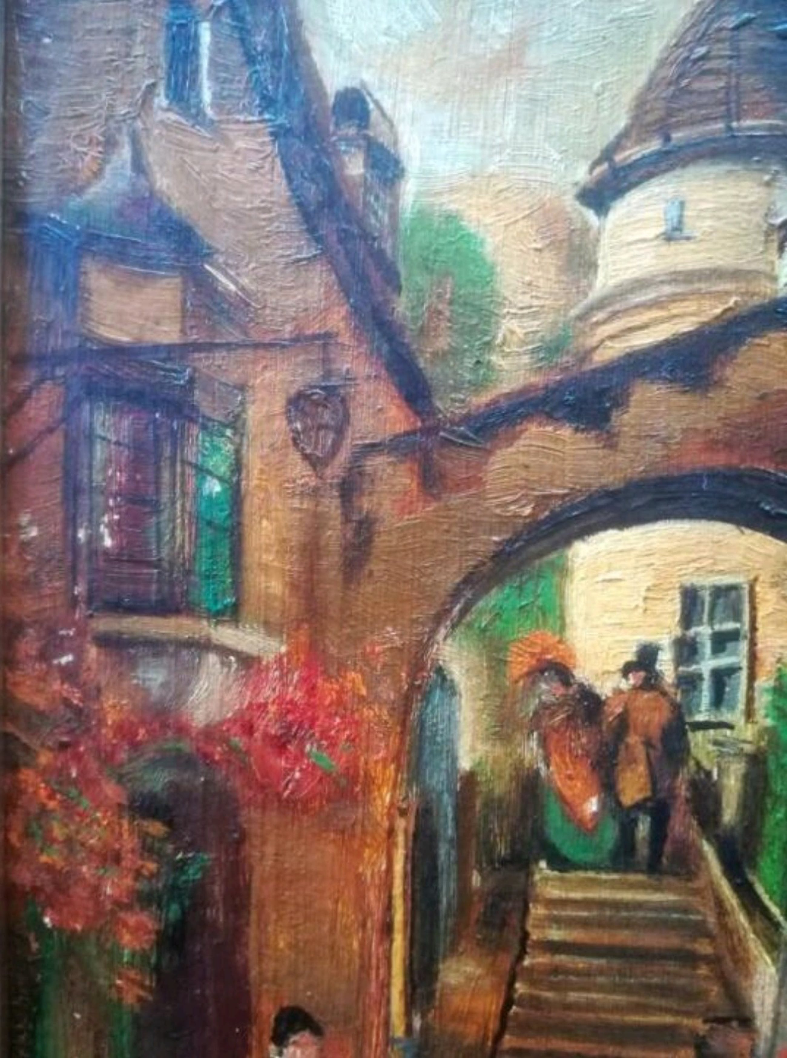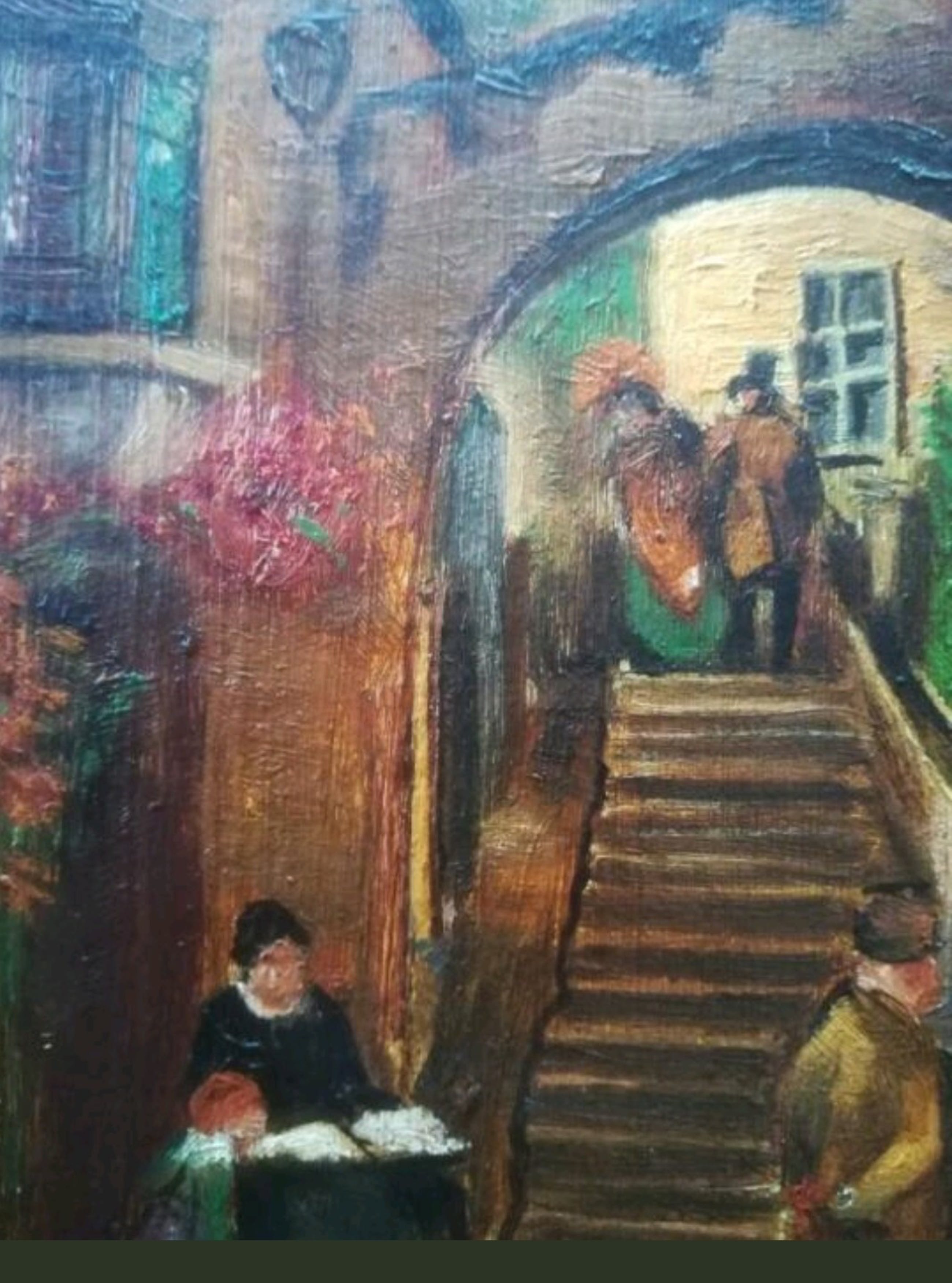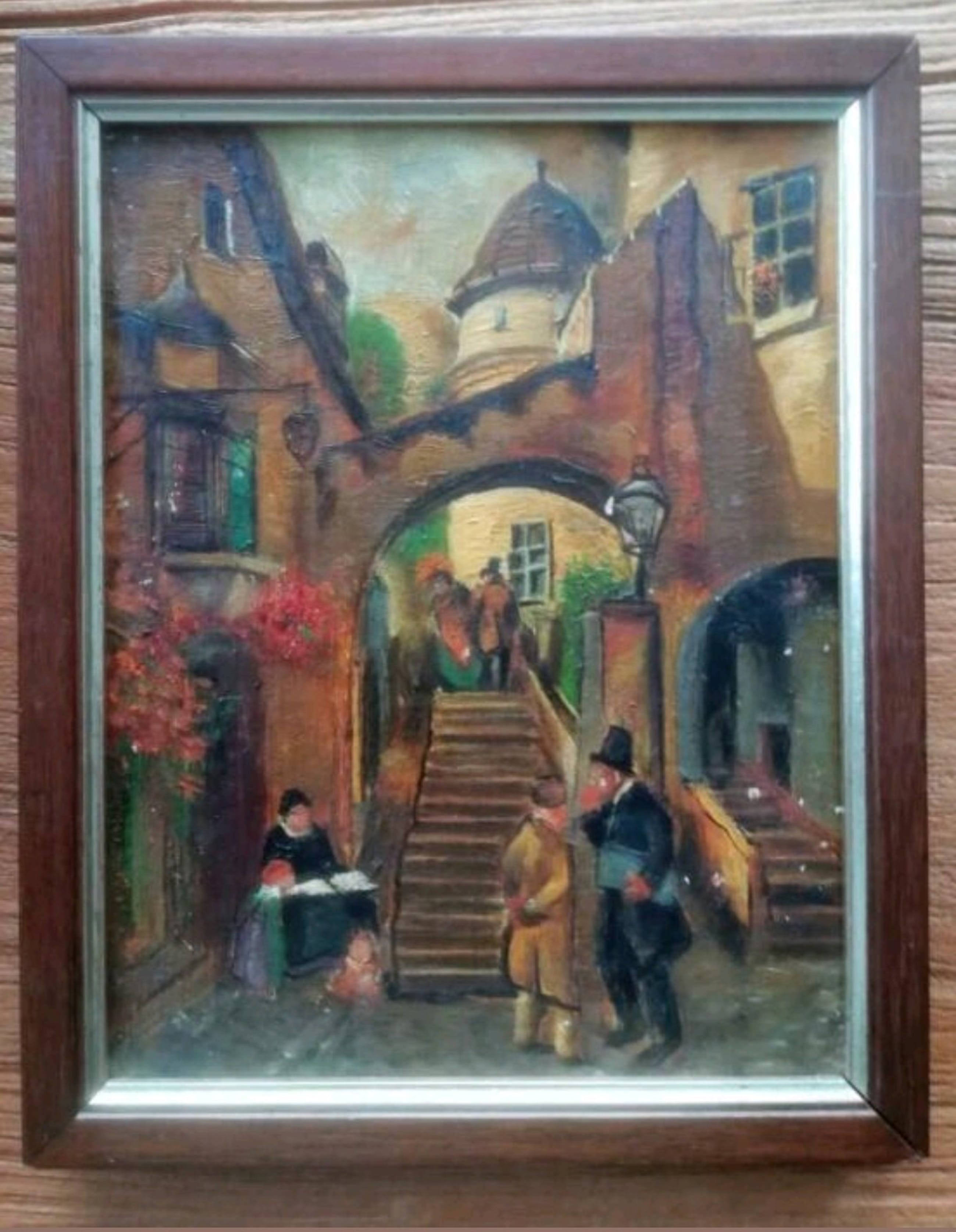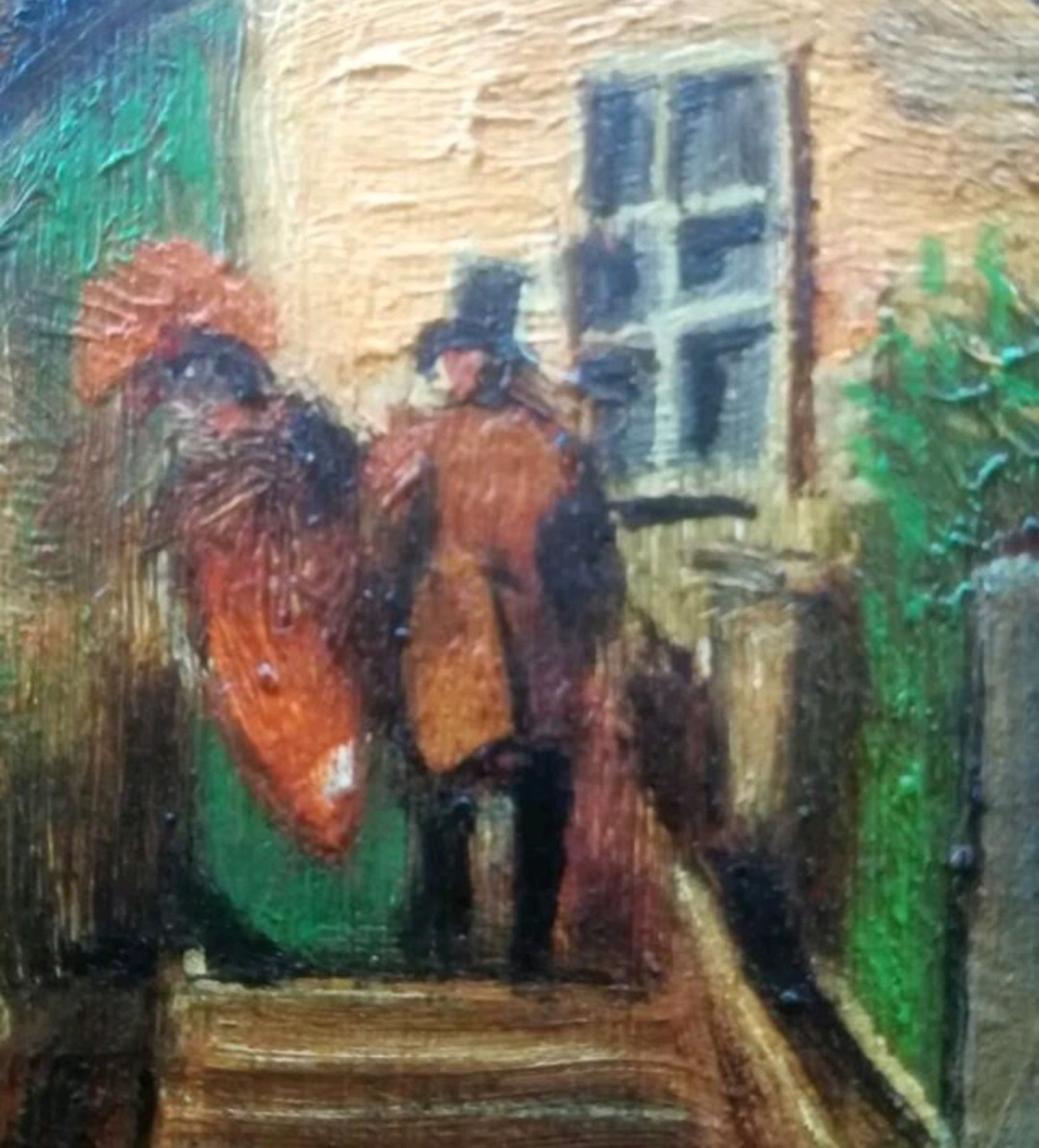Fraai sfeervol neergezet klassiek tijdsbeeld, olieverf op paneel, Typerend voor Hollandse school.