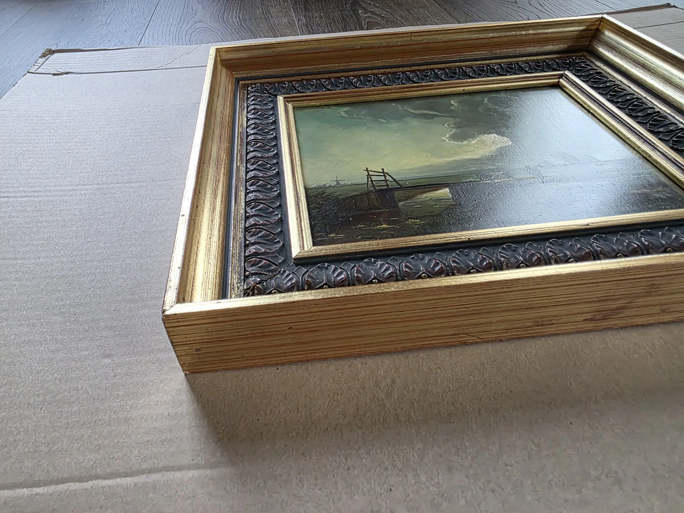 Prachtig klein schilderij in een evenzo fraaie lijst. Beide zijn in mooie staat.