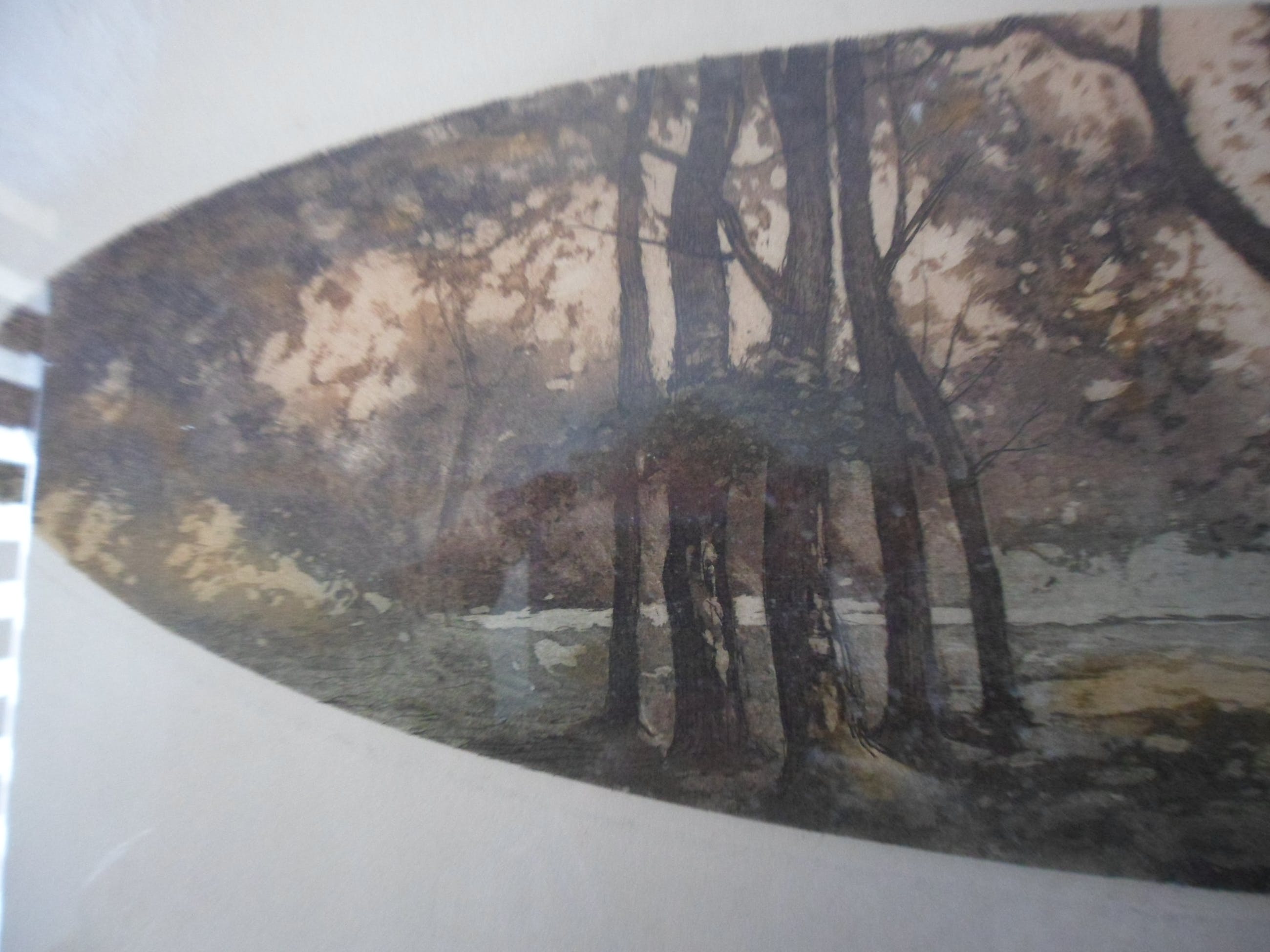Gesigneerd maar is niet te lezen wie het is. Buiten de witte vlek in pass patoet ziet de ets en het geheel er goed uit. Nieuwe pass patoet en ziet er zeer goed uit.