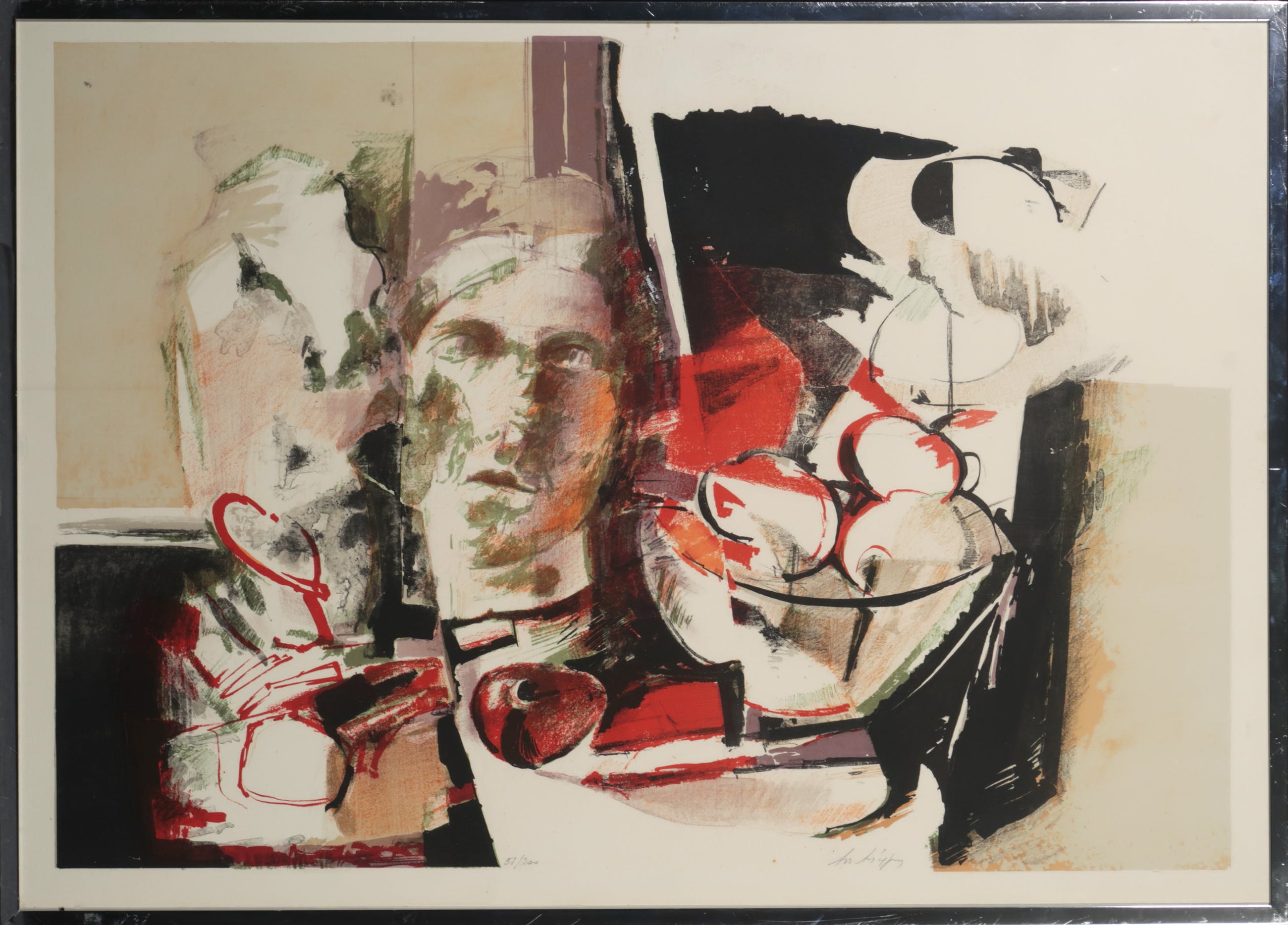 Niet of onleesbaar gesigneerd - Kleurenlitho, Hoofd met fruitschaal - Ingelijst kopen? Bied vanaf 1!